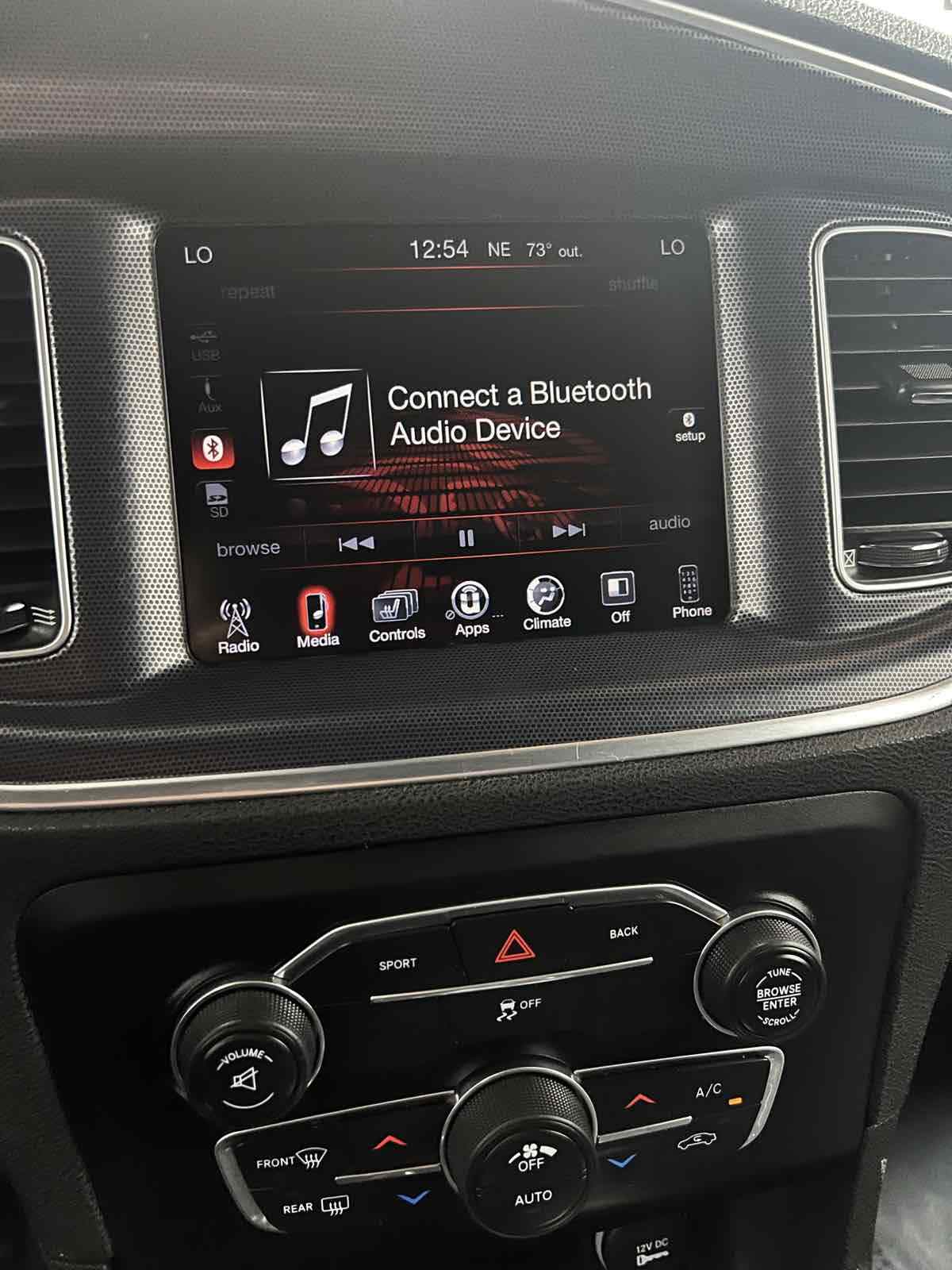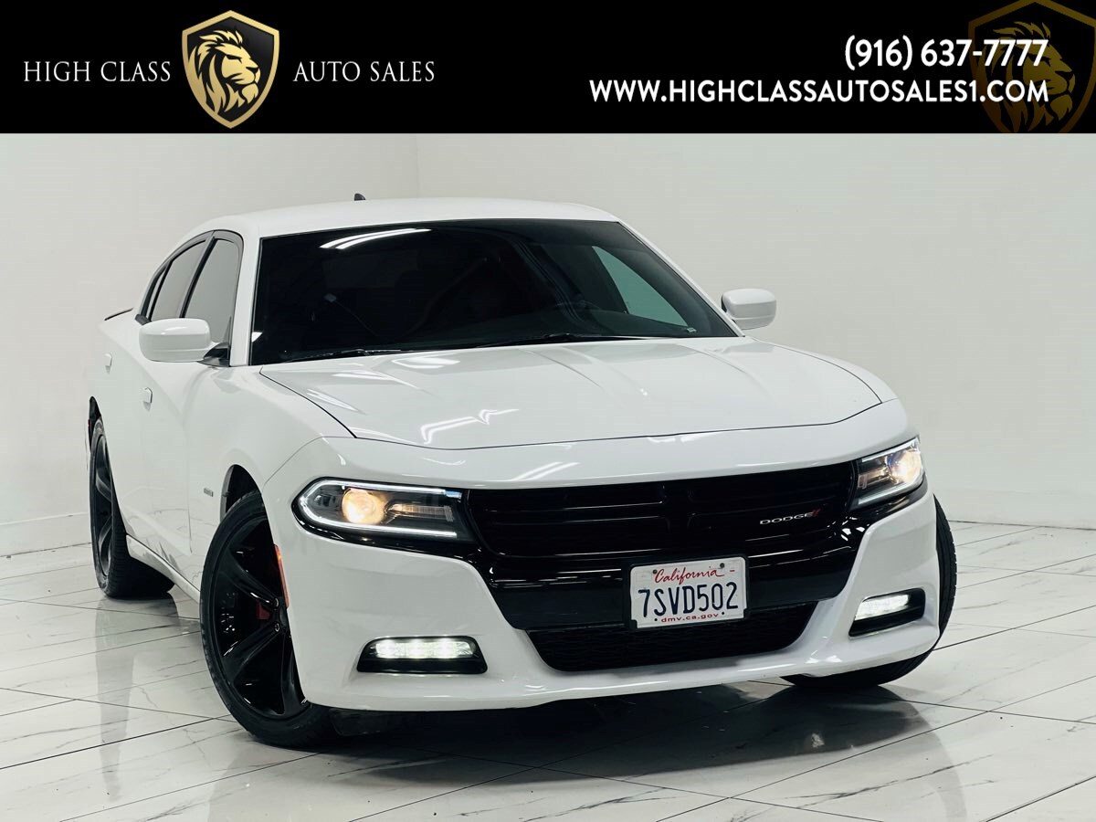 Unleash your inner self with our One Owner 2015 Dodge Charger R/T Sedan presented in Bright White Clearcoat. Powered by a 5.7 Liter HEMI V8 provides 370hp paired with a paddle-shifted TorqueFlite 8 Speed Automatic transmission that delivers world-class performance. This Rear Wheel Drive muscle car scores near 24mpg on the highway while offering brilliant driving dynamics - performance suspension - integrated dual performance exhaust and 20-inch satin carbon aluminum wheels - and powerful rumble of your R/T's V8. Inside our R/T - appreciate sport premium heated power seating - remote start - HomeLink - an instrument cluster with a reconfigurable display - integrated voice command with Bluetooth - available satellite radio - and a Uconnect touchscreen display. Thrill-seekers can get behind the wheel of this Dodge and still have safety and security - which is the number one driving principle behind every Charger R/T like Ready Alert Braking - advanced airbags - ABS - and Electronic Stability Control; and more! Reward yourself with this powerful sedan that has perfectly blended unique old-school styling with modern high performance and innovation! Save this Page and Call for Availability. We Know You Will Enjoy Your Test Drive Towards Ownership!