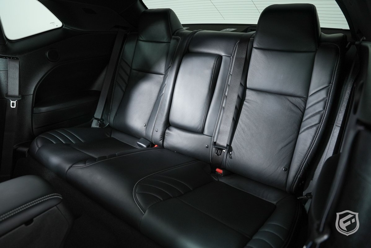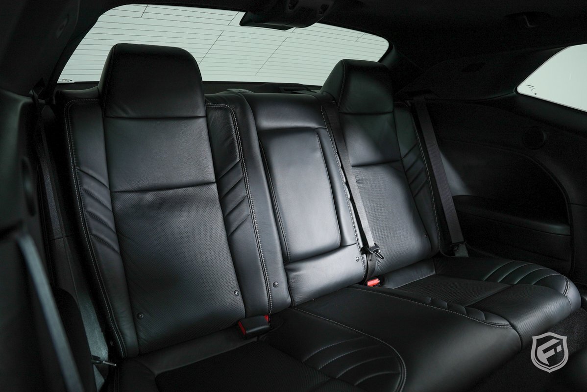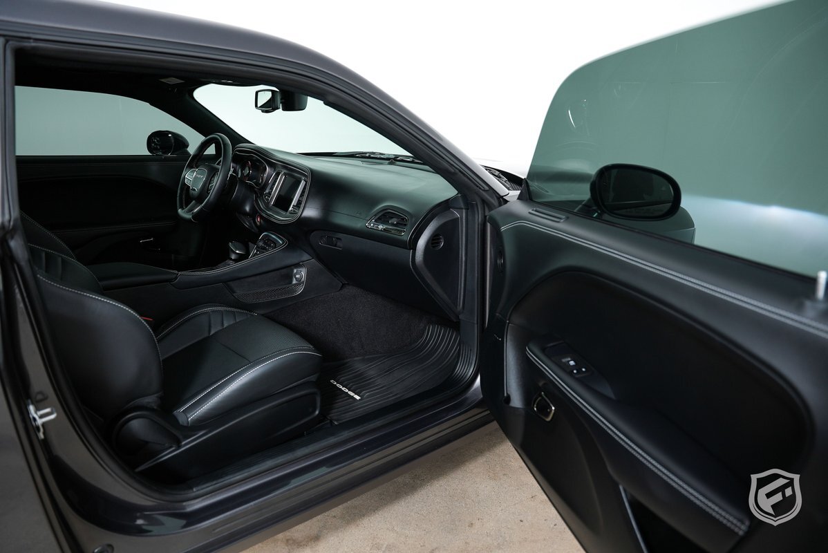 The sleek Granite exterior of the Challenger SRT Hellcat is nothing short of mesmerizing. The menacing front grille, widebody fender flares, and dual-scoop hood are a testament to its dominant presence on the road.