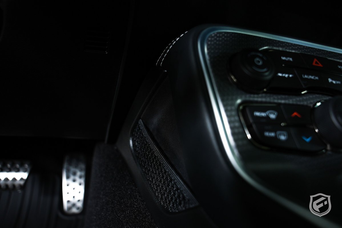 The driver-centric cockpit features race-inspired seating, premium Black Laguna Leather, and cutting-edge technology at your fingertips. The intuitive Uconnect infotainment system keeps you connected with its user-friendly touch-screen interface, crisp display, and advanced features, including Apple CarPlay and Android Auto integration.