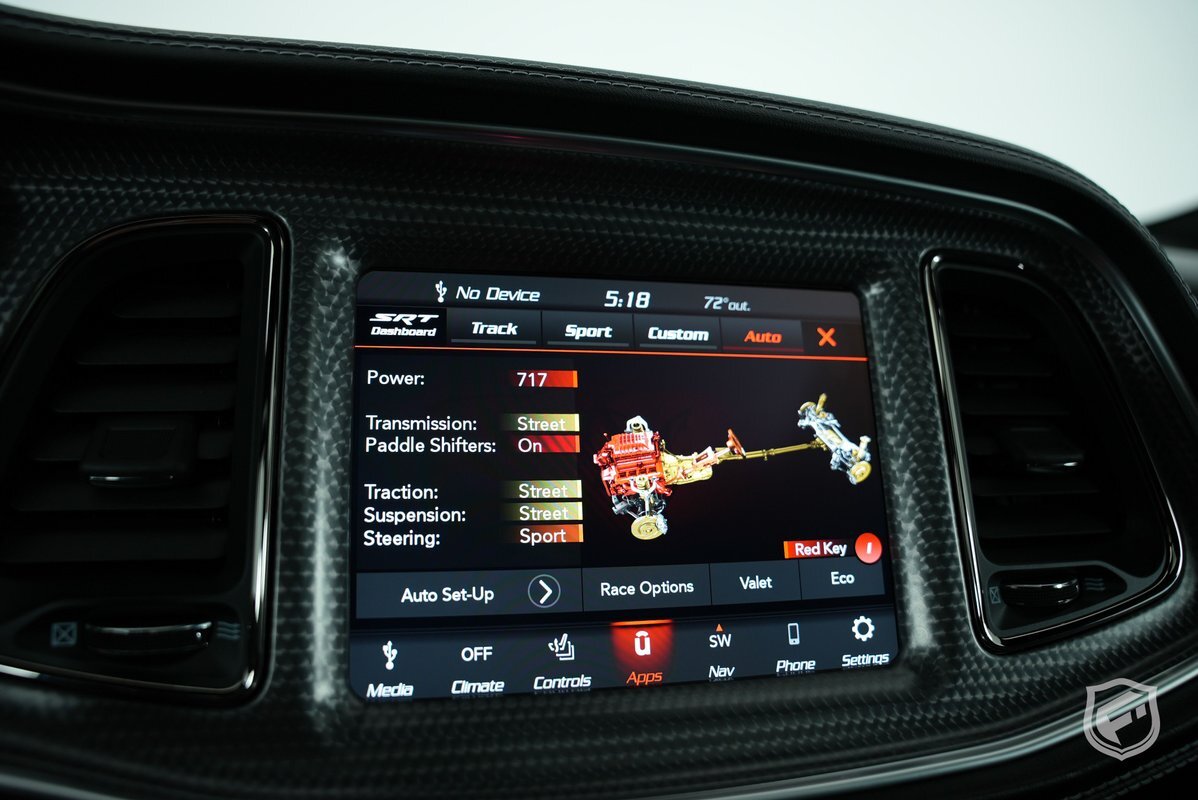 The Supercharged 6.2-liter HEMI V8 SRT engine paired to a TorqueFlite Eight-Speed Automatic Transmission and generates an impressive 717 HP. Brace yourself as the Hellcat propels you from 0 to 60 mph in 3.6 seconds, leaving competitors in the dust. Whether you're cruising down the highway or conquering the track, this performance masterpiece offers an adrenaline rush that will keep you craving for more.