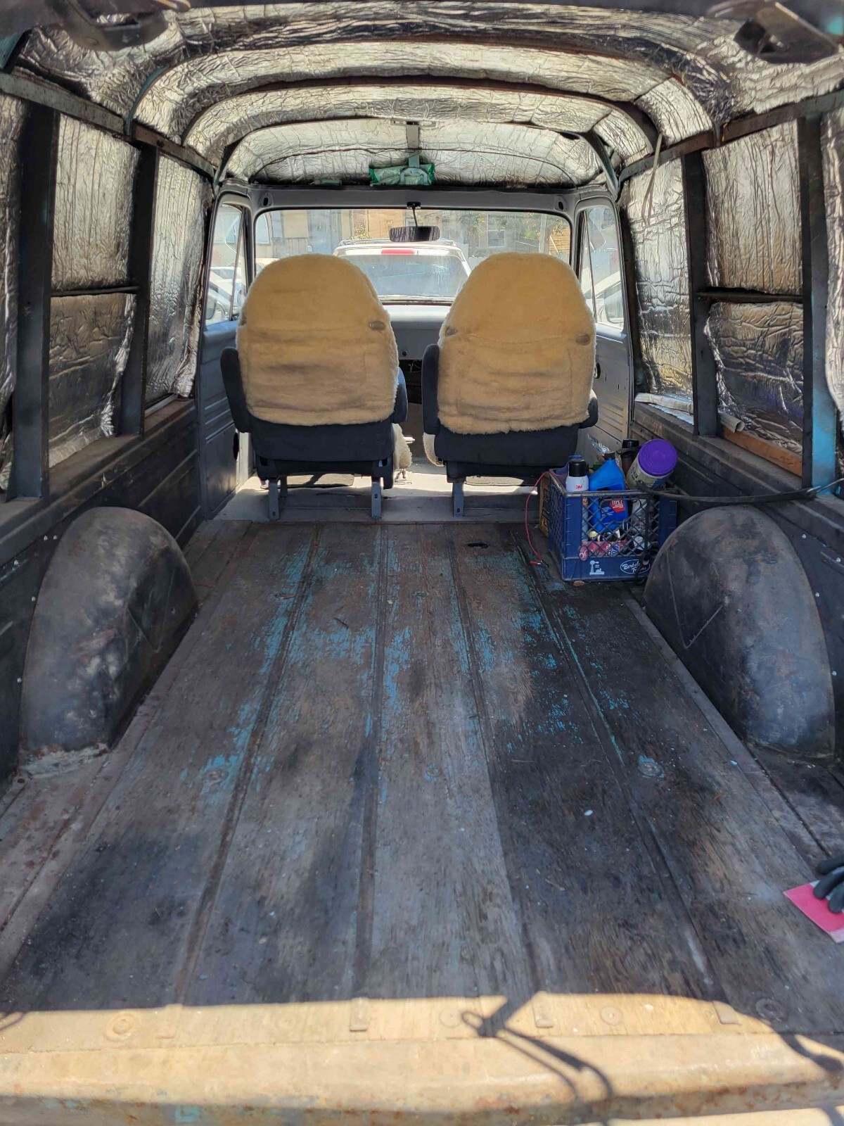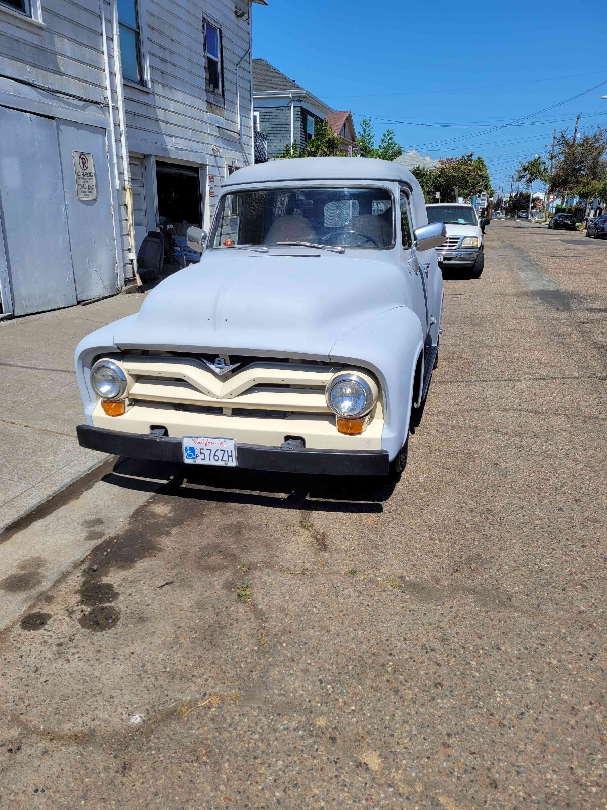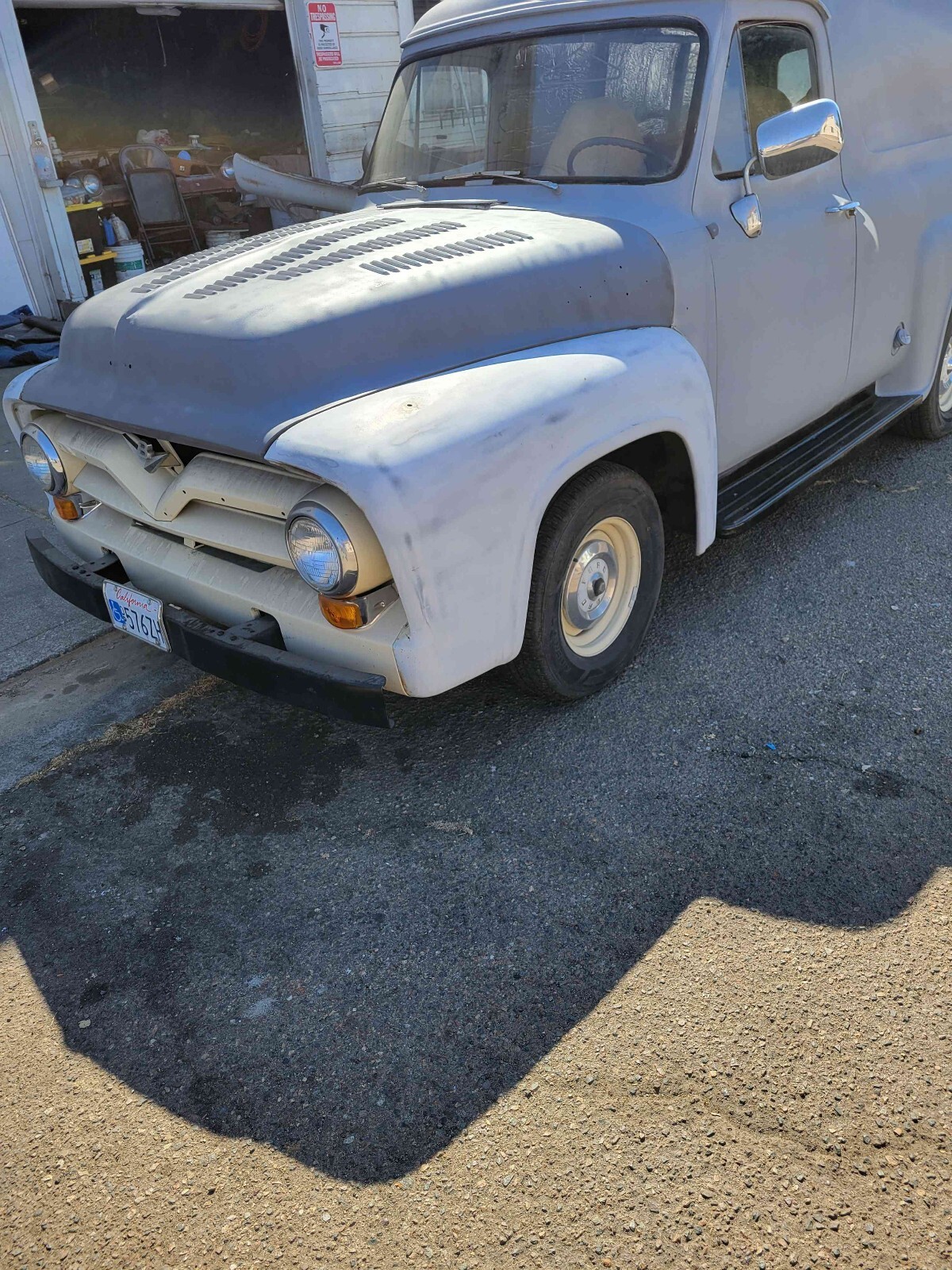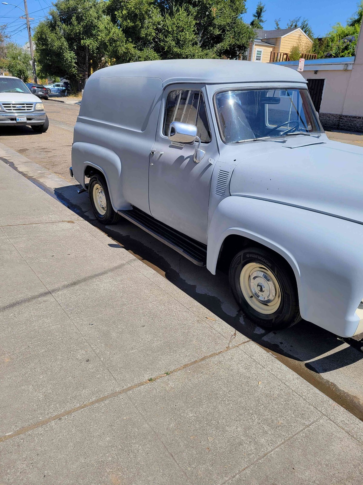 This 1955 Ford Panel Delivery is a unique vehicle that has been updated over the years. With its clean interior and drivetrain, it's perfect for anyone looking for a weekend project. The owner has had it for 5+ years and has put some miles, but the vehicle runs great. The vehicle comes with a title and has been well-maintained. It's a great addition to any collection and would make a great statement piece. The make response short and the title is "This 1955 Ford Panel Delivery is a modified vehicle with updates to the interior and drivetrain. The owner has had it for 5+ years. The vehicle runs great and is mainly used for weekend drives."Seller's Notes