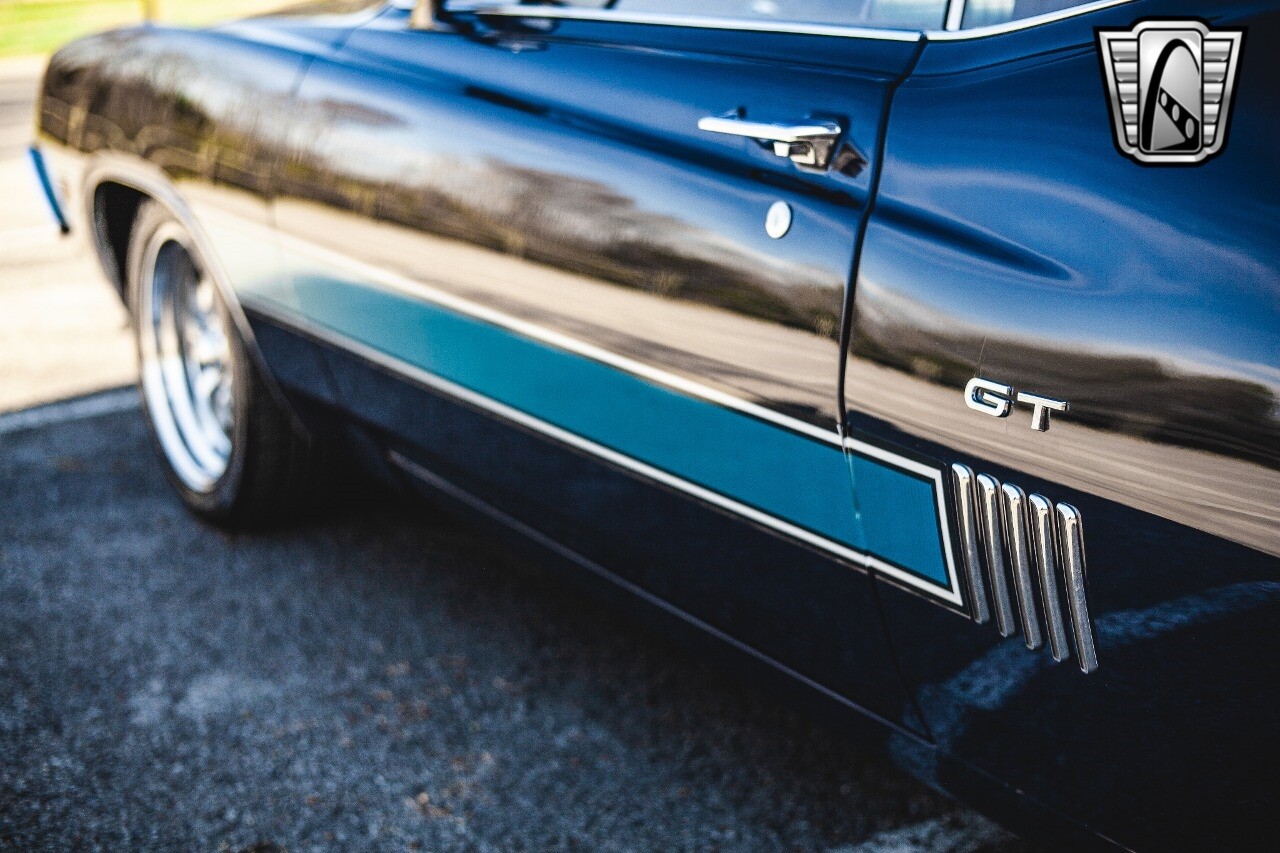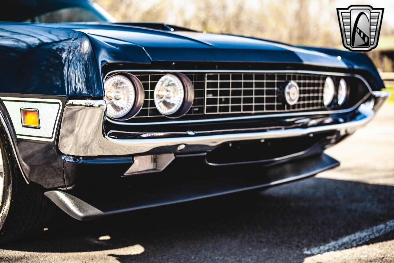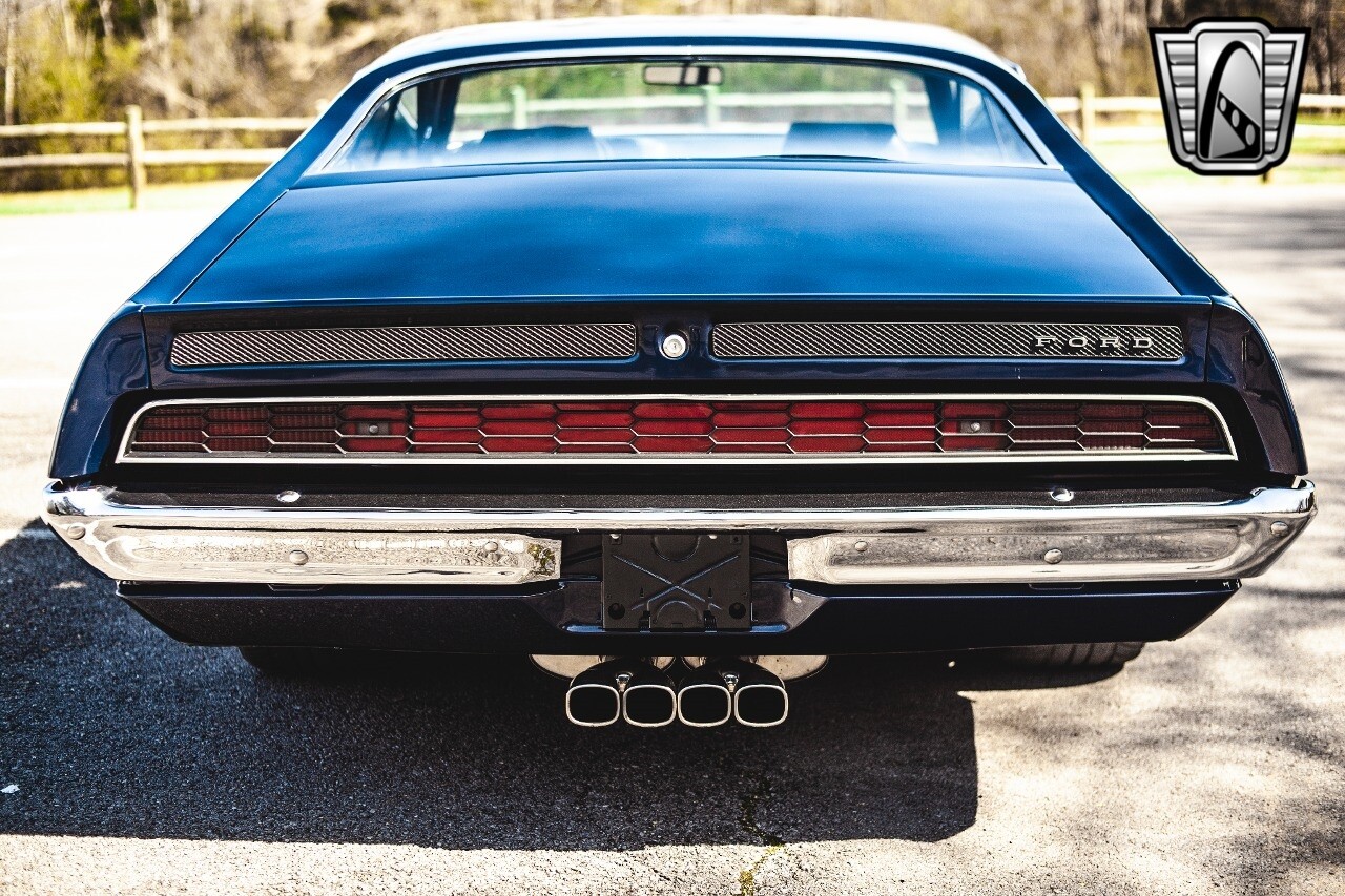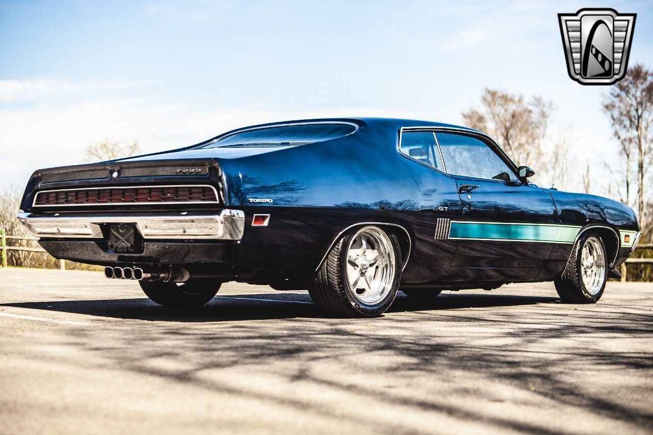 Gateway classic cars of Nashville is excited to digitally present to you this 1970 Ford Torino GT. Have you ever thought it would be great to find a car that is still owned by the original owner and the owner took this cool car and made it even cooler through the years with performance upgrades? Well here you go! This 1970 Ford Torino GT is in my opinion awesome! It looks sharp in it's deep blue paint and decals a lighter blue was used in the interior which looks stock but the notch for the shifter says otherwise. Under the hood is Blue print 347 cubic inch stroker that should be pumping out about 415 Horses. Long tube headers, Holley double pumper four barrel and H.E.I. as well as serpentine belt and aluminum radiator. This is one tight car! The trans of choice here is the Hughes performance AOD which is as new as the muscle in front of it and is controlled by a B&M shifter. To handle this power a Currie ford 9 inch rear axle holds up the rear and plants the muscle to the street and houses a set of 4.3:1 gears. Tubular control arms up front to handle the cornering and 4 wheel disc brakes because this much power requires them. This car is ready to hit the streets just to cruise or to let the boys know that grown men are here to play. Options for this 1970 Torino GT include: Air conditioning, ( needs recharge) CD player Power Rack and pinion steering and brakes, Tilt steering column, Seat belts, Posi traction and Centerline rallys . Cool Fords like this don't come along everyday!.