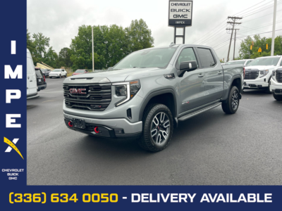 THIS VEHICLE INCLUDES THE FOLLOWING FEATURES AND OPTIONS: AT4 Preferred Package (Adaptive Cruise Control, Power Sliding Rear Window w/Rear Defogger, and Universal Home Remote), AT4 Premium Package (Off-Road High Clearance Step (LPO)), Trailering Package (Hitch Guidance), Sierra 1500 AT4 Crew Cab 4WD, 10-Way Power Driver Seat Adjuster w/Lumbar, 10-Way Power Passenger Seat Adjuster w/Lumbar, 120-Volt Bed Mounted Power Outlet, 120-Volt Instrument Panel Power Outlet, 18 x 8.5 Machined Aluminum Wheels, 2 Charge/Data USB Ports Inside Center Console, 2 Type-C Charge-Only Rear USB Ports, 2 USB Ports, 220 Amp Alternator, 3.23 Rear Axle Ratio, 4-Wheel Disc Brakes, 7 Speakers, ABS brakes, Air Conditioning, Alloy wheels, AM/FM radio, Apple CarPlay/Android Auto, Auto High-beam Headlights, Auto-dimming door mirrors, Auto-dimming Rear-View mirror, Auto-Locking Rear Differential, Automatic Emergency Braking, Automatic temperature control, Black Chrome Header & Grille Insert Bars, Block heater, Brake assist, Buckle to Drive, Bumpers: body-color, Color-Keyed Carpeting Floor Covering, Compass, Cruise Control, Deep-Tinted Glass, Delay-off headlights, Driver door bin, Driver Memory, Driver vanity mirror, Dual front impact airbags, Dual front side impact airbags, Electric Rear-Window Defogger, Electrical Steering Column Lock, Electronic Stability Control, Emergency communication system: OnStar and GMC connected services capable, Engine Block Heater, Floor-Mounted Center Console, Following Distance Indicator, Forward Collision Alert, Front anti-roll bar, Front Bucket Seats, Front Center Armrest, Front dual zone A/C, Front fog lights, Front Pedestrian Braking, Front Prem Floor Liners w/Removable Carpet Insert, Front Rainsensing Wipers, Front reading lights, Front wheel independent suspension, Fully automatic headlights, GMC Connected Access Capable, HD Surround Vision, Heated 2nd Row Outboard Seats, Heated door mirrors, Heated Driver & Front Outboard Passenger Seating, Heated front seats, Heated rear seats, Heated steering wheel, Heavy-Duty Air Filter, Hill Descent Control, Hitch Guidance w/Hitch View, Illuminated entry, In-Vehicle Trailering App, Integrated Trailer Brake Controller, IntelliBeam Automatic High Beam On/Off, Keyless Open & Start, Lane Keep Assist w/Lane Departure Warning, LED Cargo Area Lighting, Low tire pressure warning, Memory seat, Navigation System, Occupant sensing airbag, Off-Road Suspension, OnStar & GMC Connected Services Capable, Outside temperature display, Overhead airbag, Overhead console, Panic alarm, Passenger door bin, Passenger vanity mirror, Perforated Front Leather Seat Trim, Perimeter Lighting, Power Door Locks, Power door mirrors, Power driver seat, Power Front Passenger Windows w/Express Up/Down, Power Front Windows w/Driver Express Up/Down, Power passenger seat, Power Rake & Telescoping Steering Column, Power Rear Windows w/Express Down, Power steering, Power windows, Premium audio system: GMC Infotainment System, Premium Bose 7-Speaker Sound System, Push Button Start, Radio data system, Radio: Premium GMC Infotainment Audio System, Rain sensing wipers, Rear Cross Traffic Braking, Rear Pedestrian Detection, Rear Prem Floor Liners w/Removable Carpet Insert, Rear reading lights, Rear seat center armrest, Rear step bumper, Rear Wheelhouse Liners, Rear window defroster, Red Recovery Hooks, Remote keyless entry, Remote Vehicle Starter System, Safety Alert Seat, Security system, SiriusXM w/360L, Speed-sensing steering, Split folding rear seat, Spray-On Pickup Bed Liner w/AT4 Logo, Steering Wheel Audio Controls, Steering wheel mounted audio controls, Tachometer, Telescoping steering wheel, Theft Deter