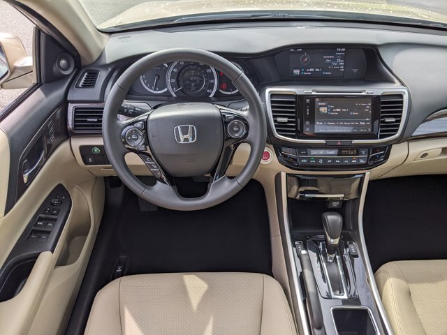 2017 Honda Accord EX-L.. 1 Owner.. Local Trade.. 3.5L V6.. Champagne Frost Pearl with Premium Ivory Heated Leather.. Power Sunroof.. 360 Watt HD Premium Audio System.. Power Equipment Group.. Rear Parking Camera.. 17" Machined Alloy Wheels.. Hard to Find this Nice !! Ford Blue CPO Certified !!!