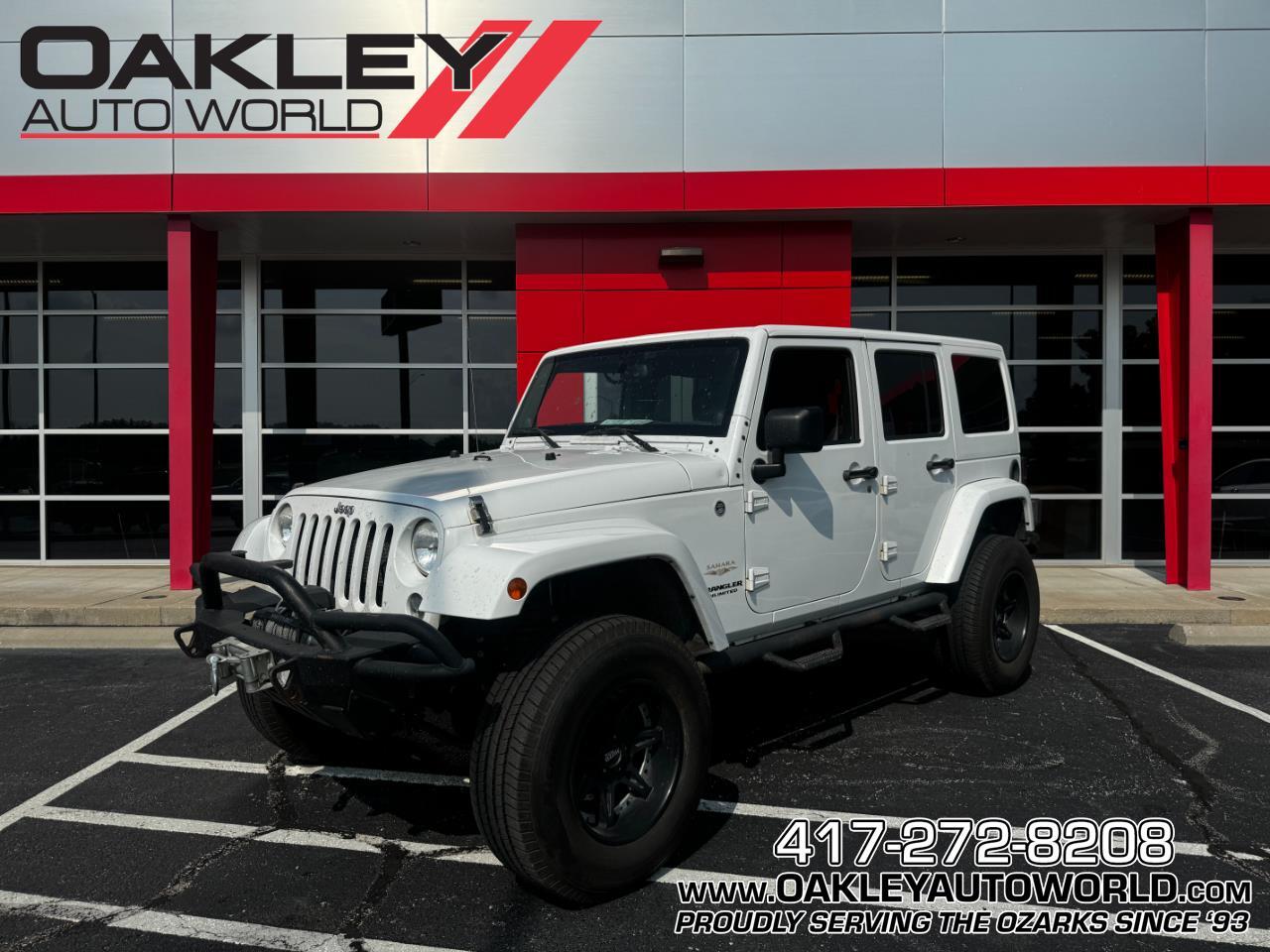 CARFAX CERTIFIED CLEAN TITLE!!COVERED BY OAKLEY ADVANTAGE!!This 2014 Jeep Wrangler Sahara with 97,XXX Miles comes packaged w 3.6L V6, Automatic Transmission, driver/pass heated seats, traction control, DAC, single zone climate control, power windows/locks, aftermarket JVC Double Din Radio, steering wheel controls, cruise control, automatic headlights, 3 piece hard top, power adjustable mirrors, black cloth interior, NFAB, side steps, motometal 18 wheel, SmittyBilt X20 10,000LB steel cable Winch, Smitty Bilt Spare Tire Carrier, SRC steel rear bumper Purchase Prices do not include Tax title license and $289.00 Admin Fee. (Unless itemized above) are extra.The features and options listed may not apply to this specific vehicle.*While we make every effort to ensure the data listed here is correct there may be instances where some of the options or vehicle features may be listed incorrectly as we get data from multiple data sources as we are not responsible for typographical technical or misprint errors. Inventory is subject to prior sale. Contact us via phone or email for more details.PLEASE MAKE SURE to confirm the details of this vehicle with the dealer to ensure its accuracy. Dealer cannot be held liable for data that is listed incorrectly.Visit us at to see more information & pictures on the vehicle or call417-272-8208 to set up an appointment to test drive!!! Remember to Like us on facebook and give us a follow on instagram.Not all vehicles with less that 120000 miles qualify for the Oakley Advantage see dealer for details.