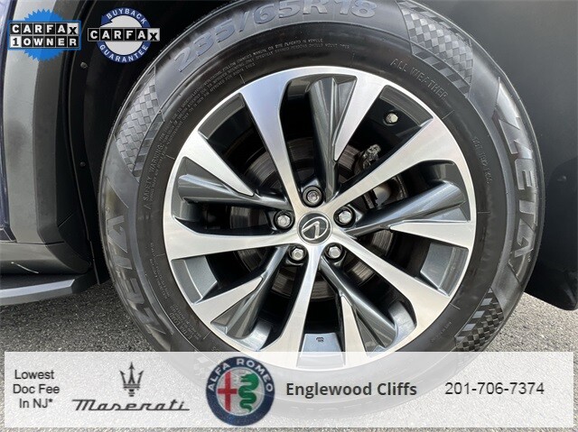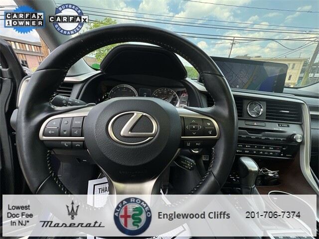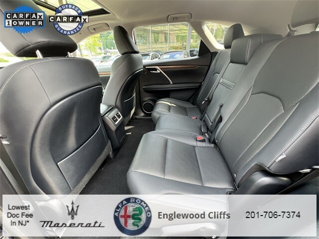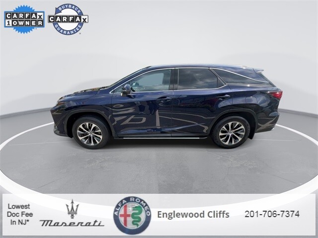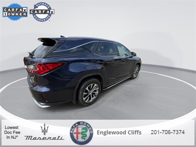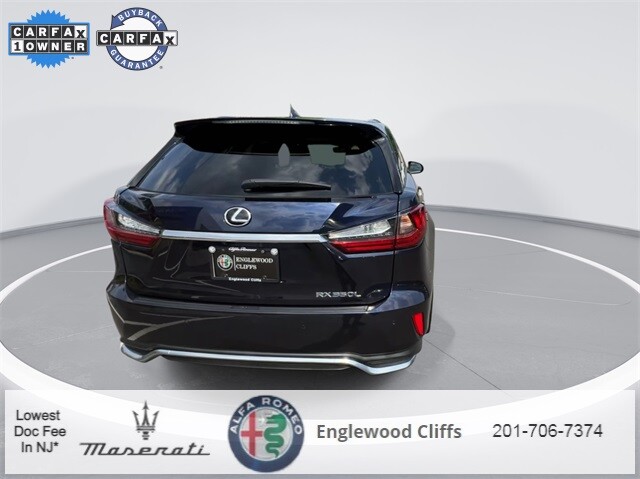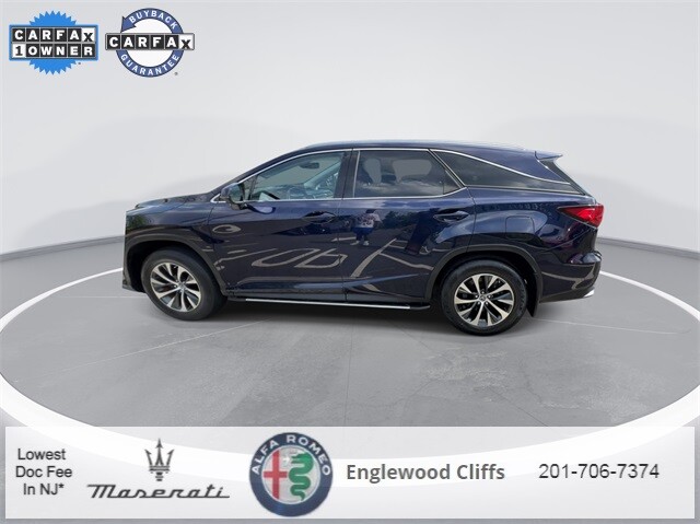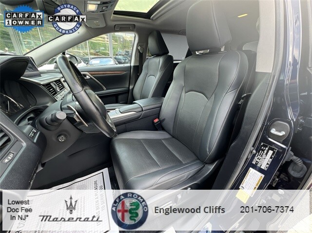 This RX 350L is nicely equipped with AWD, Black Artificial Leather, AM/FM radio: SiriusXM, Apple CarPlay/Android Auto, Auto High-beam Headlights, Auto-dimming door mirrors, Auto-dimming Rear-View mirror, Automatic temperature control, Brake assist, CD player, Compass, Electronic Stability Control, Exterior Parking Camera Rear, Four wheel independent suspension, Front dual zone A/C, Fully automatic headlights, Garage door transmitter: HomeLink, Heated door mirrors, Illuminated entry, NuLuxe Seat Trim, Outside temperature display, Overhead console, Panic alarm, Power door mirrors, Power driver seat, Power Liftgate, Power passenger seat, Power steering, Power windows, Radio data system, Radio: AM/FM/CD Lexus Display Audio, Rain sensing wipers, Rear air conditioning, Rear window defroster, Rear window wiper, Remote keyless entry, Security system, Speed control, Speed-sensing steering, Steering wheel mounted audio controls, Traction control, Turn signal indicator mirrors, 3.33 Axle Ratio, 3rd row seats: split-bench, 4-Wheel Disc Brakes, 9 Speakers, ABS brakes, Air Conditioning, Alloy wheels, Anti-whiplash front head restraints, Bumpers: body-color, Delay-off headlights, Driver door bin, Driver vanity mirror, Dual front impact airbags, Dual front side impact airbags, Emergency communication system, Front anti-roll bar, Front Bucket Seats, Front Center Armrest, Front reading lights, Genuine wood console insert, Genuine wood door panel insert, Knee airbag, Leather Shift Knob, Leather steering wheel, Low tire pressure warning, Occupant sensing airbag, Overhead airbag, Passenger door bin, Passenger vanity mirror, Rear anti-roll bar, Rear reading lights, Rear seat center armrest, Rear side impact airbag, Reclining 3rd row seat, Roof rack: rails only, Split folding rear seat, Spoiler, Tachometer, Telescoping steering wheel, Tilt steering wheel, Trip computer, Variably intermittent wipers, and Wheels: 18 Dark Gray.