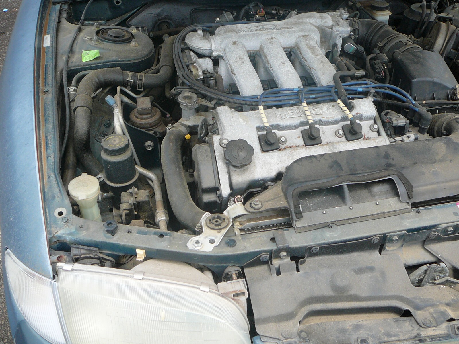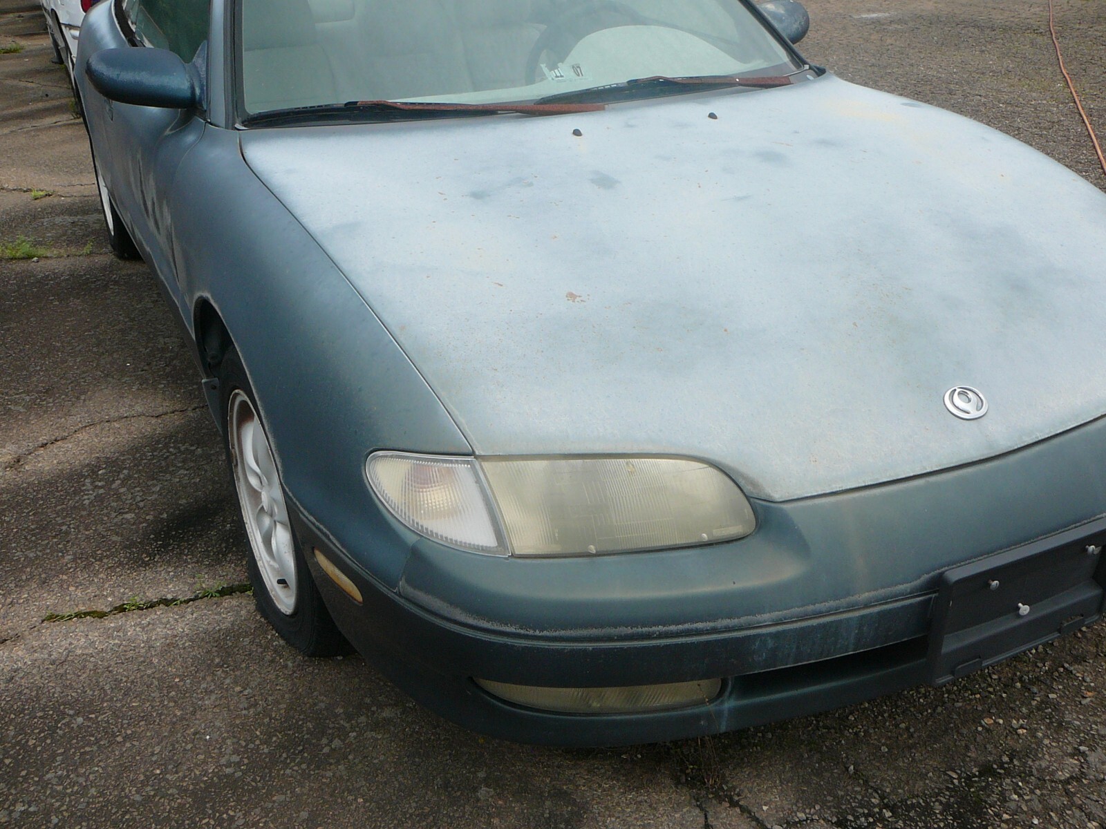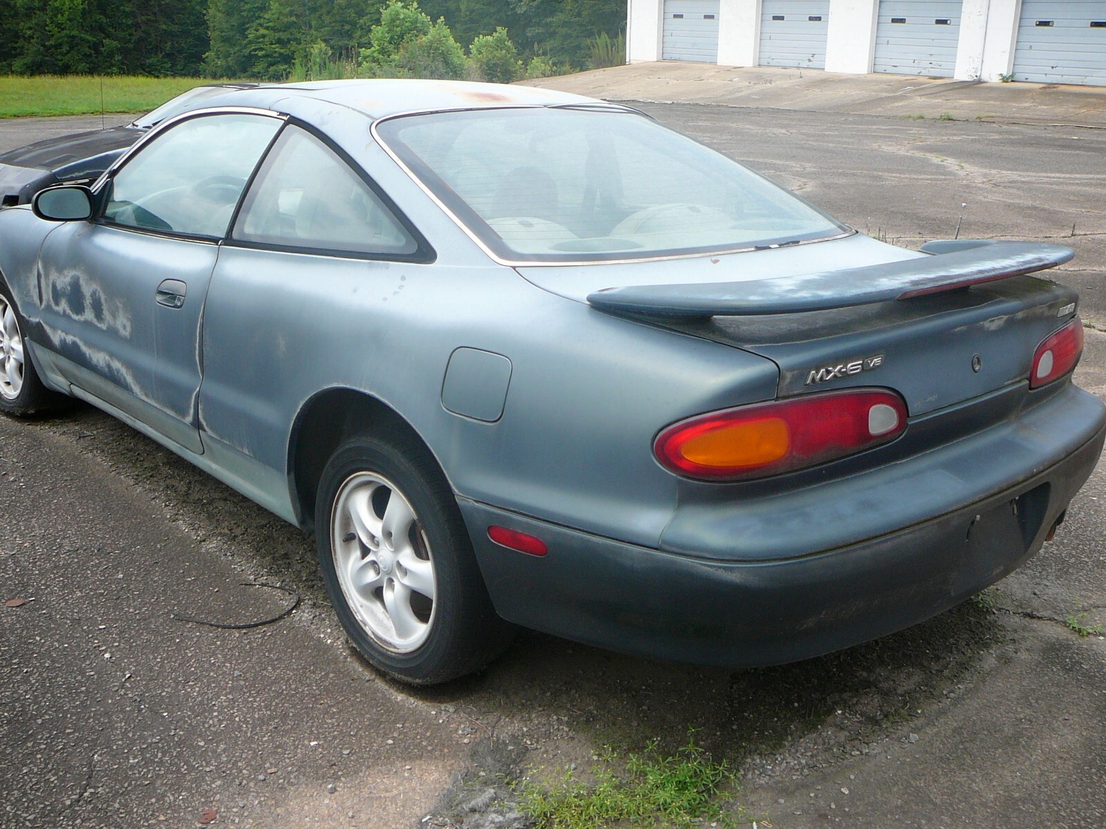 FOR YOUR CONSIDERATION WE OFFER THIS 1995 MAZDA MX-6 V6 LS COUPE. THIS MAZDA IS EQUIPPED WITH A 2.5L V6 ENGINE AND 5-SPEED MANUAL TRANSMISSION. IT IS HARD TO TELL THE COLOR IN THE PICTURES-BUT IT IS GREEN AND THE INTERIOR IS BEIGE LEATHER. THE PAINT IS ORIGINAL AND THERE IS ONLY ONE DENT-THAT IS SHOWN THE PICTURE OF THE LEFT FRONT FENDER. THERE IS ABSOLUTELY NO RUSTY PANELS AND ONLY 1 DENT AS MENTIONED SO THE PAINT WORK WOULD BE EASY. THE INTERIOR IS ORIGINAL AS SHOWN IN THE PICTURES. THE DRIVER'S SEAT WOULD HAVE TO BE FIXED-THAT SEAT IS ALSO SHOWN IN ONE OF THE PICTURES. THE ENGINE RUNS WITH AUXILIARY FUEL SOURCE BUT PROBABLY NEEDS NEW FUEL PUMP AND IT MAY NEED A LOT OF ATTENTION TO BE DRIVEABLE-IT HAS BEEN SITTING FOR 17 YEARS. BE SURE TO LOOK AT THE PICTURES AND FEEL FREE TO CONTACT US WITH ANY QUESTIONS YOU MAY HAVE. WE WILL ASSIST IN LOADING IF NEEDED. TITLE AND KEY IN HAND. PAYMENT IN CASH WHEN PICKED UP.
