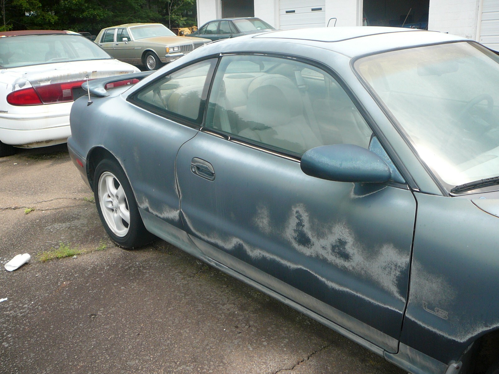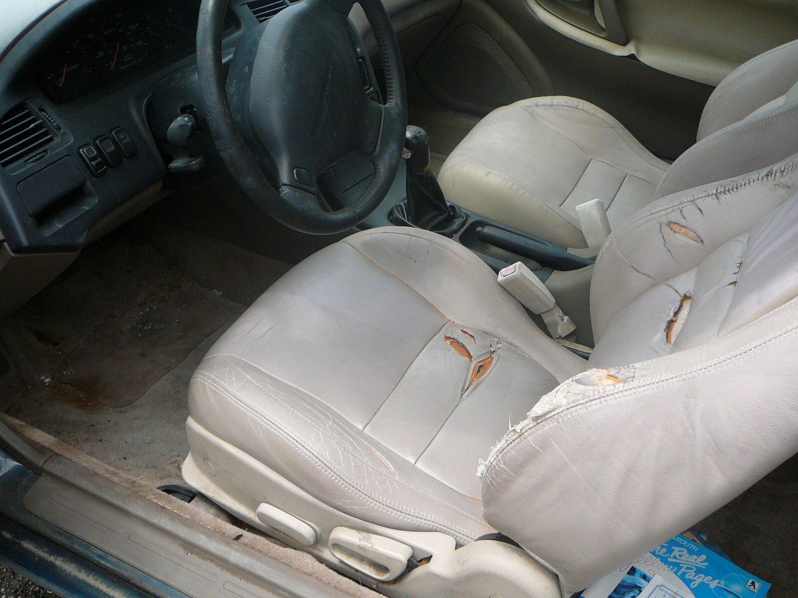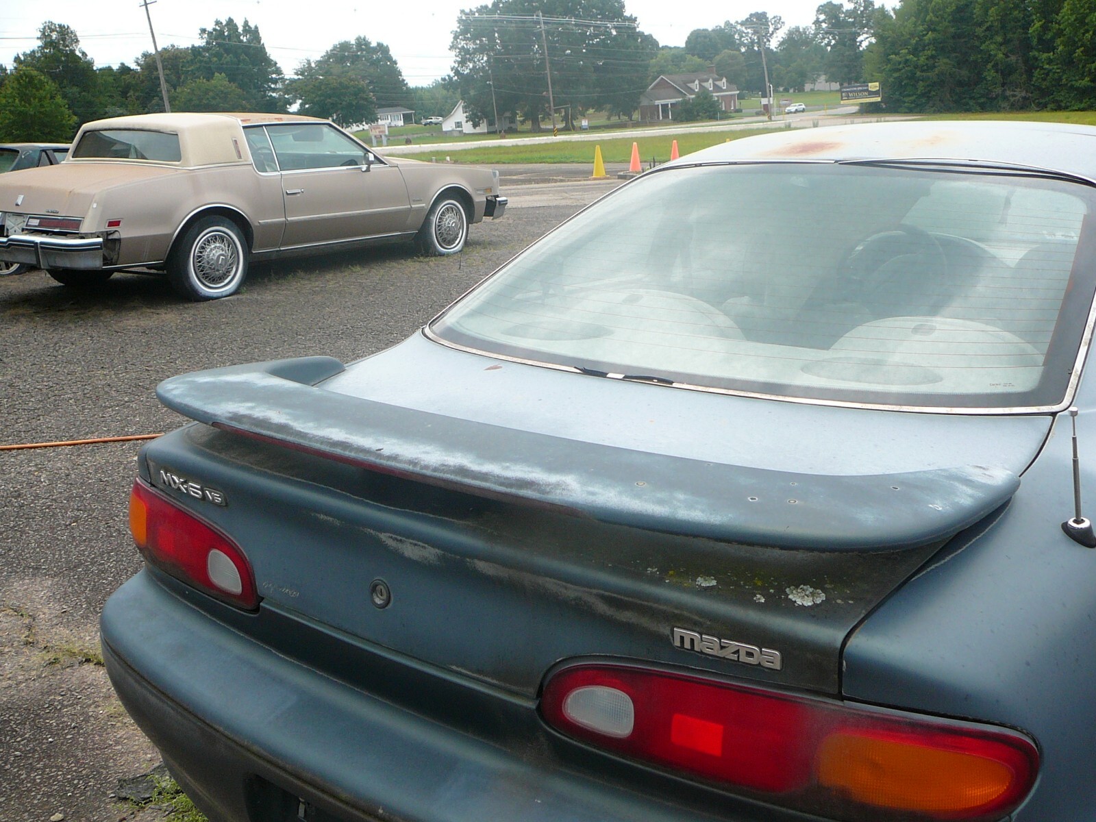 FOR YOUR CONSIDERATION WE OFFER THIS 1995 MAZDA MX-6 V6 LS COUPE. THIS MAZDA IS EQUIPPED WITH A 2.5L V6 ENGINE AND 5-SPEED MANUAL TRANSMISSION. IT IS HARD TO TELL THE COLOR IN THE PICTURES-BUT IT IS GREEN AND THE INTERIOR IS BEIGE LEATHER. THE PAINT IS ORIGINAL AND THERE IS ONLY ONE DENT-THAT IS SHOWN THE PICTURE OF THE LEFT FRONT FENDER. THERE IS ABSOLUTELY NO RUSTY PANELS AND ONLY 1 DENT AS MENTIONED SO THE PAINT WORK WOULD BE EASY. THE INTERIOR IS ORIGINAL AS SHOWN IN THE PICTURES. THE DRIVER'S SEAT WOULD HAVE TO BE FIXED-THAT SEAT IS ALSO SHOWN IN ONE OF THE PICTURES. THE ENGINE RUNS WITH AUXILIARY FUEL SOURCE BUT PROBABLY NEEDS NEW FUEL PUMP AND IT MAY NEED A LOT OF ATTENTION TO BE DRIVEABLE-IT HAS BEEN SITTING FOR 17 YEARS. BE SURE TO LOOK AT THE PICTURES AND FEEL FREE TO CONTACT US WITH ANY QUESTIONS YOU MAY HAVE. WE WILL ASSIST IN LOADING IF NEEDED. TITLE AND KEY IN HAND. PAYMENT IN CASH WHEN PICKED UP.