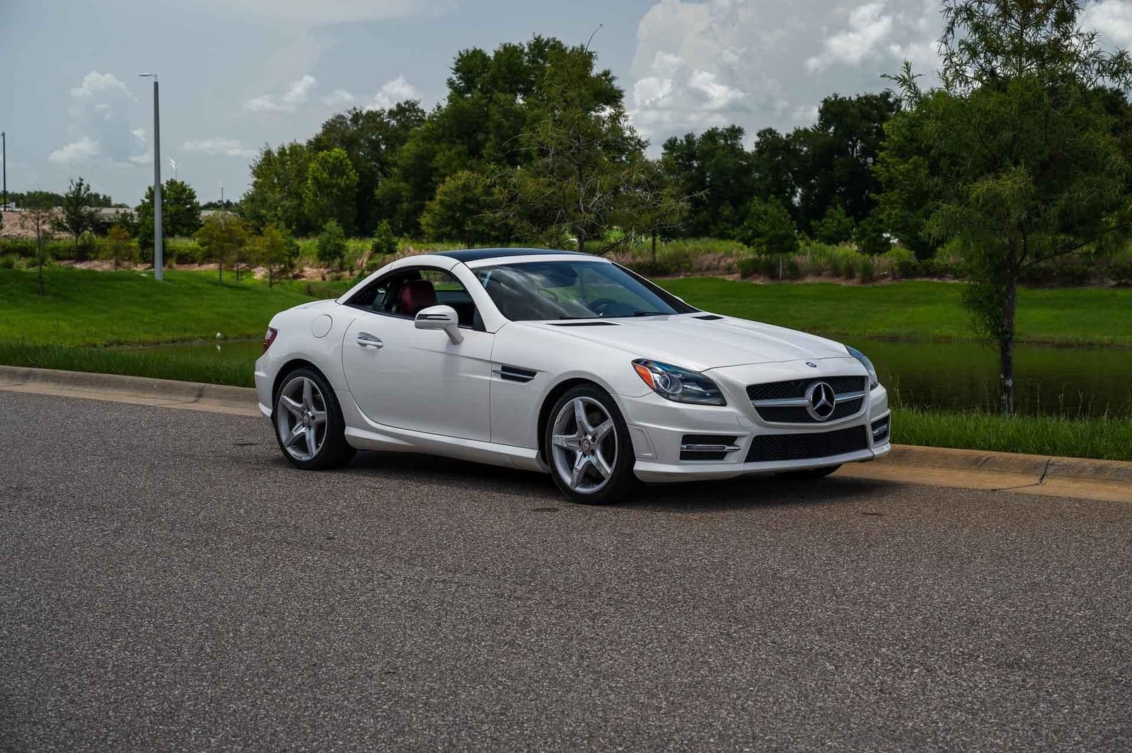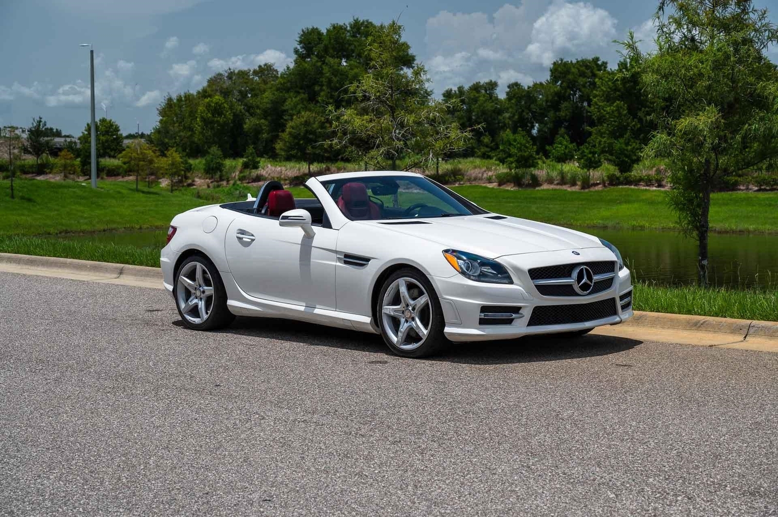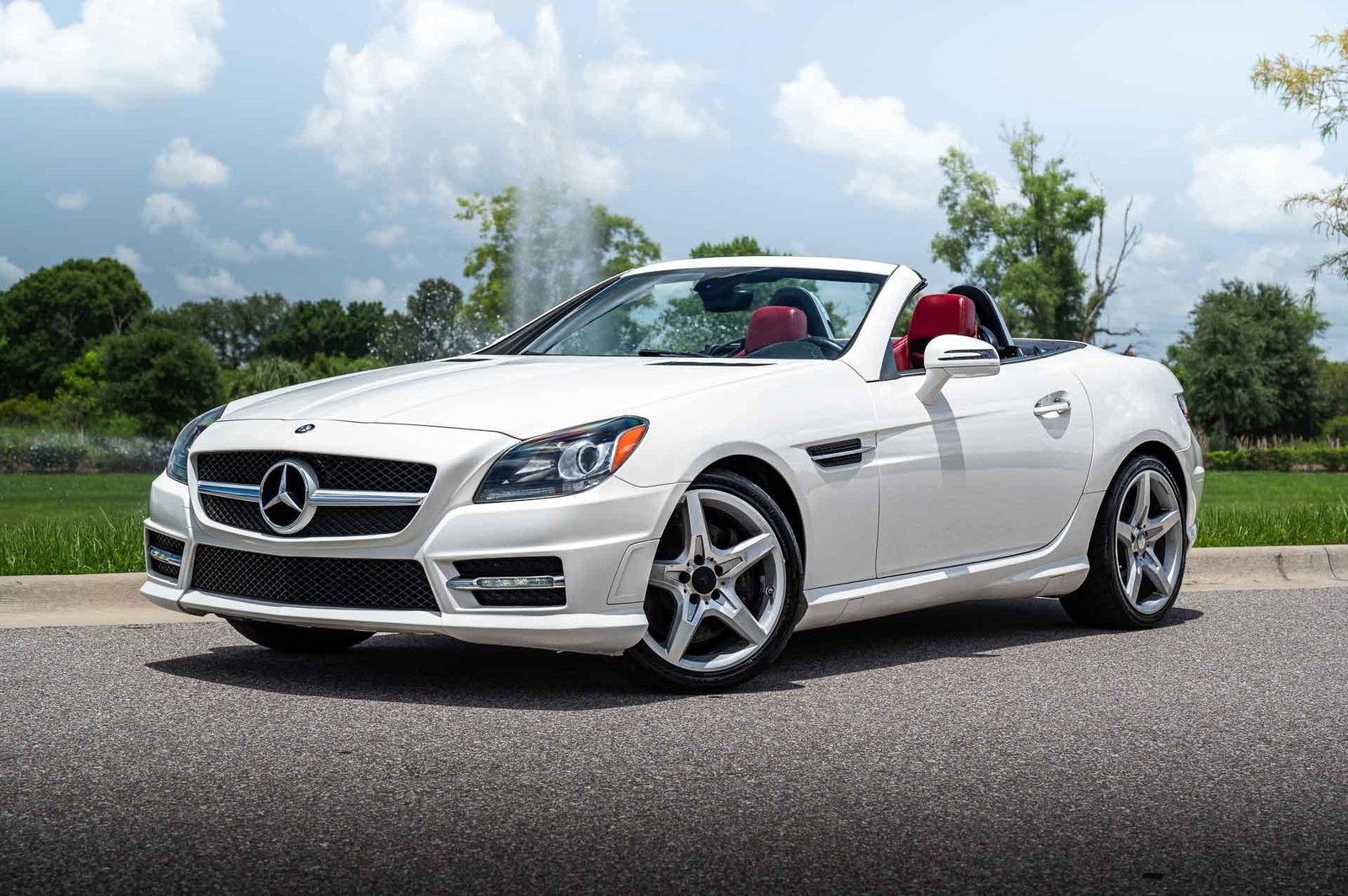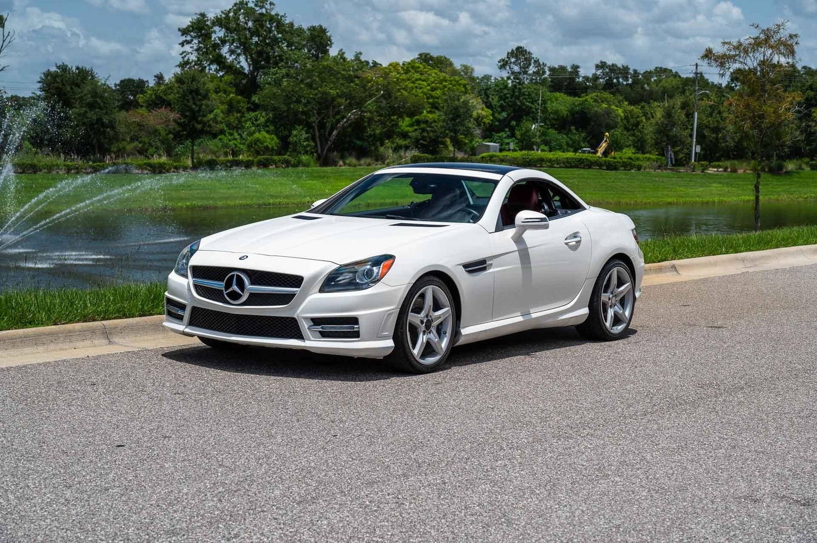 2015 Mercedes-Benz SLK Class 2D Roadster, Elevate your driving experience with this exquisite 2015 Mercedes-Benz SLK Class 2D Roadster. Combining sophisticated design, sporty performance, and luxurious comfort, this roadster is the perfect blend of style and substance, offering an unparalleled open-air driving experience. **Engine and Performance:** - **1.8L I-4 DI DOHC T/C Engine:** This turbocharged 1.8-liter inline-4 engine delivers spirited performance and impressive fuel efficiency, providing an exhilarating yet economical drive. - **Smooth and Responsive Handling:** The SLK's finely tuned suspension and precise steering ensure a dynamic and enjoyable driving experience, whether cruising on the highway or navigating winding roads. **Transmission:** - **Automatic Transmission:** Offers seamless and effortless gear changes, enhancing driving comfort and performance. **Exterior and Interior:** - **White Exterior:** The pristine white paint exudes elegance and sophistication, perfectly complementing the car’s sleek and sporty design. - **Red Bucket Seat Interior:** The luxurious red leather bucket seats provide a striking contrast to the white exterior, offering both comfort and a bold, stylish statement. **Features and Highlights:** - **Retractable Hardtop:** Enjoy the versatility of a convertible with the convenience of a coupe, allowing you to switch between an enclosed cabin and open-air freedom at the touch of a button. - **Advanced Technology:** Equipped with modern amenities such as a premium sound system, navigation, Bluetooth connectivity, and a multifunction display, keeping you connected and entertained on the go. - **Comfort and Convenience:** Features include dual-zone climate control, heated seats, and keyless entry, ensuring a comfortable and enjoyable driving experience in any weather. **Safety and Security:** - **Comprehensive Safety Features:** Includes advanced safety systems such as airbags, ABS, stability control, and a rearview camera, providing peace of mind on every journey. **Condition and Maintenance:** - **Well-Maintained:** This SLK Class roadster has been meticulously cared for, ensuring it remains in excellent condition both mechanically and aesthetically. **Highlights:** - **Timeless Design:** The SLK Class is known for its timeless and elegant design, combining classic roadster proportions with modern styling cues. - **Luxurious Driving Experience:** With its powerful yet efficient engine, luxurious interior, and advanced features, this roadster offers a truly premium driving experience. The 2015 Mercedes-Benz SLK Class 2D Roadster is a testament to Mercedes-Benz's commitment to luxury, performance, and style. With its turbocharged engine, stunning white exterior, and eye-catching red leather interior, this roadster promises a driving experience that is both exhilarating and refined. Don't miss the opportunity to own this beautifully crafted vehicle and enjoy the thrill of open-air motoring. While we do our best to provide the highest quality muscle cars with an honest and reliable description and realize the importance of transparency when selling vehicles. That being said, we have not built, modified, changed or personally owned this vehicle. Whether this vehicle is consigned or owned by Past & Present Motor Cars we do not know the vehicles complete history since new. We want to be clear and try to answer any questions our customers might have prior to purchasing. Additionally, we not only welcome but we encourage 3rd party independent inspections. Please inquire prior to purchase to make sure the advertised vehicle has not already been sold. We list our vehicles on multiple websites and a vehicle can sell at any time. If a customer chooses to purchase sight unseen (many of our customers choose this option) the customer accepts the vehicle AS IS and WHERE IS and understands we cannot address concerns after purchase. For this reason, it's important all concerns are addressed prior to purchase. We make every effort to present accurate and reliable information, but use of this information is voluntary, and should only be deemed reliable after an independent review of its accuracy, completeness, and timeliness. It is the sole responsibility of the customer to verify the existence of options, accessories and the vehicle condition before time of sale. Financing is Available with low rates and Vehicle Shipping is available from our Showroom to your Garage. A Classic Car Warranty is Available for Purchase from a 3rd Party. Please speak to our Sales Associate or Company Representative for more information. Our team is working and available anytime by Phone or Text for your convenience at 407-559-7759. Thank you for your interest!