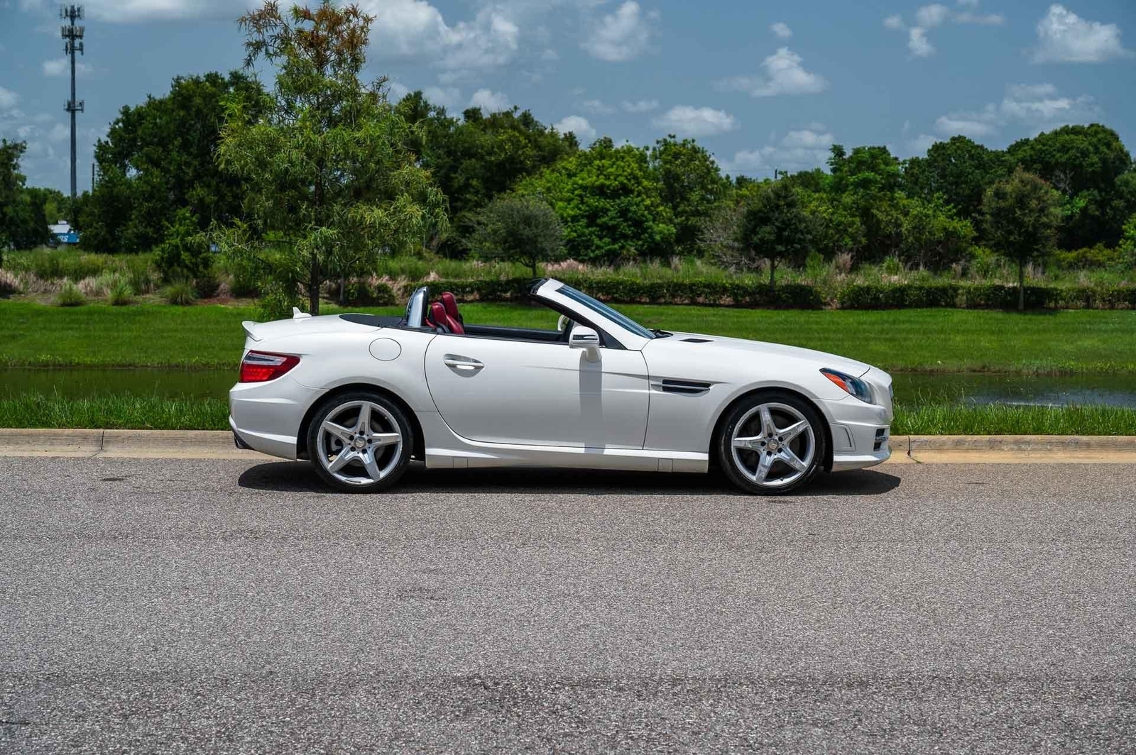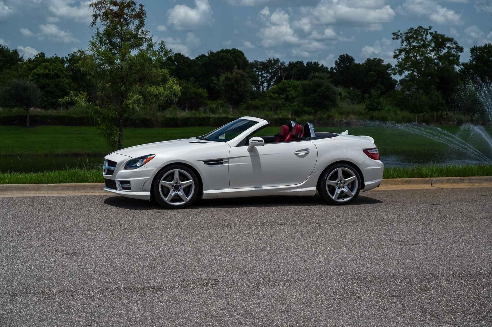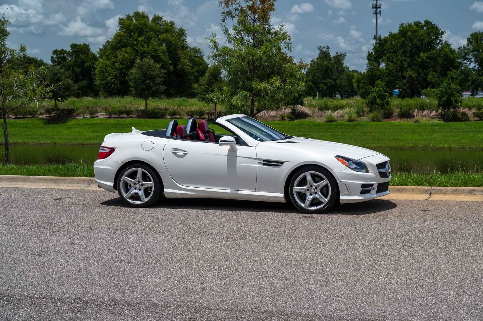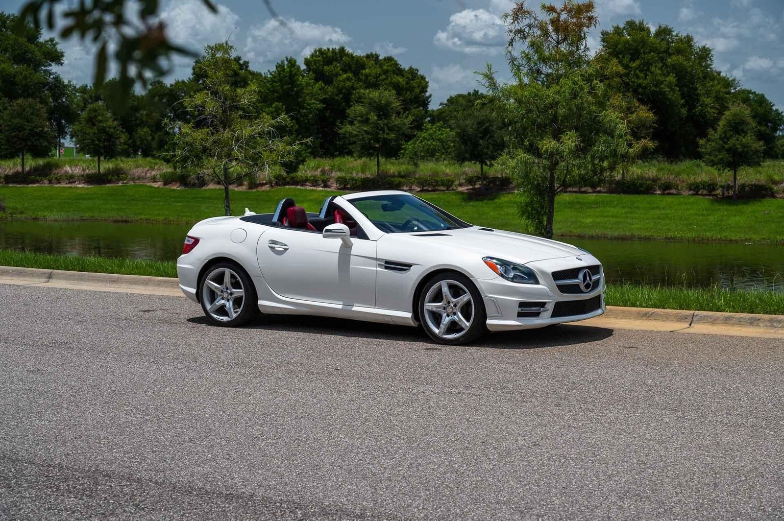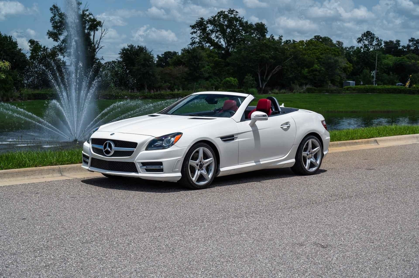 2015 Mercedes-Benz SLK Class 2D Roadster, Elevate your driving experience with this exquisite 2015 Mercedes-Benz SLK Class 2D Roadster. Combining sophisticated design, sporty performance, and luxurious comfort, this roadster is the perfect blend of style and substance, offering an unparalleled open-air driving experience. **Engine and Performance:** - **1.8L I-4 DI DOHC T/C Engine:** This turbocharged 1.8-liter inline-4 engine delivers spirited performance and impressive fuel efficiency, providing an exhilarating yet economical drive. - **Smooth and Responsive Handling:** The SLK's finely tuned suspension and precise steering ensure a dynamic and enjoyable driving experience, whether cruising on the highway or navigating winding roads. **Transmission:** - **Automatic Transmission:** Offers seamless and effortless gear changes, enhancing driving comfort and performance. **Exterior and Interior:** - **White Exterior:** The pristine white paint exudes elegance and sophistication, perfectly complementing the car’s sleek and sporty design. - **Red Bucket Seat Interior:** The luxurious red leather bucket seats provide a striking contrast to the white exterior, offering both comfort and a bold, stylish statement. **Features and Highlights:** - **Retractable Hardtop:** Enjoy the versatility of a convertible with the convenience of a coupe, allowing you to switch between an enclosed cabin and open-air freedom at the touch of a button. - **Advanced Technology:** Equipped with modern amenities such as a premium sound system, navigation, Bluetooth connectivity, and a multifunction display, keeping you connected and entertained on the go. - **Comfort and Convenience:** Features include dual-zone climate control, heated seats, and keyless entry, ensuring a comfortable and enjoyable driving experience in any weather. **Safety and Security:** - **Comprehensive Safety Features:** Includes advanced safety systems such as airbags, ABS, stability control, and a rearview camera, providing peace of mind on every journey. **Condition and Maintenance:** - **Well-Maintained:** This SLK Class roadster has been meticulously cared for, ensuring it remains in excellent condition both mechanically and aesthetically. **Highlights:** - **Timeless Design:** The SLK Class is known for its timeless and elegant design, combining classic roadster proportions with modern styling cues. - **Luxurious Driving Experience:** With its powerful yet efficient engine, luxurious interior, and advanced features, this roadster offers a truly premium driving experience. The 2015 Mercedes-Benz SLK Class 2D Roadster is a testament to Mercedes-Benz's commitment to luxury, performance, and style. With its turbocharged engine, stunning white exterior, and eye-catching red leather interior, this roadster promises a driving experience that is both exhilarating and refined. Don't miss the opportunity to own this beautifully crafted vehicle and enjoy the thrill of open-air motoring. While we do our best to provide the highest quality muscle cars with an honest and reliable description and realize the importance of transparency when selling vehicles. That being said, we have not built, modified, changed or personally owned this vehicle. Whether this vehicle is consigned or owned by Past & Present Motor Cars we do not know the vehicles complete history since new. We want to be clear and try to answer any questions our customers might have prior to purchasing. Additionally, we not only welcome but we encourage 3rd party independent inspections. Please inquire prior to purchase to make sure the advertised vehicle has not already been sold. We list our vehicles on multiple websites and a vehicle can sell at any time. If a customer chooses to purchase sight unseen (many of our customers choose this option) the customer accepts the vehicle AS IS and WHERE IS and understands we cannot address concerns after purchase. For this reason, it's important all concerns are addressed prior to purchase. We make every effort to present accurate and reliable information, but use of this information is voluntary, and should only be deemed reliable after an independent review of its accuracy, completeness, and timeliness. It is the sole responsibility of the customer to verify the existence of options, accessories and the vehicle condition before time of sale. Financing is Available with low rates and Vehicle Shipping is available from our Showroom to your Garage. A Classic Car Warranty is Available for Purchase from a 3rd Party. Please speak to our Sales Associate or Company Representative for more information. Our team is working and available anytime by Phone or Text for your convenience at 407-559-7759. Thank you for your interest!
