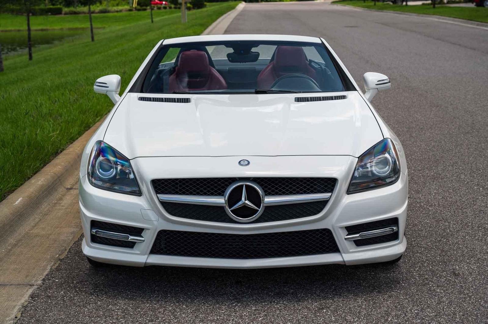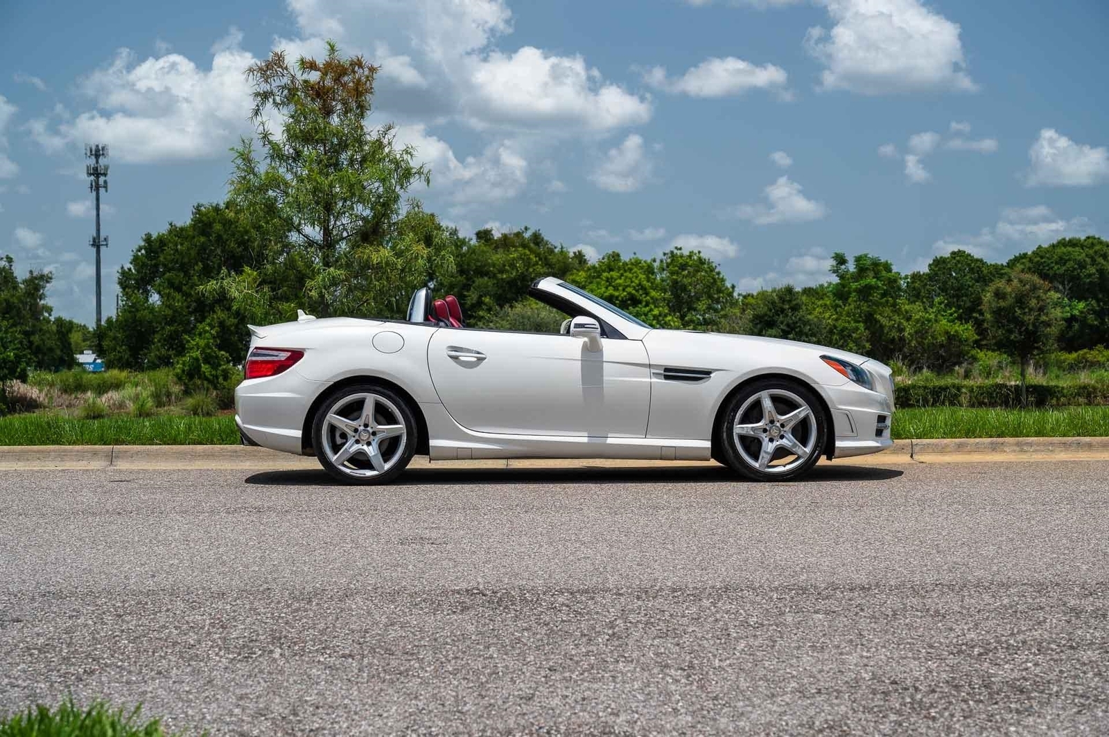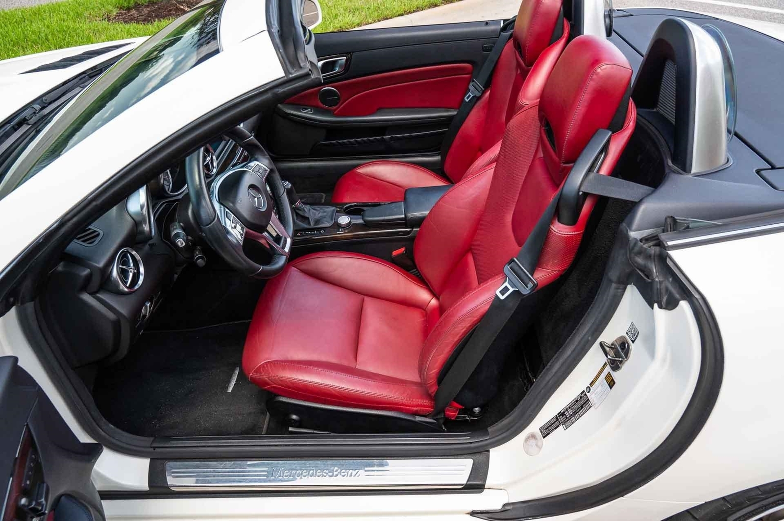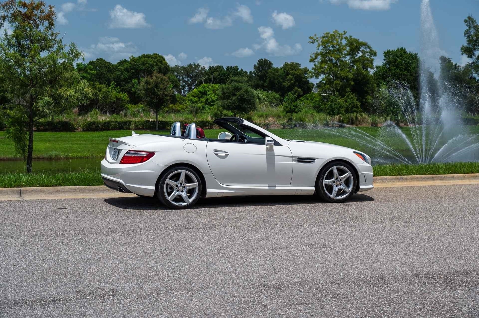 2015 Mercedes-Benz SLK Class 2D Roadster, Elevate your driving experience with this exquisite 2015 Mercedes-Benz SLK Class 2D Roadster. Combining sophisticated design, sporty performance, and luxurious comfort, this roadster is the perfect blend of style and substance, offering an unparalleled open-air driving experience. **Engine and Performance:** - **1.8L I-4 DI DOHC T/C Engine:** This turbocharged 1.8-liter inline-4 engine delivers spirited performance and impressive fuel efficiency, providing an exhilarating yet economical drive. - **Smooth and Responsive Handling:** The SLK's finely tuned suspension and precise steering ensure a dynamic and enjoyable driving experience, whether cruising on the highway or navigating winding roads. **Transmission:** - **Automatic Transmission:** Offers seamless and effortless gear changes, enhancing driving comfort and performance. **Exterior and Interior:** - **White Exterior:** The pristine white paint exudes elegance and sophistication, perfectly complementing the car’s sleek and sporty design. - **Red Bucket Seat Interior:** The luxurious red leather bucket seats provide a striking contrast to the white exterior, offering both comfort and a bold, stylish statement. **Features and Highlights:** - **Retractable Hardtop:** Enjoy the versatility of a convertible with the convenience of a coupe, allowing you to switch between an enclosed cabin and open-air freedom at the touch of a button. - **Advanced Technology:** Equipped with modern amenities such as a premium sound system, navigation, Bluetooth connectivity, and a multifunction display, keeping you connected and entertained on the go. - **Comfort and Convenience:** Features include dual-zone climate control, heated seats, and keyless entry, ensuring a comfortable and enjoyable driving experience in any weather. **Safety and Security:** - **Comprehensive Safety Features:** Includes advanced safety systems such as airbags, ABS, stability control, and a rearview camera, providing peace of mind on every journey. **Condition and Maintenance:** - **Well-Maintained:** This SLK Class roadster has been meticulously cared for, ensuring it remains in excellent condition both mechanically and aesthetically. **Highlights:** - **Timeless Design:** The SLK Class is known for its timeless and elegant design, combining classic roadster proportions with modern styling cues. - **Luxurious Driving Experience:** With its powerful yet efficient engine, luxurious interior, and advanced features, this roadster offers a truly premium driving experience. The 2015 Mercedes-Benz SLK Class 2D Roadster is a testament to Mercedes-Benz's commitment to luxury, performance, and style. With its turbocharged engine, stunning white exterior, and eye-catching red leather interior, this roadster promises a driving experience that is both exhilarating and refined. Don't miss the opportunity to own this beautifully crafted vehicle and enjoy the thrill of open-air motoring. While we do our best to provide the highest quality muscle cars with an honest and reliable description and realize the importance of transparency when selling vehicles. That being said, we have not built, modified, changed or personally owned this vehicle. Whether this vehicle is consigned or owned by Past & Present Motor Cars we do not know the vehicles complete history since new. We want to be clear and try to answer any questions our customers might have prior to purchasing. Additionally, we not only welcome but we encourage 3rd party independent inspections. Please inquire prior to purchase to make sure the advertised vehicle has not already been sold. We list our vehicles on multiple websites and a vehicle can sell at any time. If a customer chooses to purchase sight unseen (many of our customers choose this option) the customer accepts the vehicle AS IS and WHERE IS and understands we cannot address concerns after purchase. For this reason, it's important all concerns are addressed prior to purchase. We make every effort to present accurate and reliable information, but use of this information is voluntary, and should only be deemed reliable after an independent review of its accuracy, completeness, and timeliness. It is the sole responsibility of the customer to verify the existence of options, accessories and the vehicle condition before time of sale. Financing is Available with low rates and Vehicle Shipping is available from our Showroom to your Garage. A Classic Car Warranty is Available for Purchase from a 3rd Party. Please speak to our Sales Associate or Company Representative for more information. Our team is working and available anytime by Phone or Text for your convenience at 407-559-7759. Thank you for your interest!