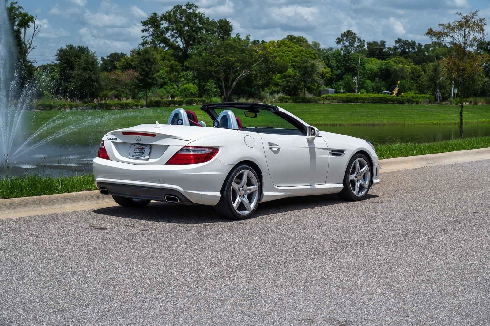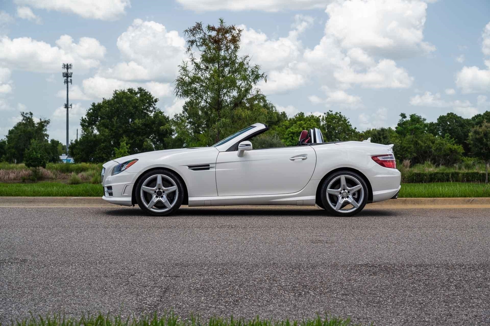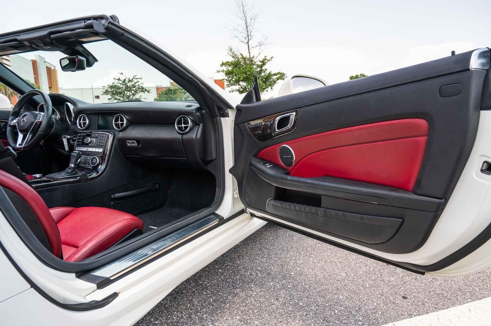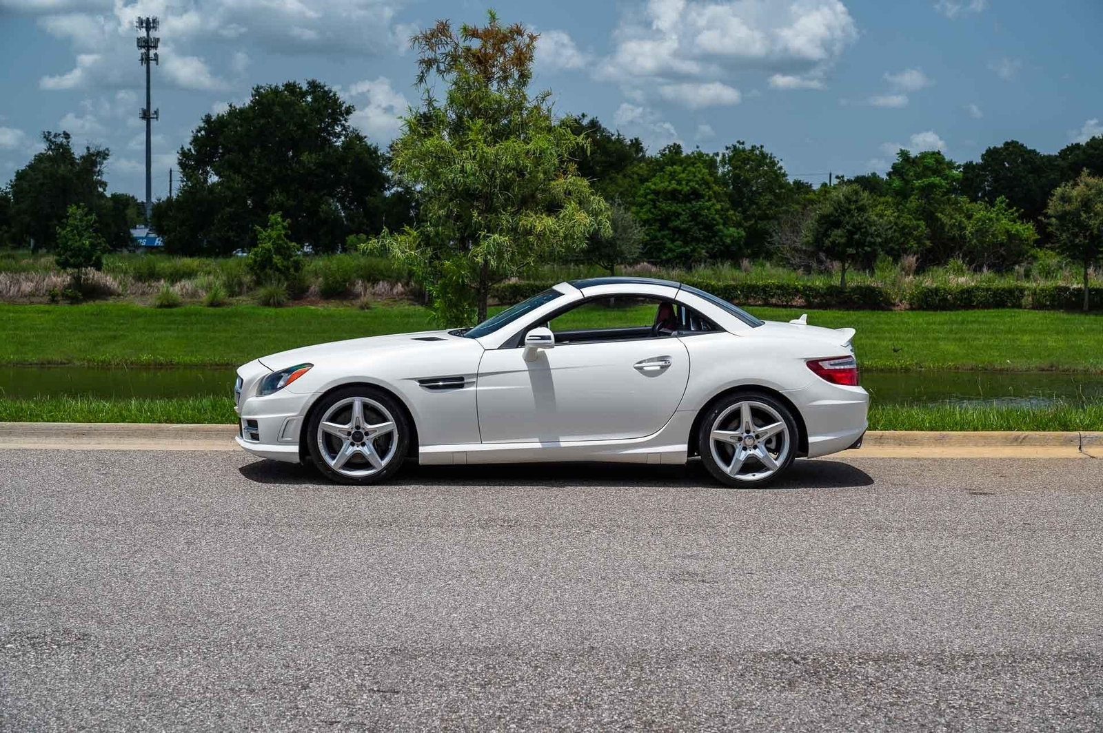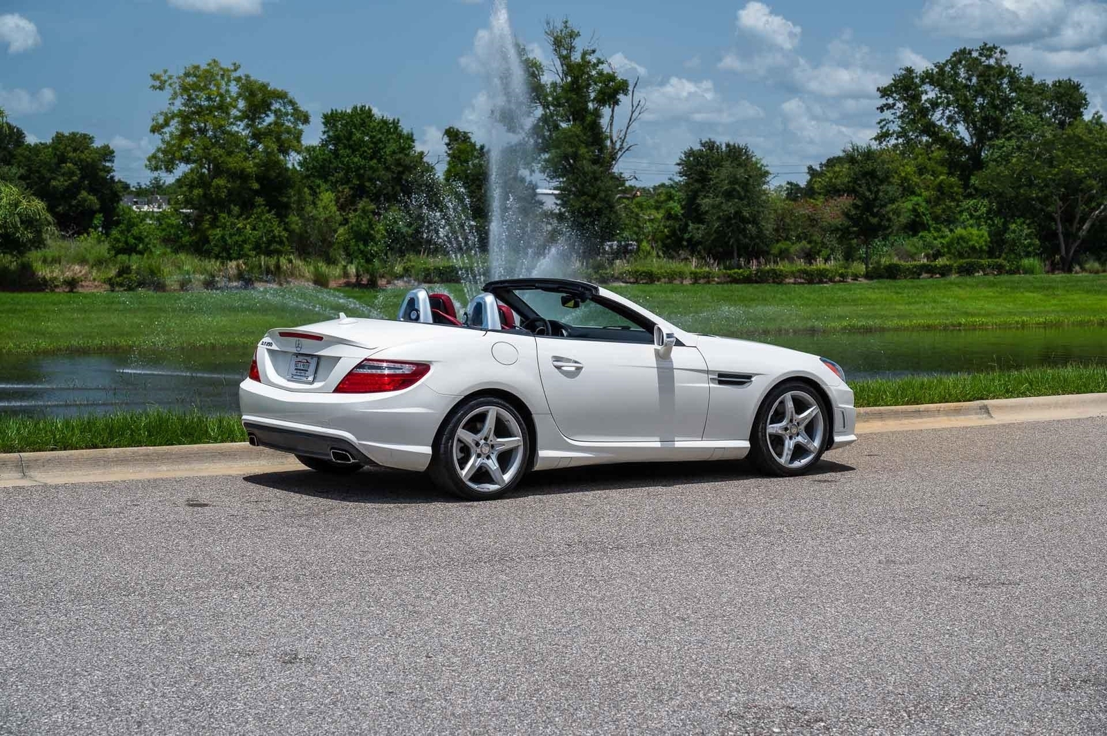 2015 Mercedes-Benz SLK Class 2D Roadster, Elevate your driving experience with this exquisite 2015 Mercedes-Benz SLK Class 2D Roadster. Combining sophisticated design, sporty performance, and luxurious comfort, this roadster is the perfect blend of style and substance, offering an unparalleled open-air driving experience. **Engine and Performance:** - **1.8L I-4 DI DOHC T/C Engine:** This turbocharged 1.8-liter inline-4 engine delivers spirited performance and impressive fuel efficiency, providing an exhilarating yet economical drive. - **Smooth and Responsive Handling:** The SLK's finely tuned suspension and precise steering ensure a dynamic and enjoyable driving experience, whether cruising on the highway or navigating winding roads. **Transmission:** - **Automatic Transmission:** Offers seamless and effortless gear changes, enhancing driving comfort and performance. **Exterior and Interior:** - **White Exterior:** The pristine white paint exudes elegance and sophistication, perfectly complementing the car’s sleek and sporty design. - **Red Bucket Seat Interior:** The luxurious red leather bucket seats provide a striking contrast to the white exterior, offering both comfort and a bold, stylish statement. **Features and Highlights:** - **Retractable Hardtop:** Enjoy the versatility of a convertible with the convenience of a coupe, allowing you to switch between an enclosed cabin and open-air freedom at the touch of a button. - **Advanced Technology:** Equipped with modern amenities such as a premium sound system, navigation, Bluetooth connectivity, and a multifunction display, keeping you connected and entertained on the go. - **Comfort and Convenience:** Features include dual-zone climate control, heated seats, and keyless entry, ensuring a comfortable and enjoyable driving experience in any weather. **Safety and Security:** - **Comprehensive Safety Features:** Includes advanced safety systems such as airbags, ABS, stability control, and a rearview camera, providing peace of mind on every journey. **Condition and Maintenance:** - **Well-Maintained:** This SLK Class roadster has been meticulously cared for, ensuring it remains in excellent condition both mechanically and aesthetically. **Highlights:** - **Timeless Design:** The SLK Class is known for its timeless and elegant design, combining classic roadster proportions with modern styling cues. - **Luxurious Driving Experience:** With its powerful yet efficient engine, luxurious interior, and advanced features, this roadster offers a truly premium driving experience. The 2015 Mercedes-Benz SLK Class 2D Roadster is a testament to Mercedes-Benz's commitment to luxury, performance, and style. With its turbocharged engine, stunning white exterior, and eye-catching red leather interior, this roadster promises a driving experience that is both exhilarating and refined. Don't miss the opportunity to own this beautifully crafted vehicle and enjoy the thrill of open-air motoring. While we do our best to provide the highest quality muscle cars with an honest and reliable description and realize the importance of transparency when selling vehicles. That being said, we have not built, modified, changed or personally owned this vehicle. Whether this vehicle is consigned or owned by Past & Present Motor Cars we do not know the vehicles complete history since new. We want to be clear and try to answer any questions our customers might have prior to purchasing. Additionally, we not only welcome but we encourage 3rd party independent inspections. Please inquire prior to purchase to make sure the advertised vehicle has not already been sold. We list our vehicles on multiple websites and a vehicle can sell at any time. If a customer chooses to purchase sight unseen (many of our customers choose this option) the customer accepts the vehicle AS IS and WHERE IS and understands we cannot address concerns after purchase. For this reason, it's important all concerns are addressed prior to purchase. We make every effort to present accurate and reliable information, but use of this information is voluntary, and should only be deemed reliable after an independent review of its accuracy, completeness, and timeliness. It is the sole responsibility of the customer to verify the existence of options, accessories and the vehicle condition before time of sale. Financing is Available with low rates and Vehicle Shipping is available from our Showroom to your Garage. A Classic Car Warranty is Available for Purchase from a 3rd Party. Please speak to our Sales Associate or Company Representative for more information. Our team is working and available anytime by Phone or Text for your convenience at 407-559-7759. Thank you for your interest!