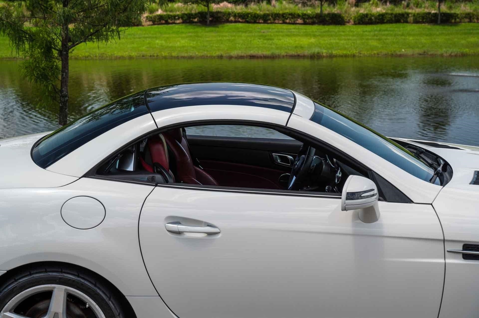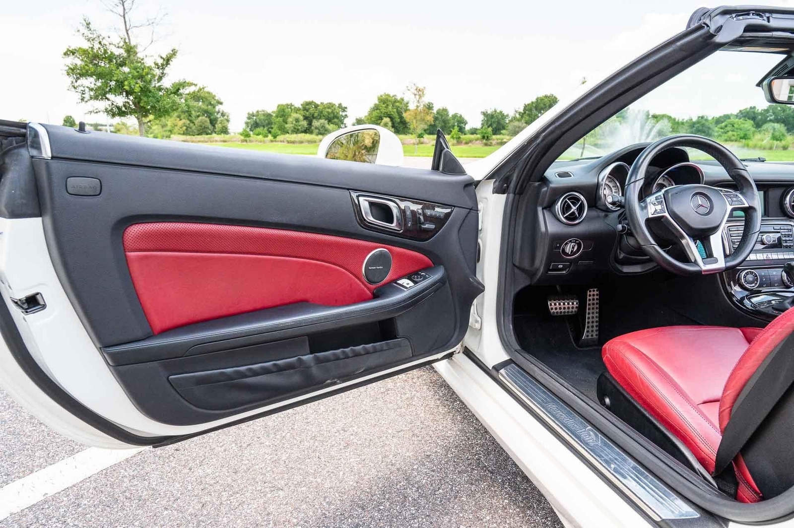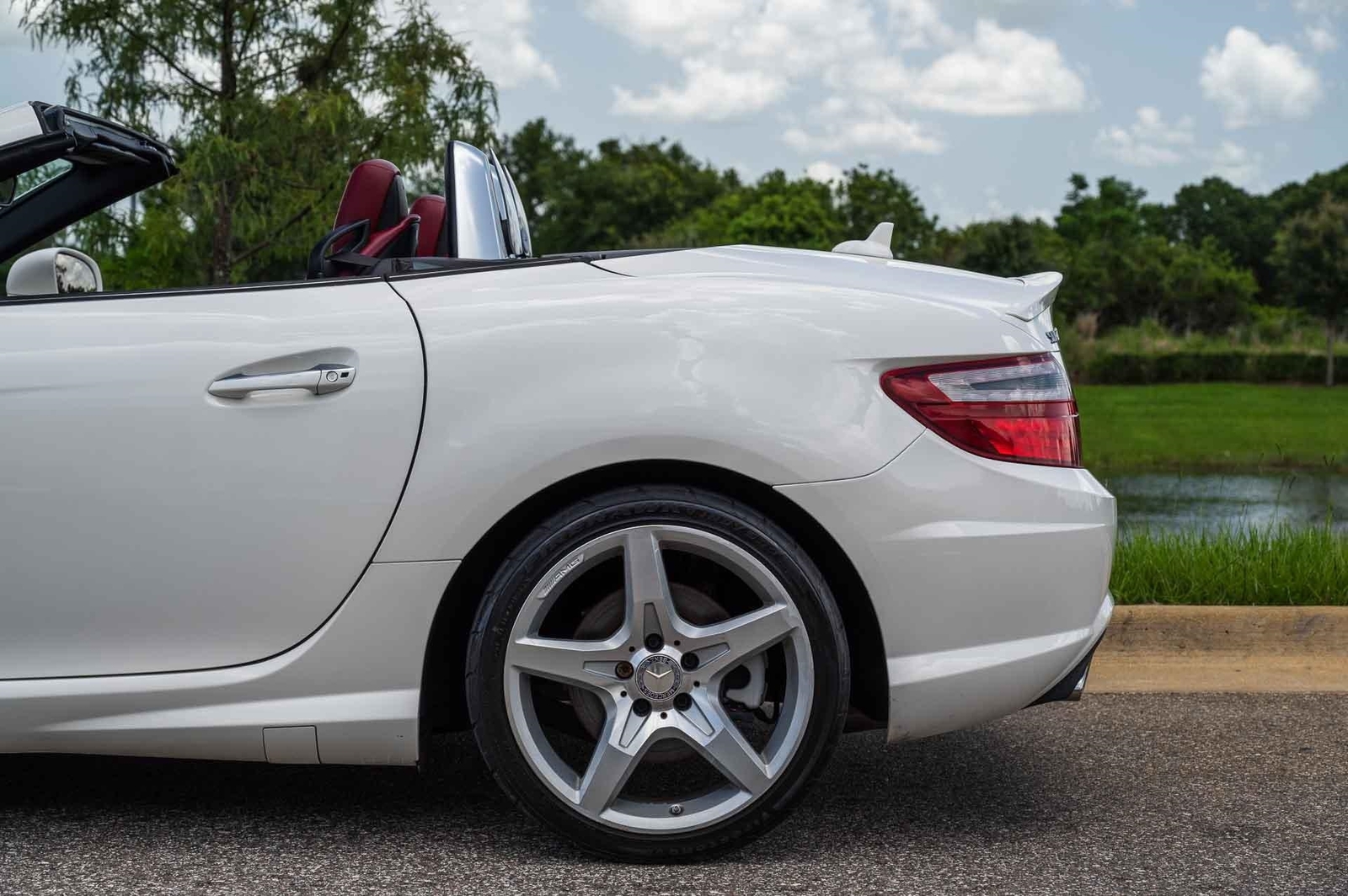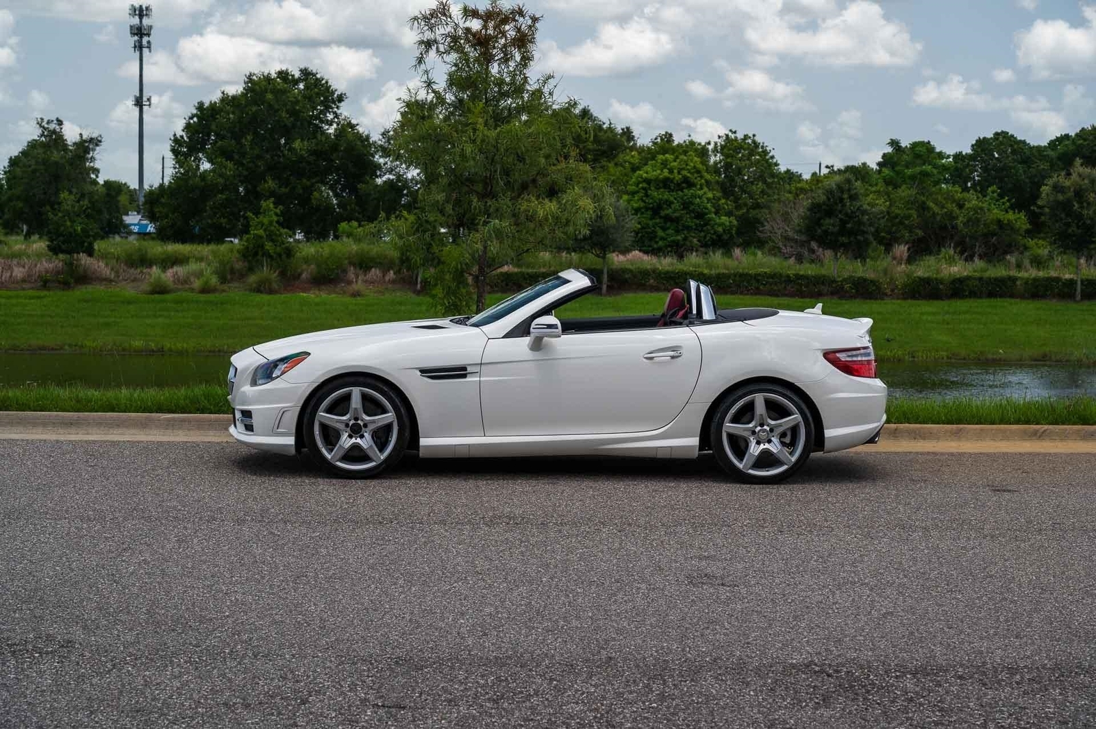 2015 Mercedes-Benz SLK Class 2D Roadster, Elevate your driving experience with this exquisite 2015 Mercedes-Benz SLK Class 2D Roadster. Combining sophisticated design, sporty performance, and luxurious comfort, this roadster is the perfect blend of style and substance, offering an unparalleled open-air driving experience. **Engine and Performance:** - **1.8L I-4 DI DOHC T/C Engine:** This turbocharged 1.8-liter inline-4 engine delivers spirited performance and impressive fuel efficiency, providing an exhilarating yet economical drive. - **Smooth and Responsive Handling:** The SLK's finely tuned suspension and precise steering ensure a dynamic and enjoyable driving experience, whether cruising on the highway or navigating winding roads. **Transmission:** - **Automatic Transmission:** Offers seamless and effortless gear changes, enhancing driving comfort and performance. **Exterior and Interior:** - **White Exterior:** The pristine white paint exudes elegance and sophistication, perfectly complementing the car’s sleek and sporty design. - **Red Bucket Seat Interior:** The luxurious red leather bucket seats provide a striking contrast to the white exterior, offering both comfort and a bold, stylish statement. **Features and Highlights:** - **Retractable Hardtop:** Enjoy the versatility of a convertible with the convenience of a coupe, allowing you to switch between an enclosed cabin and open-air freedom at the touch of a button. - **Advanced Technology:** Equipped with modern amenities such as a premium sound system, navigation, Bluetooth connectivity, and a multifunction display, keeping you connected and entertained on the go. - **Comfort and Convenience:** Features include dual-zone climate control, heated seats, and keyless entry, ensuring a comfortable and enjoyable driving experience in any weather. **Safety and Security:** - **Comprehensive Safety Features:** Includes advanced safety systems such as airbags, ABS, stability control, and a rearview camera, providing peace of mind on every journey. **Condition and Maintenance:** - **Well-Maintained:** This SLK Class roadster has been meticulously cared for, ensuring it remains in excellent condition both mechanically and aesthetically. **Highlights:** - **Timeless Design:** The SLK Class is known for its timeless and elegant design, combining classic roadster proportions with modern styling cues. - **Luxurious Driving Experience:** With its powerful yet efficient engine, luxurious interior, and advanced features, this roadster offers a truly premium driving experience. The 2015 Mercedes-Benz SLK Class 2D Roadster is a testament to Mercedes-Benz's commitment to luxury, performance, and style. With its turbocharged engine, stunning white exterior, and eye-catching red leather interior, this roadster promises a driving experience that is both exhilarating and refined. Don't miss the opportunity to own this beautifully crafted vehicle and enjoy the thrill of open-air motoring. While we do our best to provide the highest quality muscle cars with an honest and reliable description and realize the importance of transparency when selling vehicles. That being said, we have not built, modified, changed or personally owned this vehicle. Whether this vehicle is consigned or owned by Past & Present Motor Cars we do not know the vehicles complete history since new. We want to be clear and try to answer any questions our customers might have prior to purchasing. Additionally, we not only welcome but we encourage 3rd party independent inspections. Please inquire prior to purchase to make sure the advertised vehicle has not already been sold. We list our vehicles on multiple websites and a vehicle can sell at any time. If a customer chooses to purchase sight unseen (many of our customers choose this option) the customer accepts the vehicle AS IS and WHERE IS and understands we cannot address concerns after purchase. For this reason, it's important all concerns are addressed prior to purchase. We make every effort to present accurate and reliable information, but use of this information is voluntary, and should only be deemed reliable after an independent review of its accuracy, completeness, and timeliness. It is the sole responsibility of the customer to verify the existence of options, accessories and the vehicle condition before time of sale. Financing is Available with low rates and Vehicle Shipping is available from our Showroom to your Garage. A Classic Car Warranty is Available for Purchase from a 3rd Party. Please speak to our Sales Associate or Company Representative for more information. Our team is working and available anytime by Phone or Text for your convenience at 407-559-7759. Thank you for your interest!