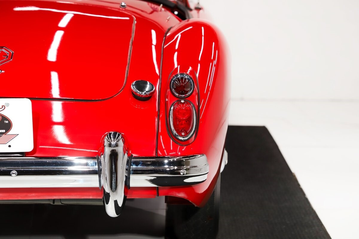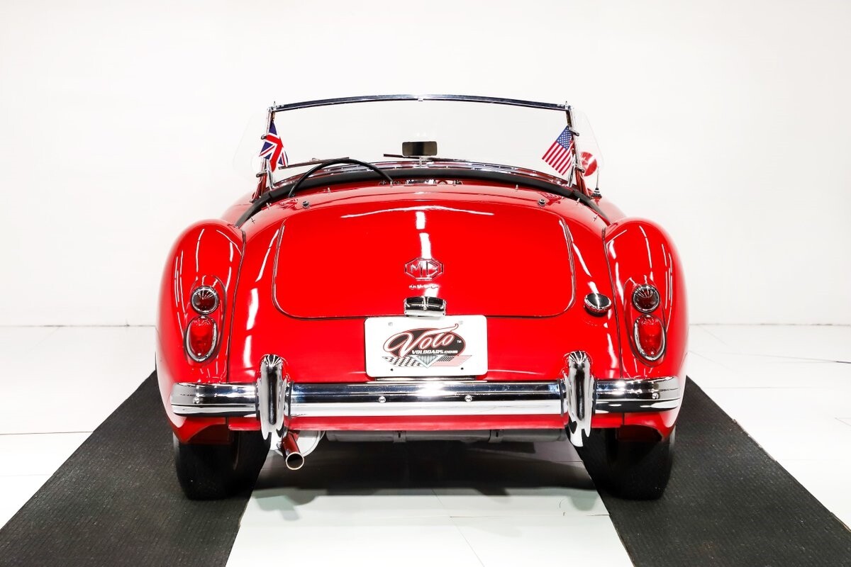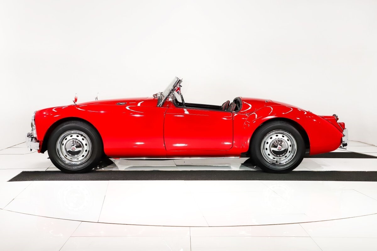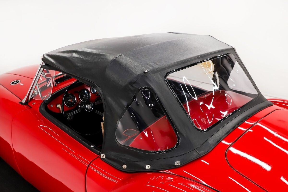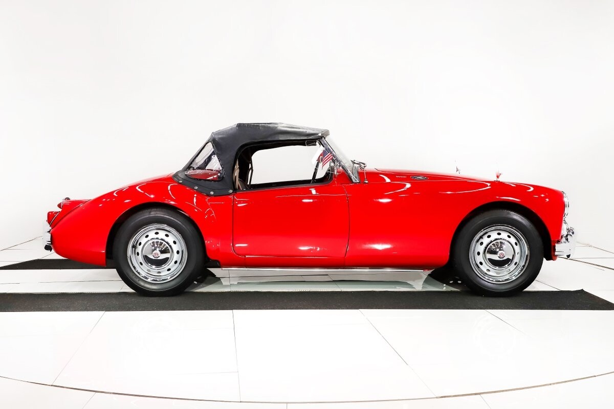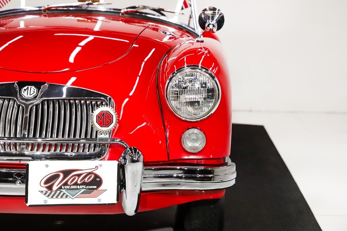 INTERIOR: The cabin is simplistic yet intriguing. The dash reminds you of an airplane cockpit. The gauges are stylish, matching, and complete with tachometer. It's even equipped with the factory AM radio and hidden under the dash is an 8-track player and speakers. Comfortable black with red piping bucket seats make driving this pleasurable. Other options include adjustable choke and throttle, and map lighting for your passenger to guide you on your road trip. Our favorite feature must be the original style 4 speed shifter coming up from the floor and completed with an authentic MG wood shift knob.
