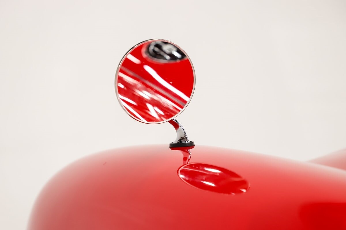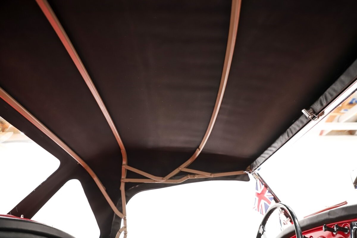 EXTERIOR: Just a sharp looking roadster. The body fit and finish is fantastic, and the bright red paint pops and is accented nicely with chrome trim and accessories. The front features sparkly fender fitted mirrors, stainless rings around the headlamps, a mirrored finish MG front grill, and chrome bumper with badge bar. The steel wheels are equipped with trim rings and fit perfectly to the car. For the chance you get caught in cold or rainy weather, this spunky little roadster comes with a tonneau cover, side windows, and soft top to fully enclose the cabin off.
