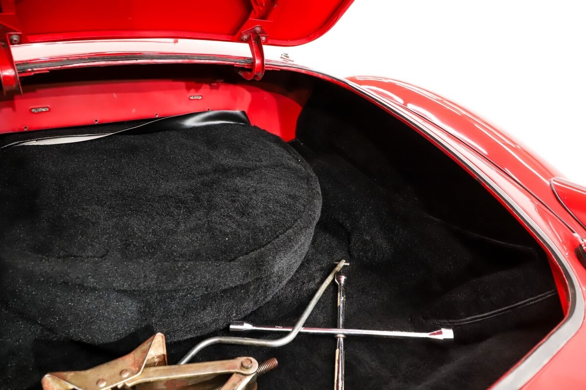 TRUNK COMPARTMENT: Under the trunk lid is painted nicely, as well as the jamb. The weather stripping has been replaced also. Overall nice and complete fully carpeted trunk with spare tire and original jack!