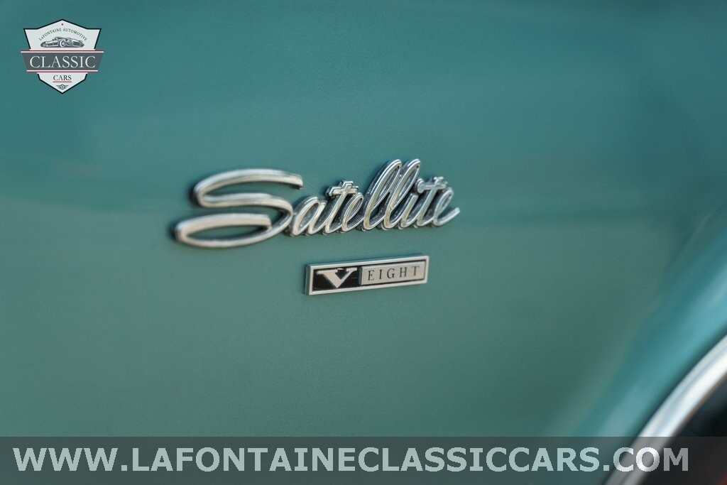The inside of this Satellite is absolutely beautiful as well! Inside you're greeted by a black interior with bucket seating. On the dash are the stock gauges in brilliant condition, stock 2-spoke steering wheel framing the 120mph Speedo, AM radio, Heater controls, & stock console shifter!