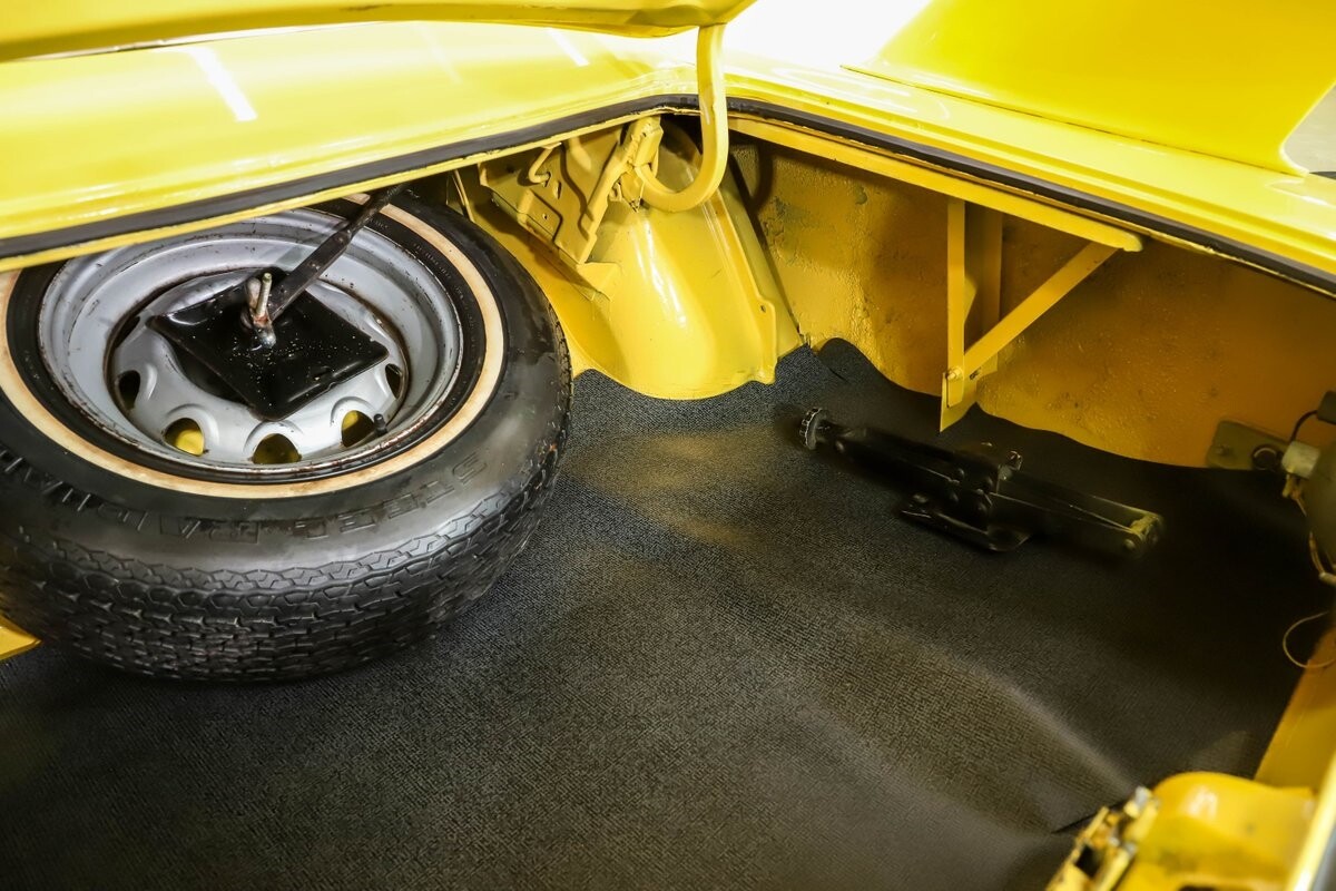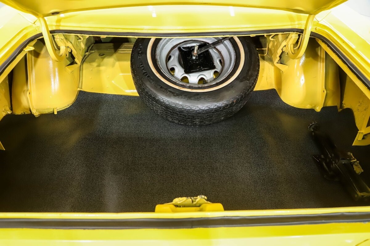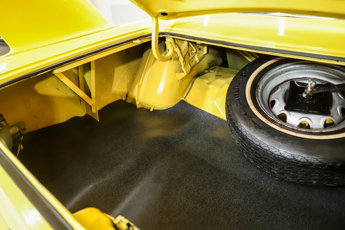 TRUNK COMPARTMENT: Rock solid metal, the trunk floor looks to be original which is uncommon. It has the correct bracing for the wing and a rallye wheel spare. We installed a new mat and weatherstrip.