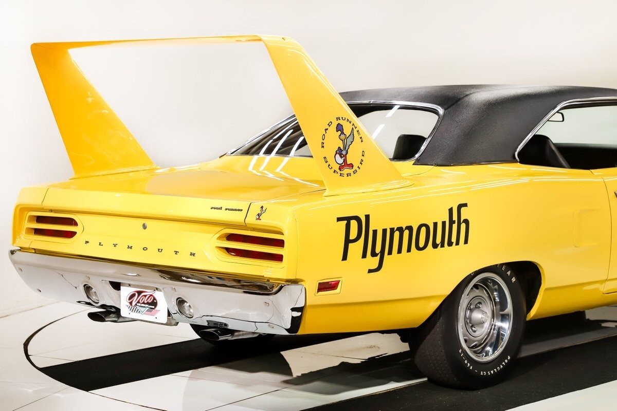 Superbird Story: In 1969 the Dodge Daytona was built to win NASCAR races. The engineers at Mopar squeezed all the horsepower they could out of their cars, so they called in a rocket scientist to increase speed with aerodynamics. Every bend curve and arch served a purpose. It wasn't for show, it was to win races and that is what it did. It was the first car to ever exceed 200 mph on a closed circuit track. Over at Plymouth their star NASCAR driver, Richard Petty, was handicapped by the limitations of the Road Runner so he jumped ship and went to Ford. In 1970 it was Plymouth that would carry on the Winged Warrior program with the Superbird. It was an attempt to lure back Petty and win races, both were achieved. As a matter of fact, it won so many races it caused its own demise. The top speeds these cars were achieving caused NASCAR to change their rules which brought a quick end to the Winged Warriors. NASCAR regulations said the manufacturers had to offer whatever they were racing as a production car to the public. They were rather obnoxious looking and impractical as an everyday car. They collected dust at the dealer showrooms, some dealers went as far as to remove the nose and wing. Today they are considered the holy grail of muscle cars!