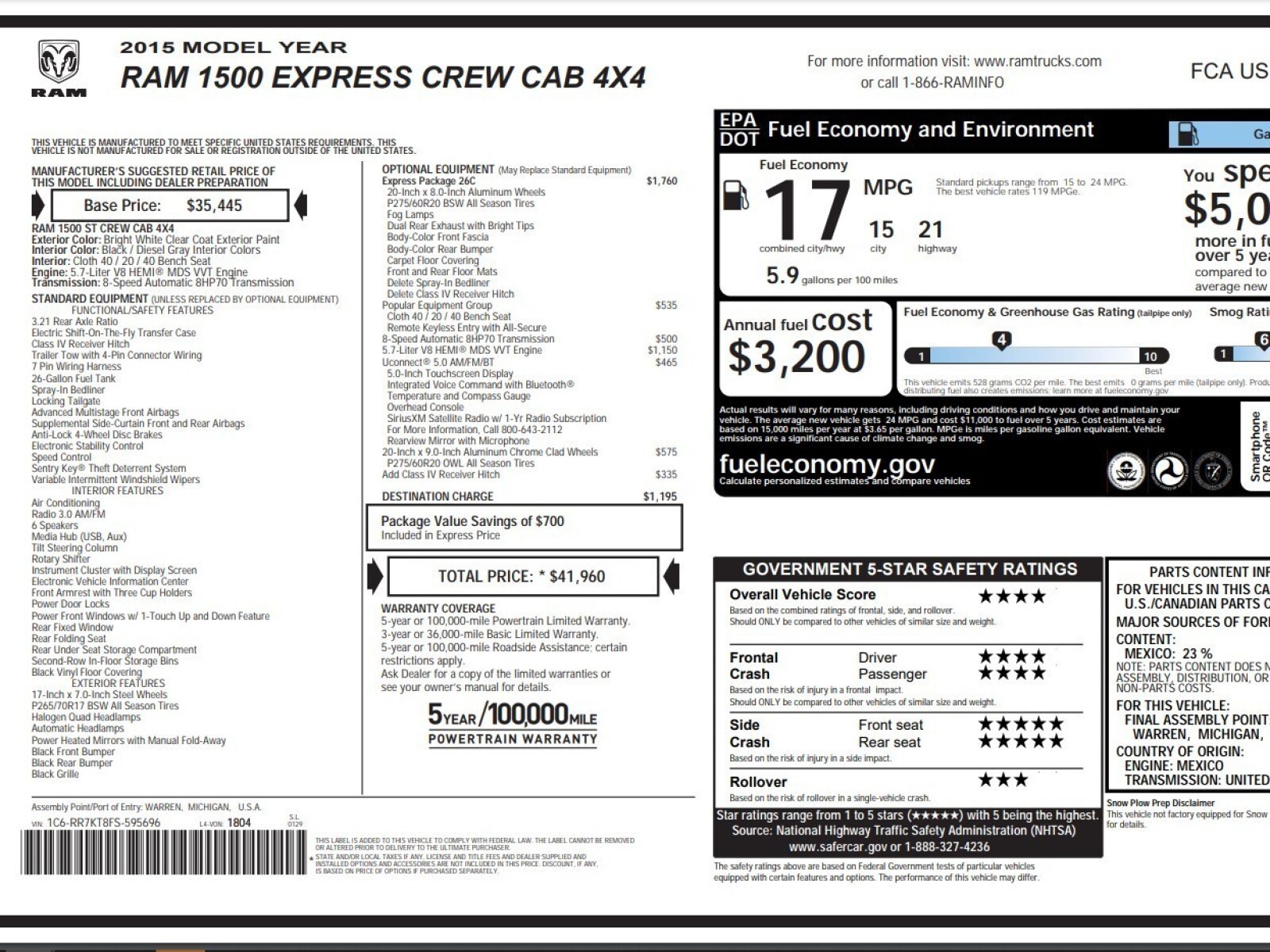Prices are subject to change without notice. Although every effort is made to present accurate and reliable vehicle information, use of this information is voluntary, and should only be deemed reliable after an independent review of its accuracy, completeness, and timeliness. It is the sole responsibility of the customer to verify the existence of options, accessories and the vehicle condition before time of sale. Any and all differences must be addressed prior to time of sale. No expressed or implied warranties, including the availability or condition of the equipment listed is made. EPA mileage estimates are for comparison purposes only. Actual mileage may vary depending on driving conditions, driving habits, and vehicle maintenance.