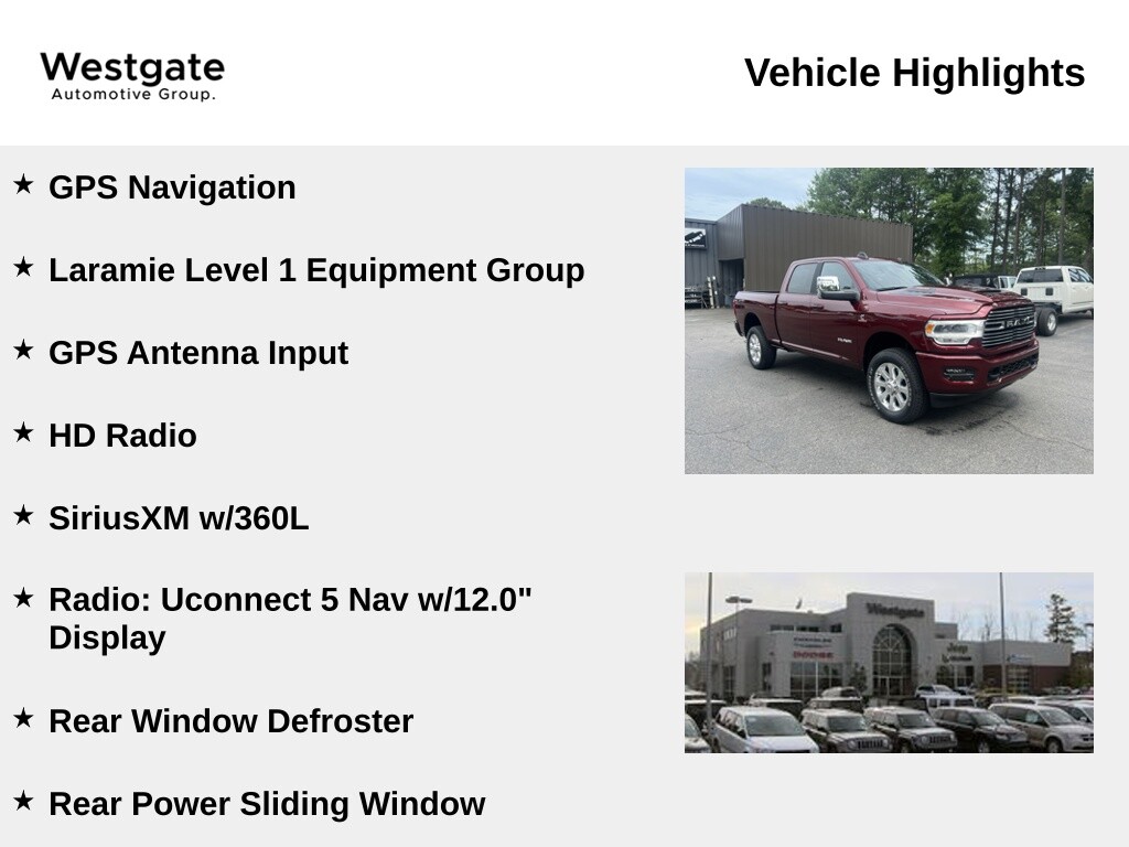 Delmonico Red Pearlcoat 2024 Ram 2500 Laramie 4WD 6-Speed Automatic Cummins 6.7L I6 Turbodiesel 12 Touchscreen Display, 2nd Row In Floor Storage Bins, 4G LTE Wi-Fi Hot Spot, Alexa Built-In, Apple CarPlay, Auto Adjust In Reverse Exterior Mirrors, Auto Dim Exterior Mirror, Auto High Beam Headlamp Control, Auto Power-Folding Mirrors, Auto-Dimming Exterior Passenger Mirror, Blind Spot & Cross Path Detection, Center Hub, Chrome Exterior Mirrors, Connected Travel & Traffic Services, Connectivity - US/Canada, Disassociated Touchscreen Display, Exterior Mirrors Courtesy Lamps, Exterior Mirrors w/Heating Element, Exterior Mirrors w/Memory, Exterior Mirrors w/Supplemental Signals, Foam Bottle Insert (Door Trim Panel), For Details, Visit , For More Info, Call866-722-2390, Forward & Reverse Utility Lights, Front LED Fog Lamps, Global Telematics Box Module (TBM), Google Android Auto, GPS Antenna Input, GPS Navigation, HD Radio, Integrated Voice Command w/Bluetooth, Laramie Level 1 Equipment Group, LED Reflector Headlamps, LED Tail Lamps, Mirror Running Lights, Off-Road Information Pages, ParkSense Front/Rear Park Assist System, Power Adjust Mirrors, Power Adjustable Convex Aux Mirrors, Power Adjustable Pedals w/Memory, Power Heated Fold Telescopic Mirrors w/Memory, Power Telescoping Mirrors, Radio: Uconnect 5 Nav w/12.0 Display, Rain Sensitive Windshield Wipers, Rear Power Sliding Window, Rear Window Defroster, Remote Tailgate Release, Selectable Tire Fill Alert, SiriusXM Radio Service, SiriusXM w/360L, Trailer Tow Pages, Wheels: 18 x 8.0 Polished Aluminum.