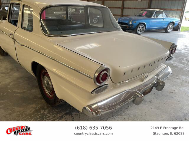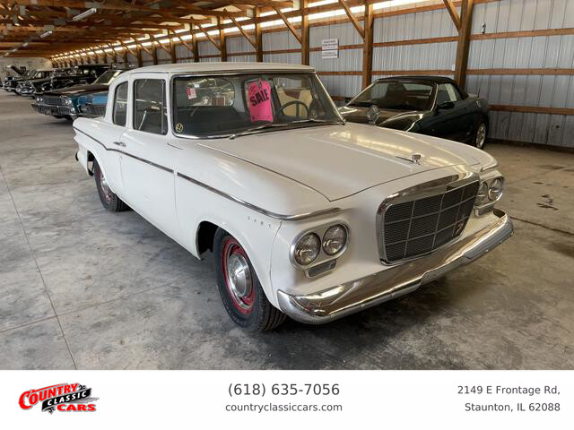 1962 Studebaker Lark 2dr sedan. same owner for 20 years, good solid little car, original interior, 6cyl 3 speed, stock steel wheels with dog dish hub caps, like new tires, runs and drives