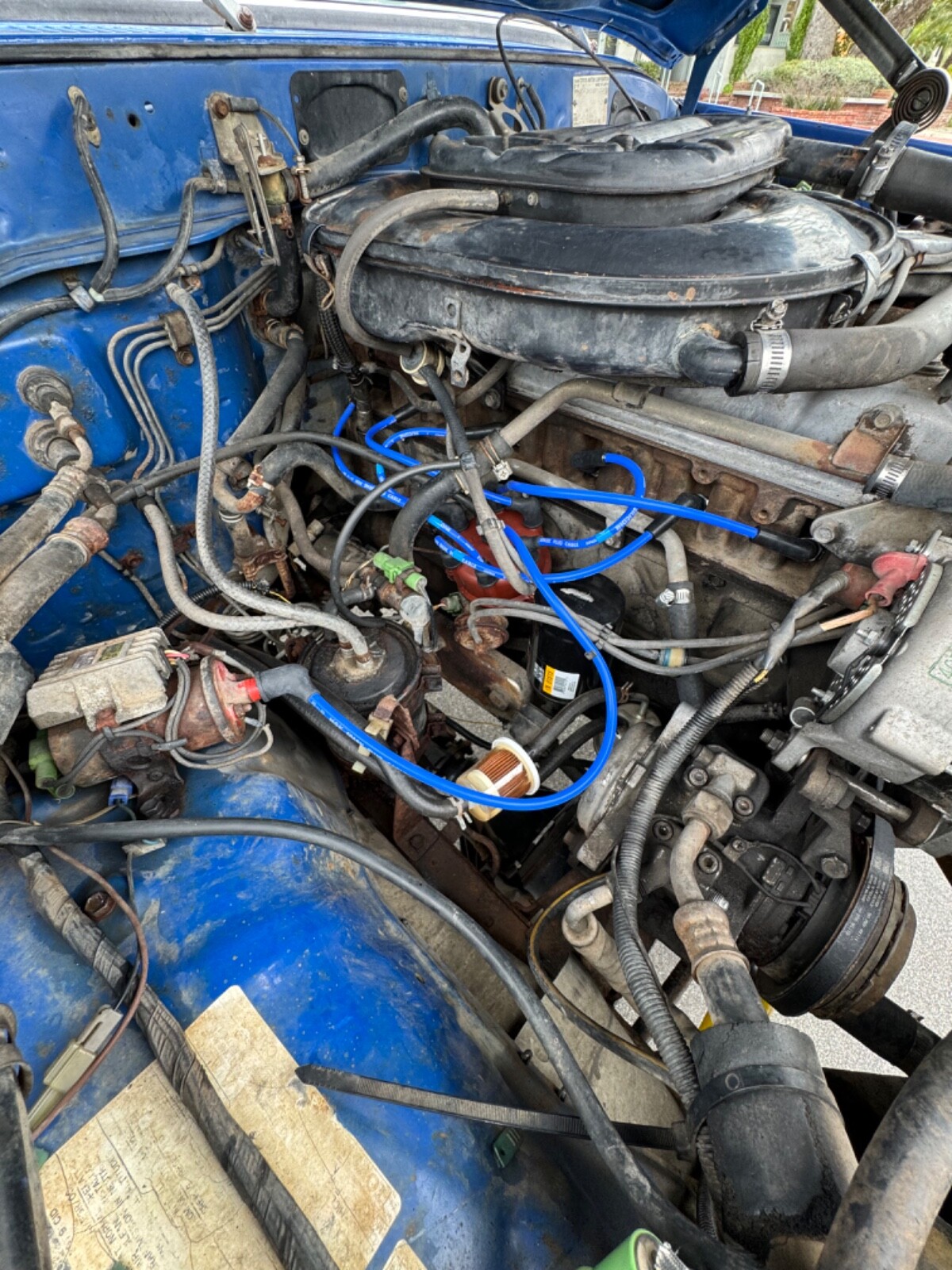 This is a daily driver. 4 speed ~ manual transmission. 4x4 engages perfectly. Brake booster, brake lines, etc. all redone in 2022.New suspension, shackles, Dobinson shocks redone in 2022.New catalytic converter, rotor, plugs, wires, air filter, battery, fuel filter, fuel lines, vacuum lines replaced new May 2024. Passed CA smog May 2024.California Registration paid until March of 2025. Clean California Certificate of Title in my name in hand.CA DMV Bill of Sale will be provided to buyer.The Air Conditioning blows air (not cold). Needs service. The power steering needs service (but works).