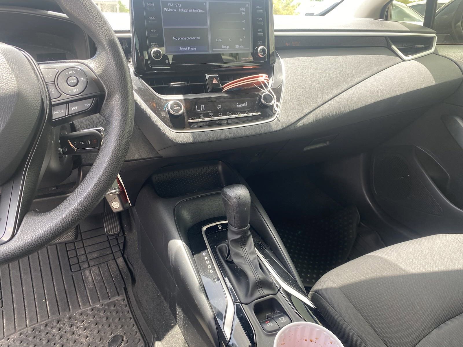 4-Wheel Disc Brakes, 6 Speakers, ABS brakes, Air Conditioning, AM/FM radio: SiriusXM, Apple CarPlay/Android Auto, Auto High-beam Headlights, Automatic temperature control, Brake assist, Bumpers: body-color, Delay-off headlights, Driver door bin, Driver vanity mirror, Dual front impact airbags, Dual front side impact airbags, Electronic Stability Control, Emergency communication system: Safety Connect with 1-year trial, Exterior Parking Camera Rear, Four wheel independent suspension, Front anti-roll bar, Front Bucket Seats, Front Center Armrest, Front reading lights, Fully automatic headlights, Illuminated entry, Knee airbag, Low tire pressure warning, Occupant sensing airbag, Outside temperature display, Overhead airbag, Panic alarm, Passenger door bin, Passenger vanity mirror, Power door mirrors, Power steering, Power windows, Premium Fabric Seat Trim, Radio data system, Radio: Audio, Rear anti-roll bar, Rear seat center armrest, Rear side impact airbag, Rear window defroster, Remote keyless entry, Security system, Speed control, Split folding rear seat, Steering wheel mounted audio controls, Tachometer, Telescoping steering wheel, Tilt steering wheel, Traction control, Trip computer, Variably intermittent wipers, Wheels: 16" Wide Vent Steel. 2022 Toyota Corolla LE FWD CVT 1.8L I4 DOHC 16V 30/38 City/Highway MPG
