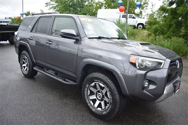 CARFAX One-Owner. Clean CARFAX. Cement 2021 Toyota 4Runner TRD Off-Road 4WD 5-Speed Automatic with Overdrive 4.0L V6 SMPI DOHC 4WD, Black/Graphite Cloth, Air Conditioning, AM/FM radio: SiriusXM, Power driver seat, Power steering, Power windows, Radio: Audio Plus, Remote keyless entry, Steering wheel mounted audio controls.