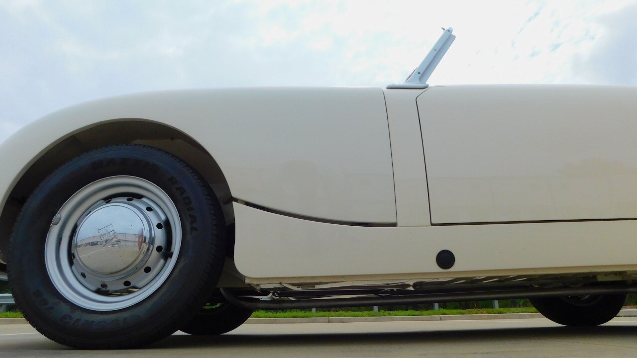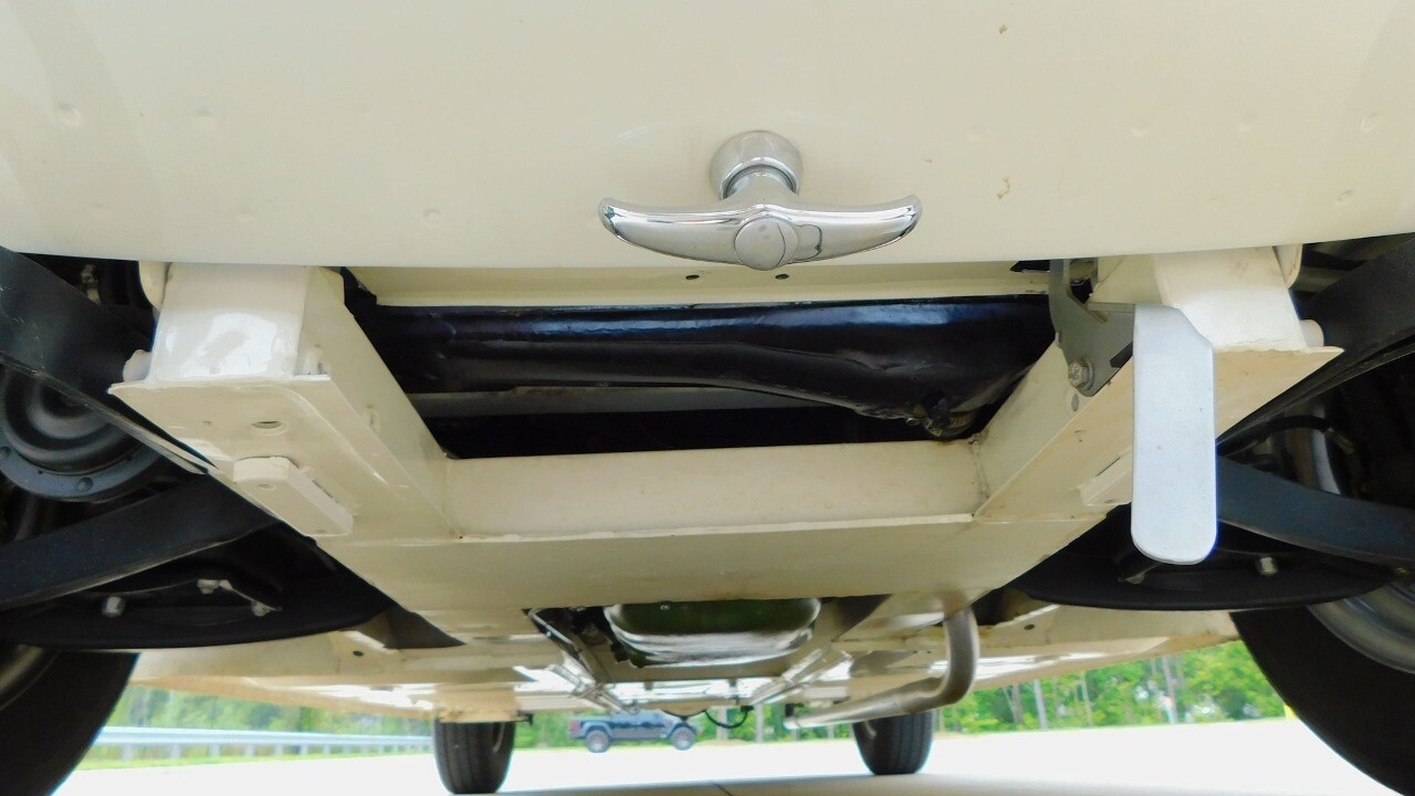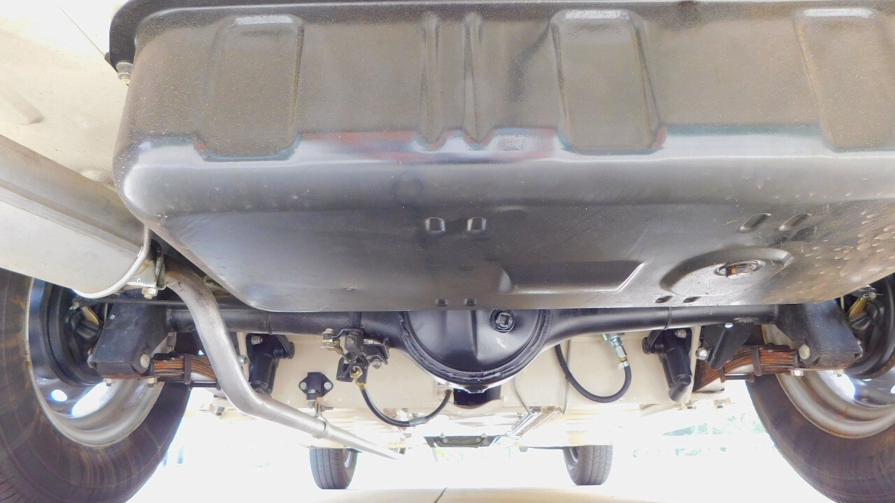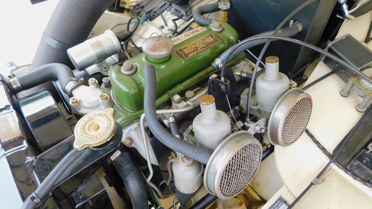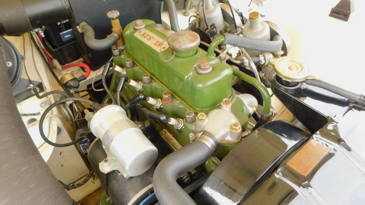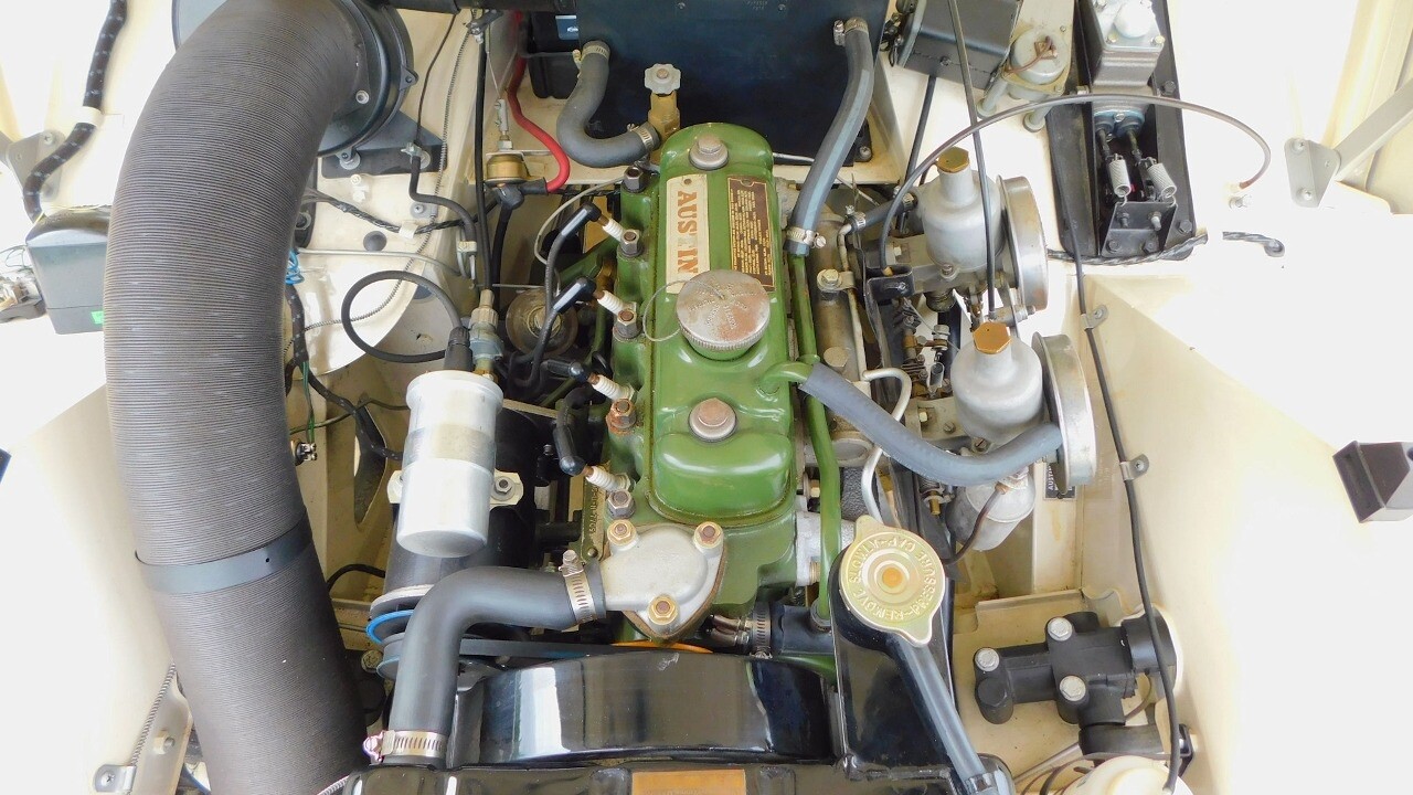 The exterior looks beautiful with its glossy white paint, chrome bumpers and a like new convertible top. It is equipped with 13inch wheels and 155 R13 tires.