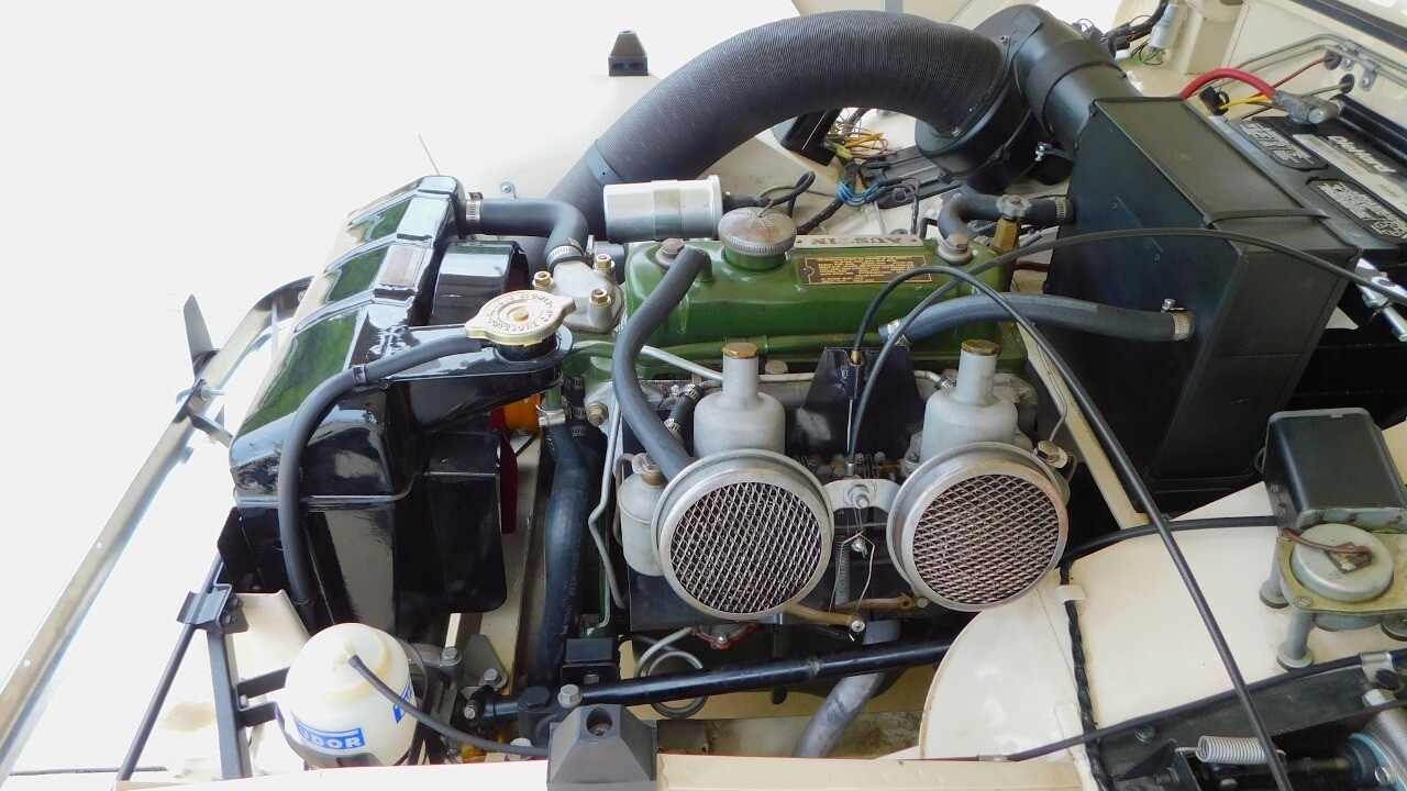 Under the hood you will find an inline 4 cylinder with dual carbs paired to a 4-speed manual transmission. It runs, drives, and sounds as it should.