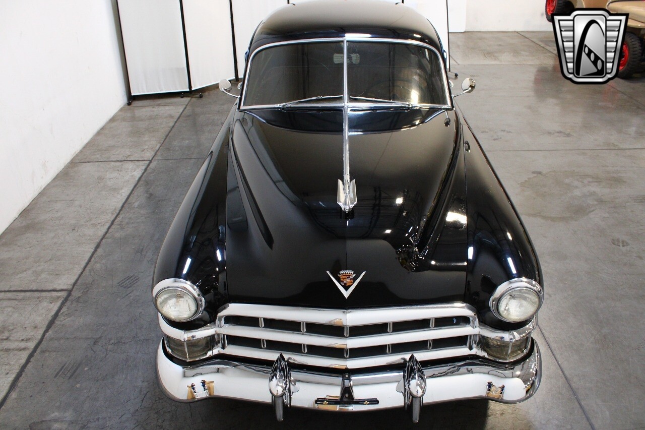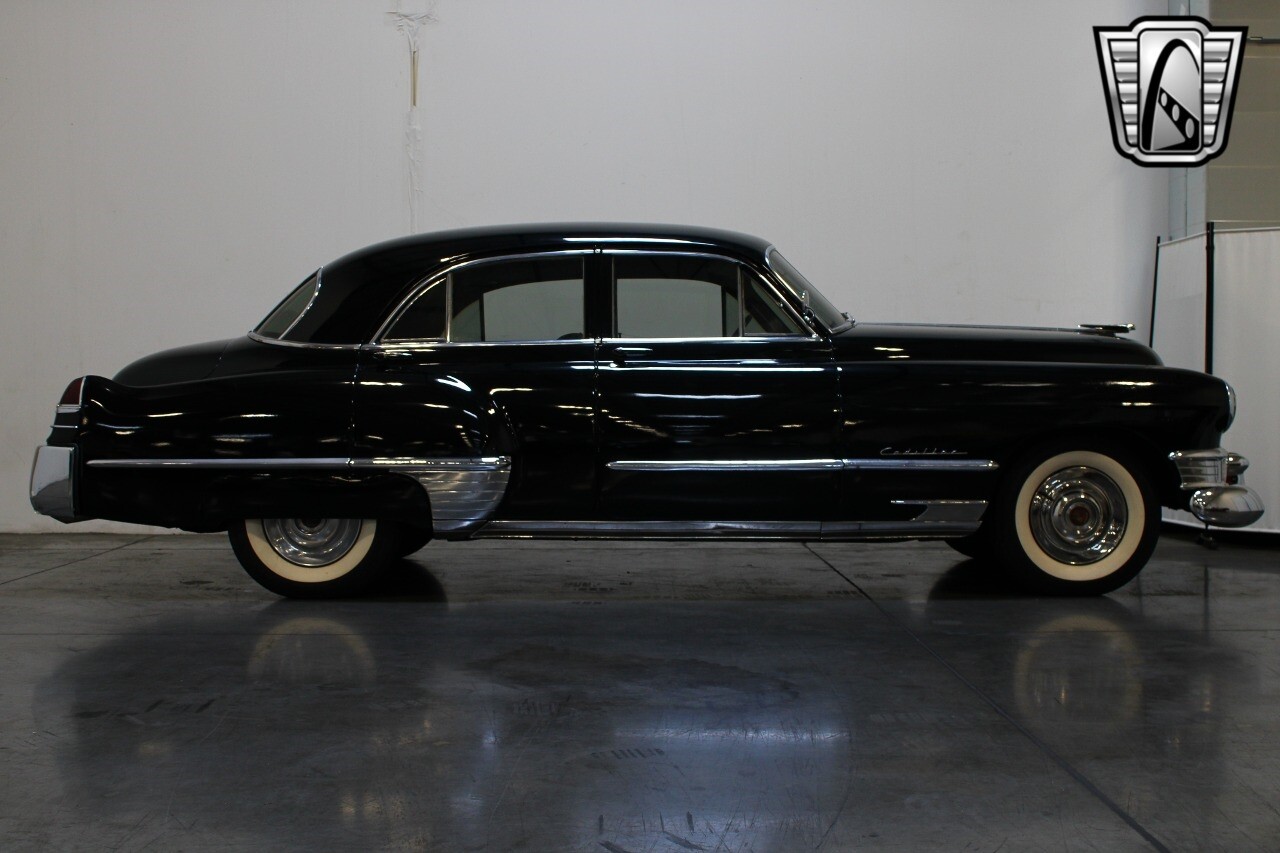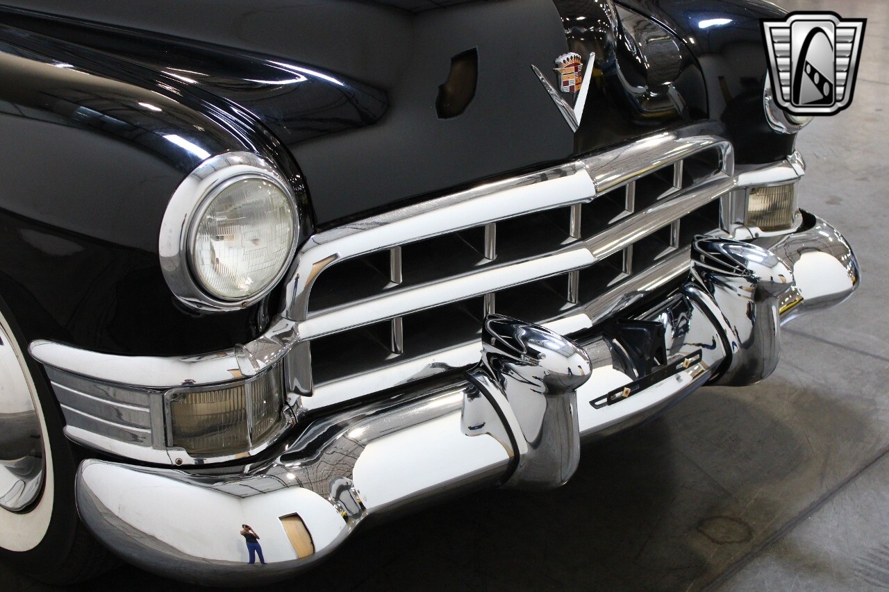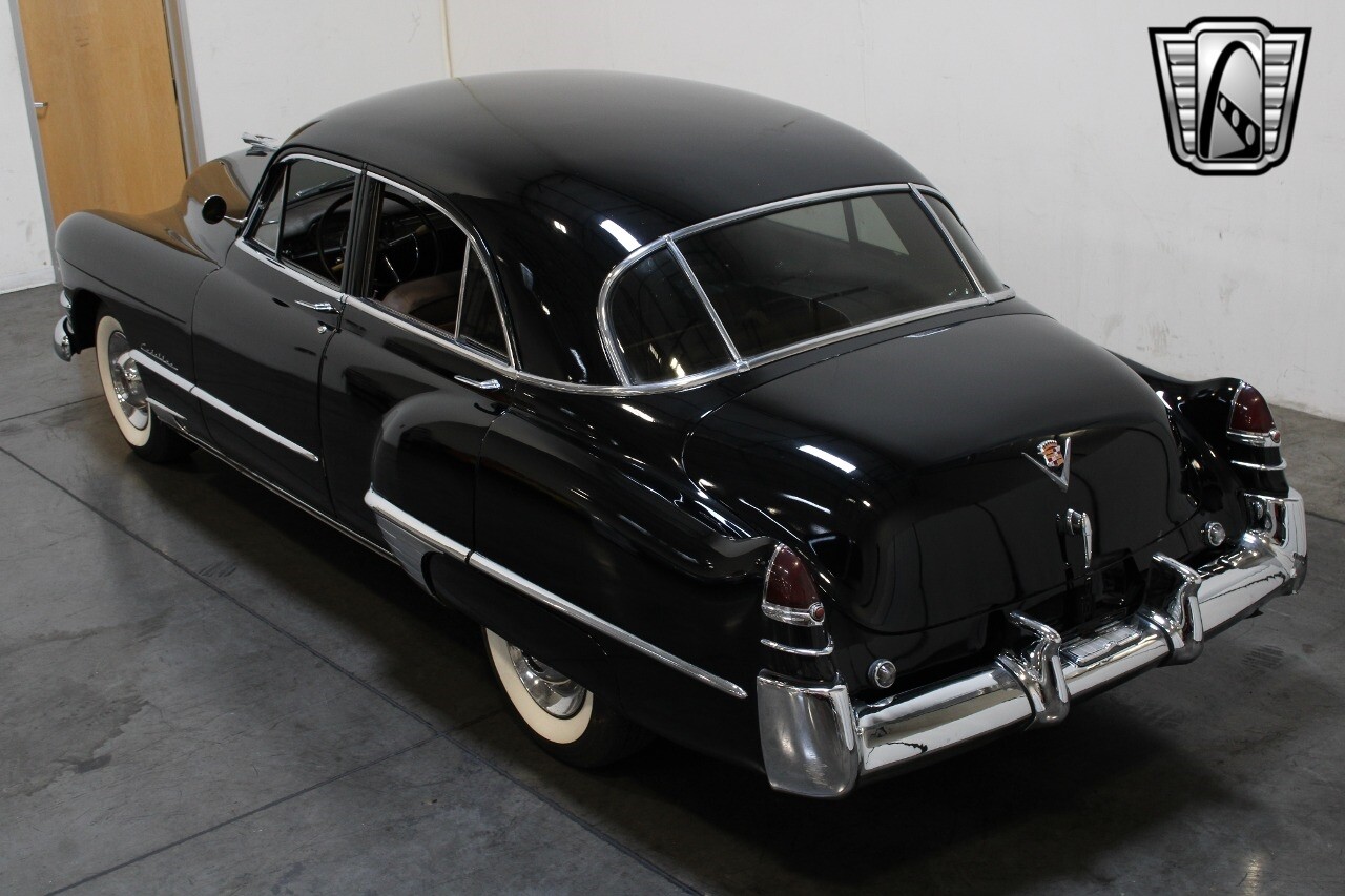 Introducing the 1949 Cadillac Series 62, a timeless classic that exudes elegance and sophistication. This remarkable vehicle boasts a striking black exterior that complements its refined design. Step inside to discover a beautifully appointed brown cloth interior, offering a warm and inviting atmosphere that harks back to an era of unparalleled craftsmanship.