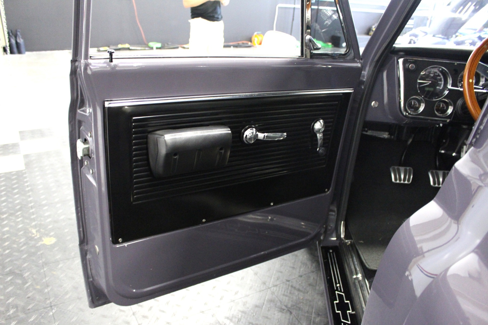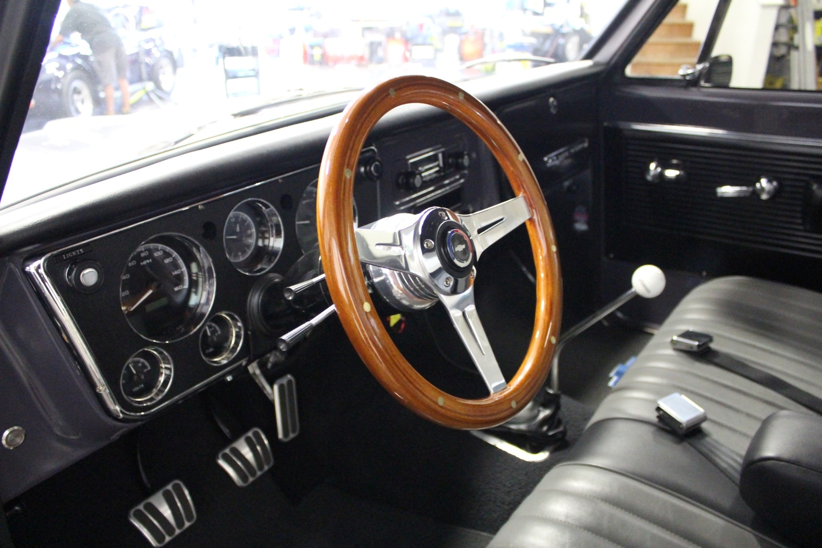 3 Spoke Aluminum Steering Wheel with Wooden Grip.