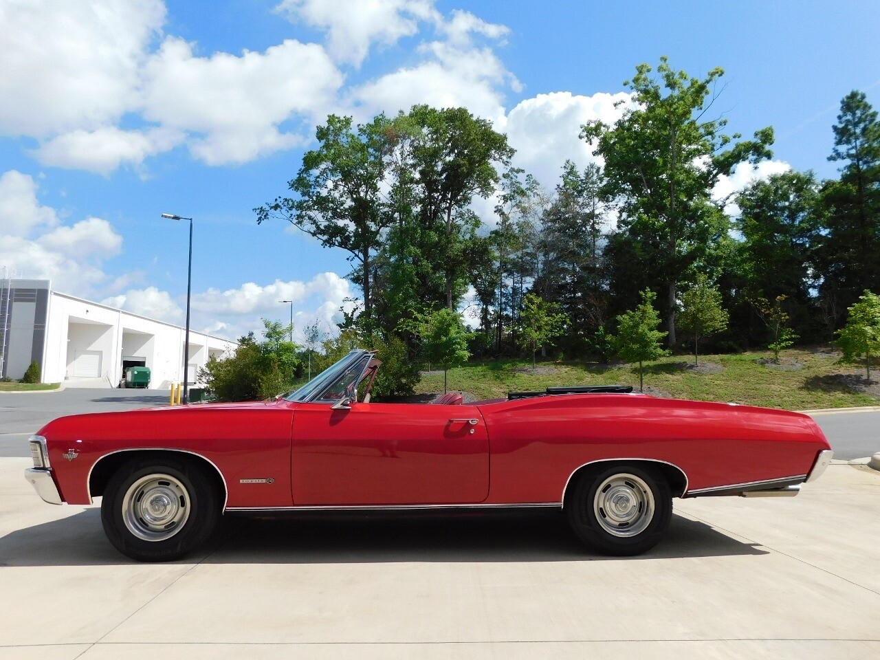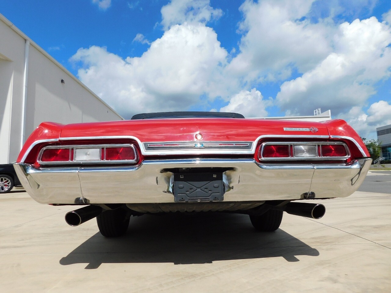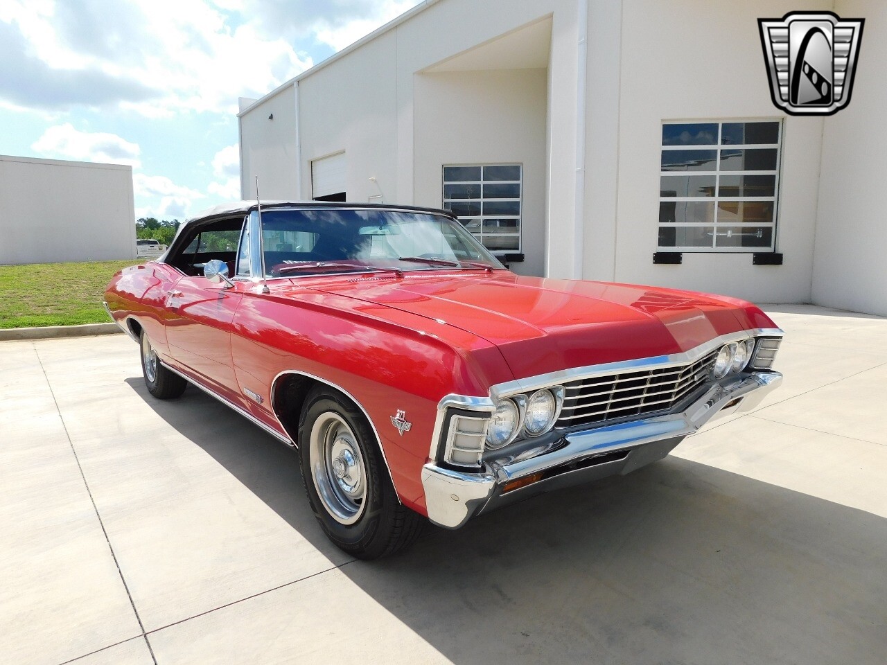 The 1967 Chevrolet Impala SS comes equipped with an AM radio, providing a touch of nostalgia and a connection to the golden age of motoring. The automatic convertible top allows you to effortlessly enjoy open-air driving, adding an extra layer of excitement to your travels. Power brakes and power steering enhance the driving experience, offering ease of handling and confidence on the road.