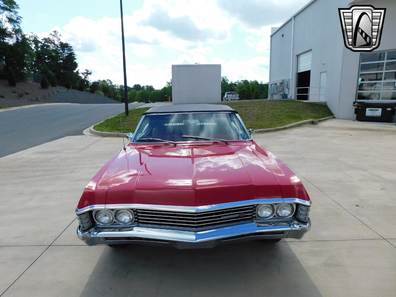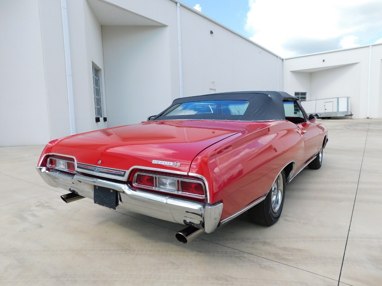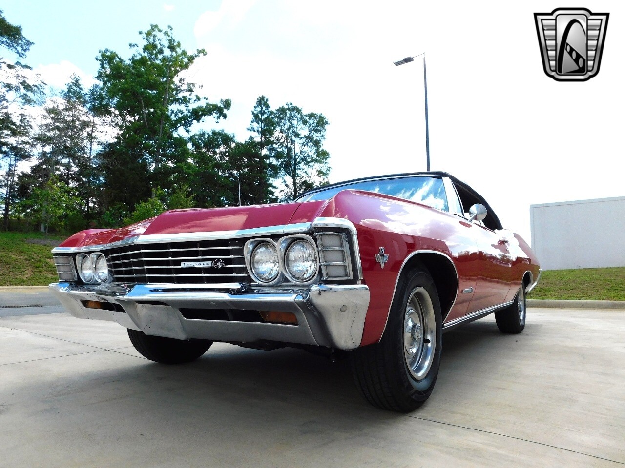 The 1967 Chevrolet Impala SS comes equipped with an AM radio, providing a touch of nostalgia and a connection to the golden age of motoring. The automatic convertible top allows you to effortlessly enjoy open-air driving, adding an extra layer of excitement to your travels. Power brakes and power steering enhance the driving experience, offering ease of handling and confidence on the road.