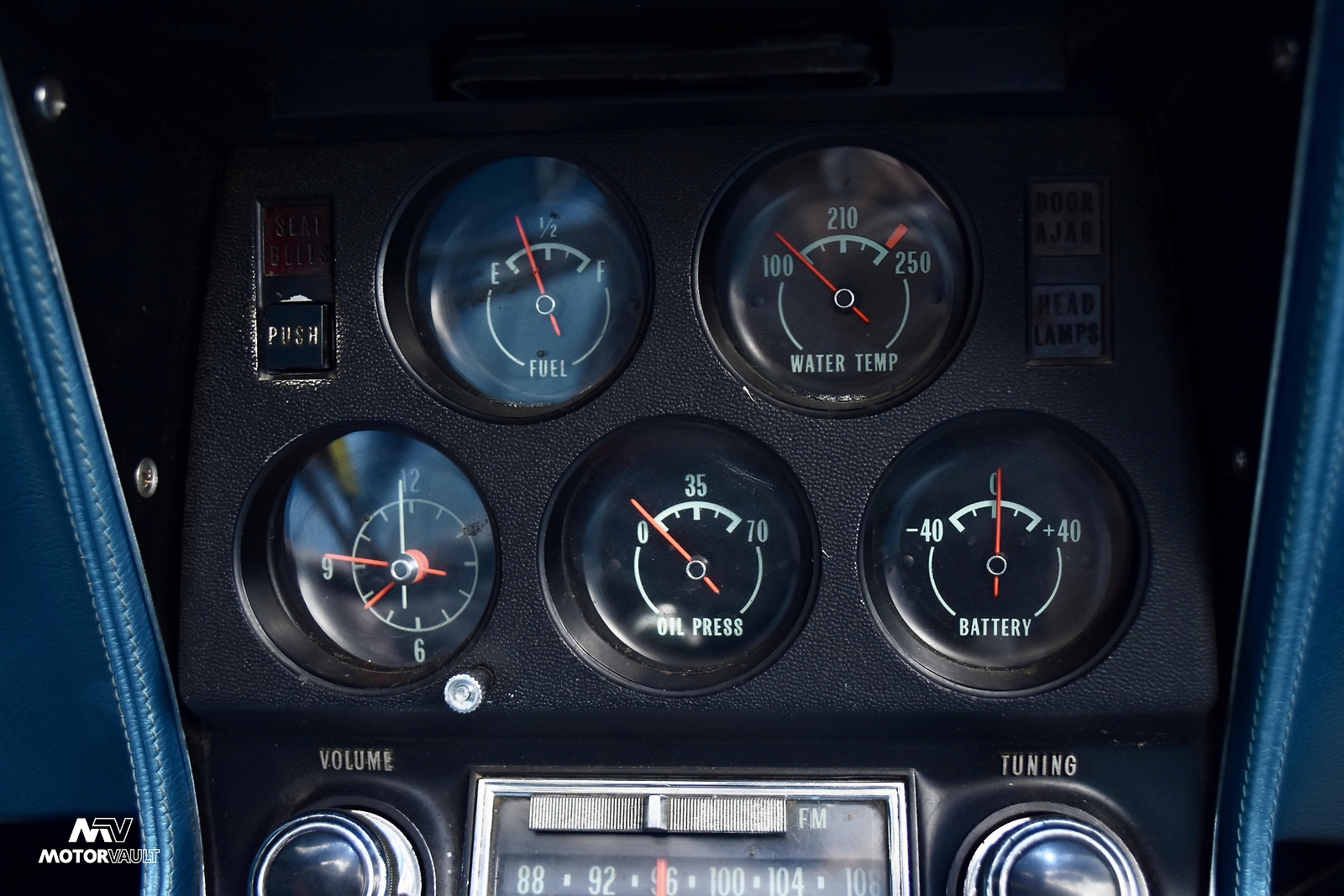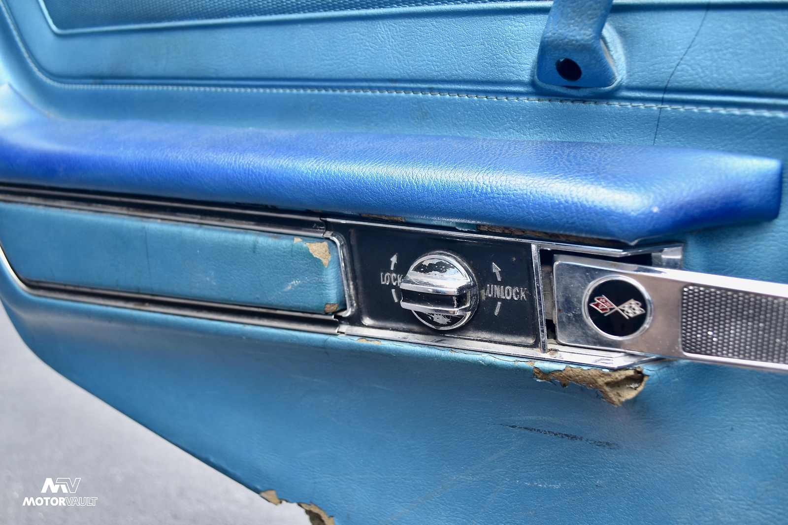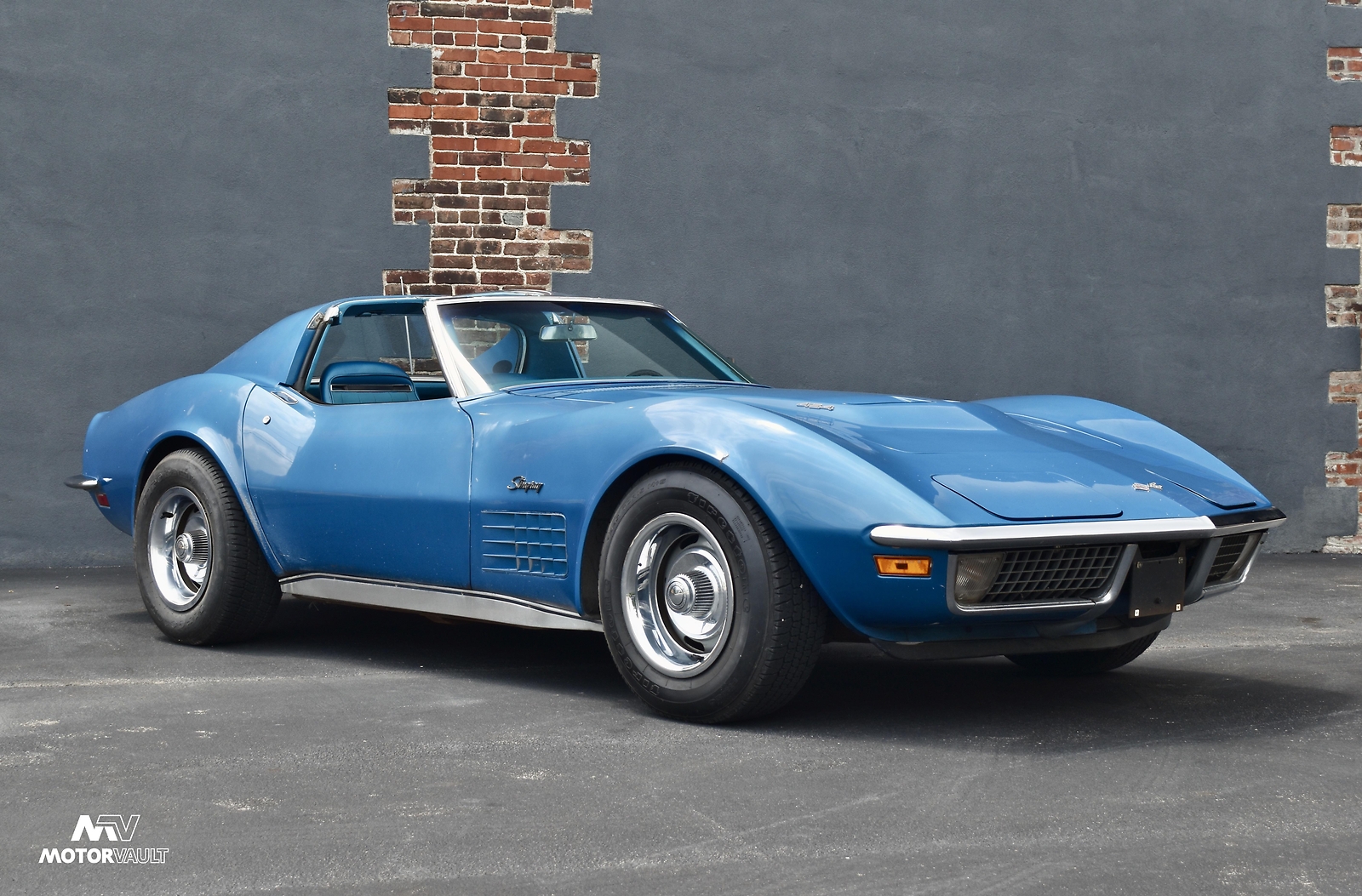 This 1970 Corvette 454 is a true survivor from the original muscle car era. Presented in the brilliant color combination of Mulsanne Blue over Bright Blue Vinyl, this Corvette is powered by its numbers matching 454 V8 and 4-Speed Muncie transmission. The Mulsanne Blue paint and blue interior are complete original. Flaws are present with both the exterior and interior, but show a very unique and pure patina to a completely correct muscle car. This car is the great candidate to keep original or restore to its former glory as it left the showroom in 1970. This ‘Vette has been an Indiana car a majority of its life as the current family has owned the car since the mid-1990s. They purchased the car from the second owner, a dentist in Noblesville, IN, who sold the car to pay for his daughters college tuition. The long term owners have trusted MOTORVAULT to represent this time capsule and help carry on the story of this American legend.