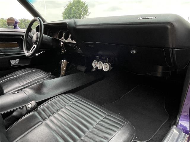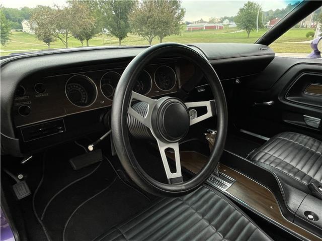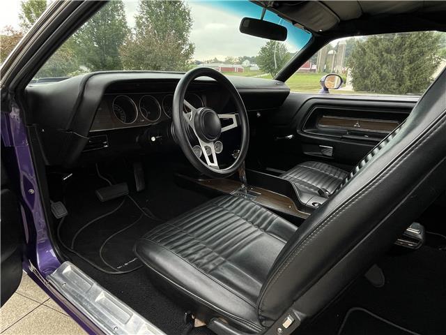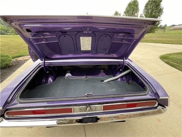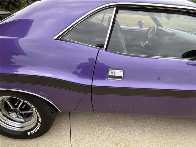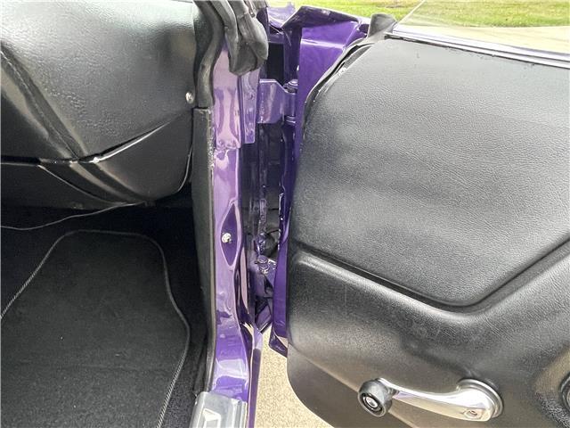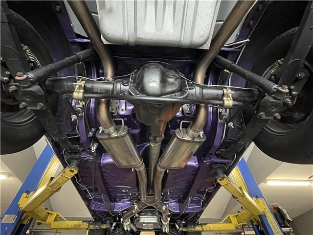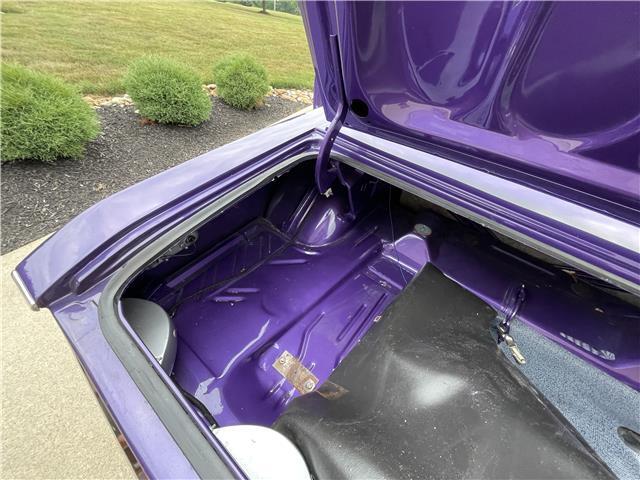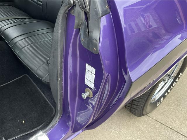 This car is better than when it was on the assembly line. The body is amazing and it appears to be all original sheet metal. Looking down both sides, it is laser straight. The factory color, Plum Crazy Purple (FC7) paint is very smooth and has a glossy finish. All of the chrome and brightwork is shiny and in excellent condition. It rides on a set of 15” Rally’s with Cooper Cobra Radial GT tires 235/60/15 in front and 275/60/15 on the rear.
