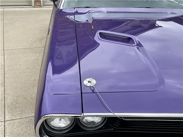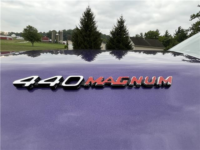 The engine compartment is nicely detailed with its date coded 1970 440 Magnum ci big block. The engine has a 1970 casting date 1-18-1970 and casting number 2536430 which is consistent with a 440 ci RB series big block V8. It has the correct dual snorkel air cleaner, finned Mopar valve covers, aluminum intake manifolds, MSD ignition, correct 4 core radiator with fan shroud, newer cadmium plated brake booster with newer dual master cylinder and power steering. The engine bay is painted the same as exterior color with a nice glossy finish.