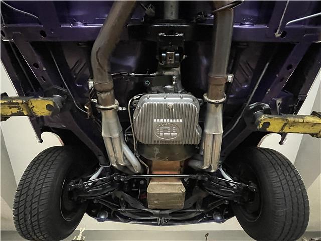 The undercarriage looks better than new! You can tell it was flipped on a rotisserie. The rust free floors, rockers, frame rails are all the same color as the body. Everywhere you look, it is new. Looking up at the engine, it is clean as well as the 727 Torqueflite 3 speed automatic transmission. It also has a new fuel tank, front disc brakes, fuel lines and brake lines. There are upgraded disc brakes on all four corners. The E-brake assembly is hooked up and working. It features a Dana 60 Sure Grip rear end.