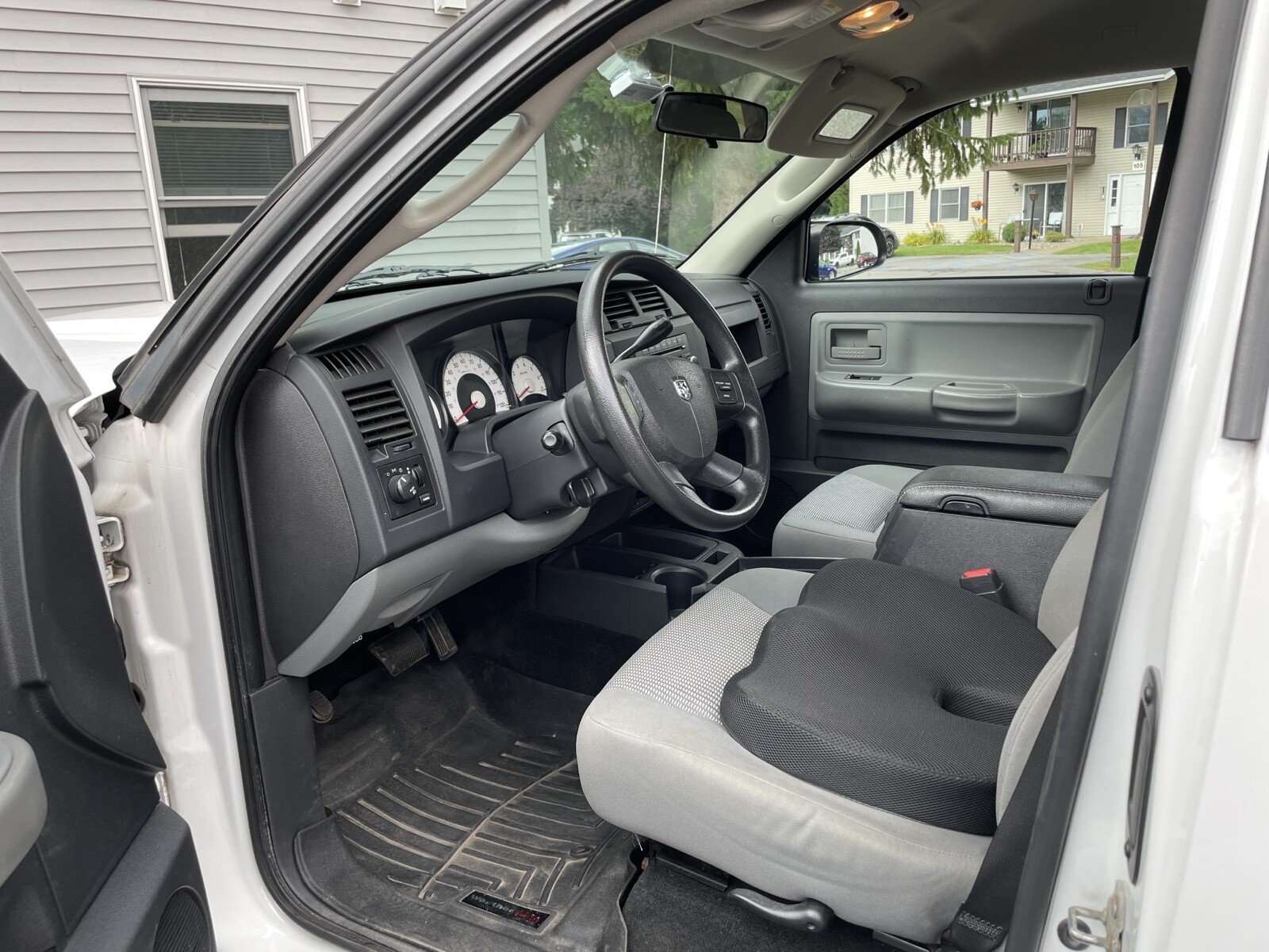 White 2011 Dodge Dakota extended cab with clean, gray interior. Has a 6 ft bed with spray liner and tonneau cover.