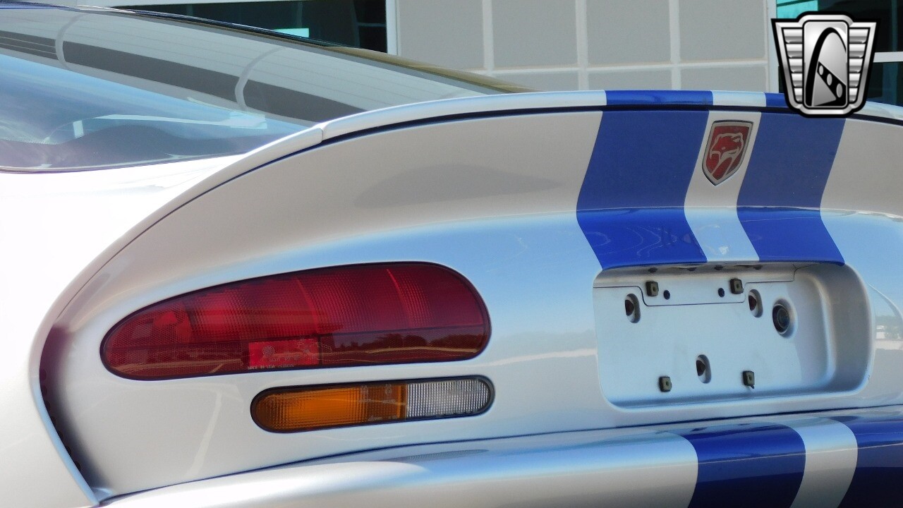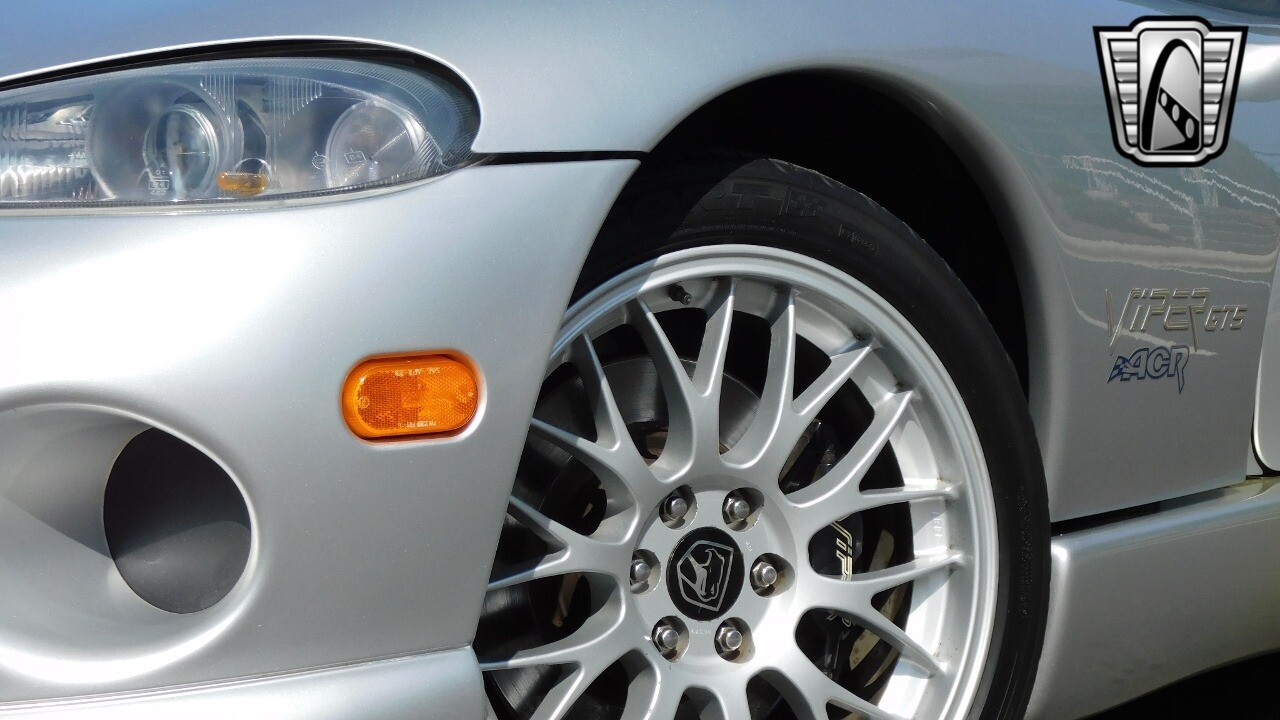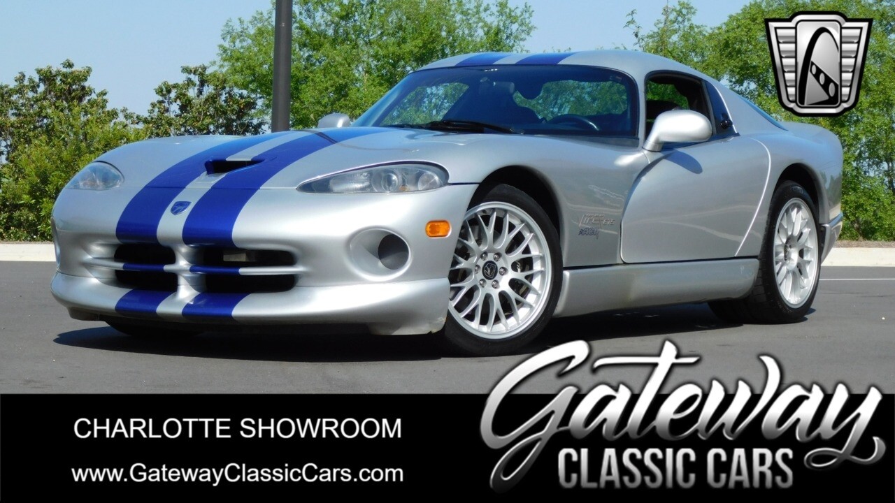 Gateway Classic Cars of Charlotte is proud to present for sale this beautiful 1999 Dodge Viper GTS ACR. The Dodge Viper was the ultimate American car in the 90s. With it's V10 engine and voluptuous styling the Viper put many European exotics to shame. Performance was also groundbreaking for the era and beginning in 1999 the ACR debuted as the choice for the race enthusiast. Featuring revised intake, stripped down options and adjustable suspension the ACR was a true driver's car. This example is finished in platinum with blue stripes sitting on multi spoke 18 inch alloy wheels. The interior is like a cockpit with all the necessary gauges, supportive leather bucket seats and 5 point race harnesses. Under the hood is the 8.0 Liter V10 and is factory rated at 460hp and 500 lb ft of torque! Get ready to shift through the 6 speed manual and imagine how this snake can get up and go! If you're looking for the baddest, raddest ride of the 90s with some extra punch to keep up with modern supercars, this is the one for you! Options include Air Conditioning, AM/FM/CD stereo, leather interior, power brakes, power locks, power steering, seat belts, tilt wheel and alloy wheels wrapped in radial tires..