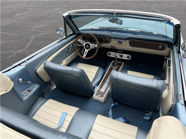 1965 Ford Mustang convertible factory V8. Comes fully loaded with every power option available equipped with upgraded vintage Air conditioning and new style ac compressor, new dryer, condenser and under dash unit, Power disc brakes and power steering upgraded by Borgesson power steering system. Silver Poly Blue with a blue and white Pony deluxe interior. Equipped with a new 302 c.i roller cam engine as well as a rebuilt C4 automatic transmission. 16 inch Spal electric fan which automatically turns on when the car reaches 185 degress.The car was just painted in a base coat clear coat system. The Mustang was completely disassembled. All new chrome inside and out was installed after the paint job. All new glass. All new front suspension and rear shocks new front end suspension upgraded for a better ride. New fuel tank and GT exhaust system. Michelin tires and new 17 inch legendary wheels. The floors and undercarriage were sandblasted and professionally repainted. One of the nicest under carriages you will find on a classic mustang. All new rubbers. The convertible top was also completely redone. powder coated frame. New power top motor. New hydraulic lines as well as new power top cylinders new well liner, convertible top pad, new interior. Including new carpet, seat tracks, seat foam, door panels and handles, sun visors, seat belts, and carpet as well as a nice center console for comfort. New rubber and seals were replaced. The mustang has upgraded 4 wheel power disk brakes. As well as a Willwood style power brake booster and master cylinder. If you are looking for an excellent running and driving car that has been nicely maintained and restored with all the