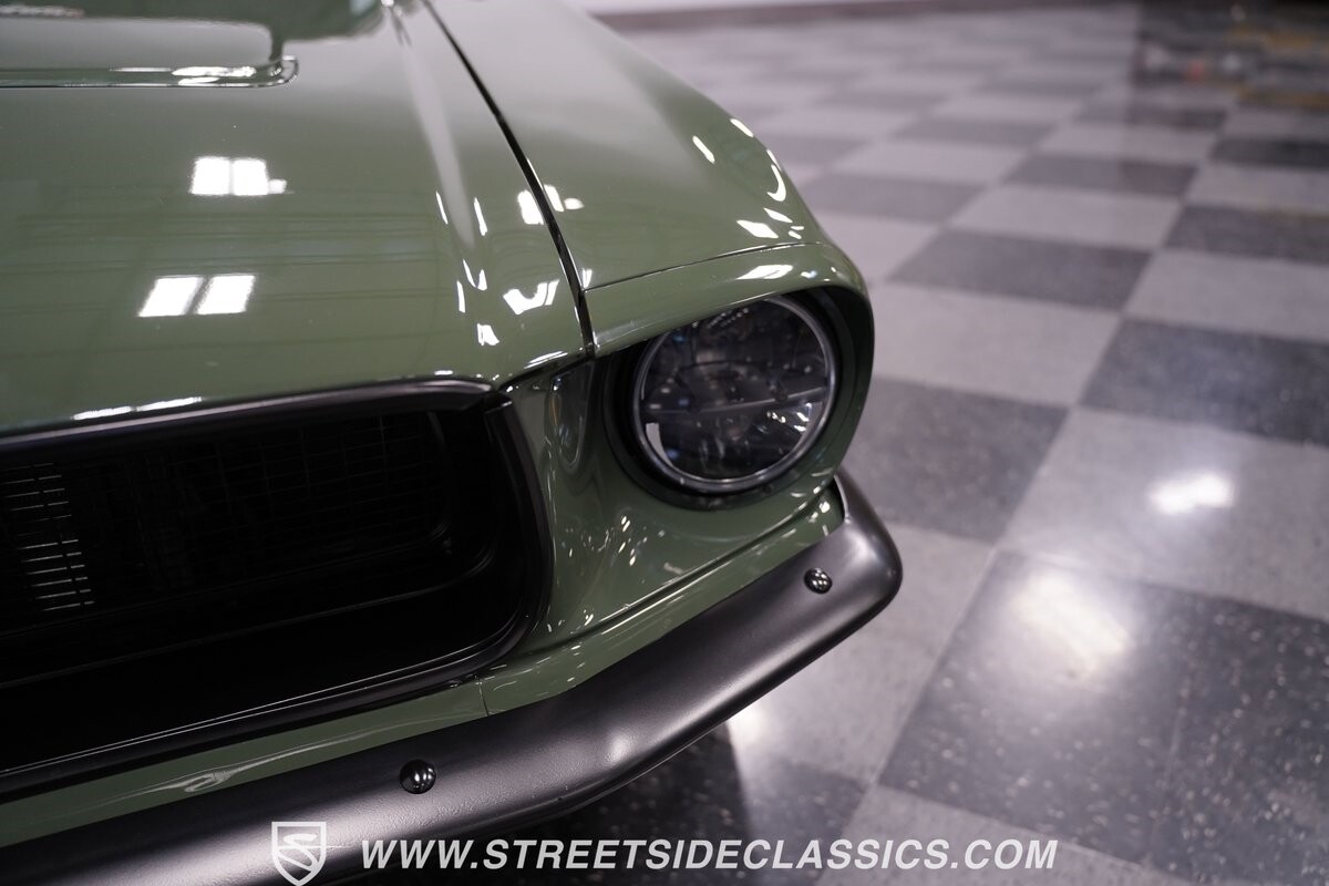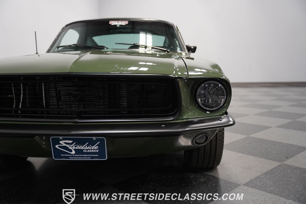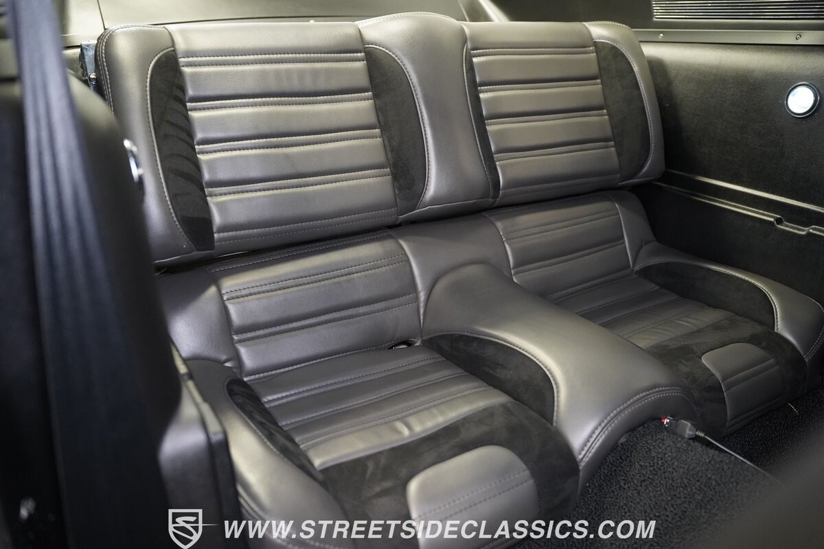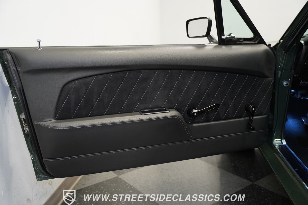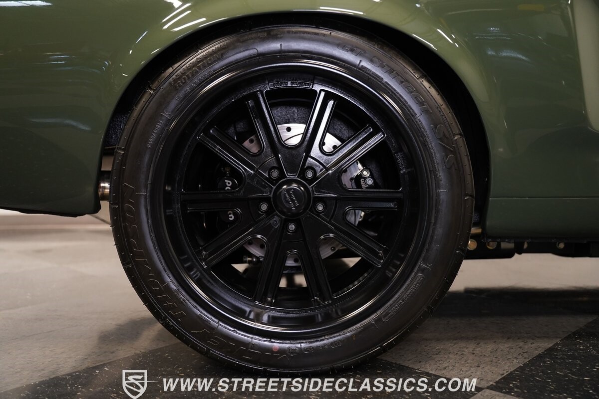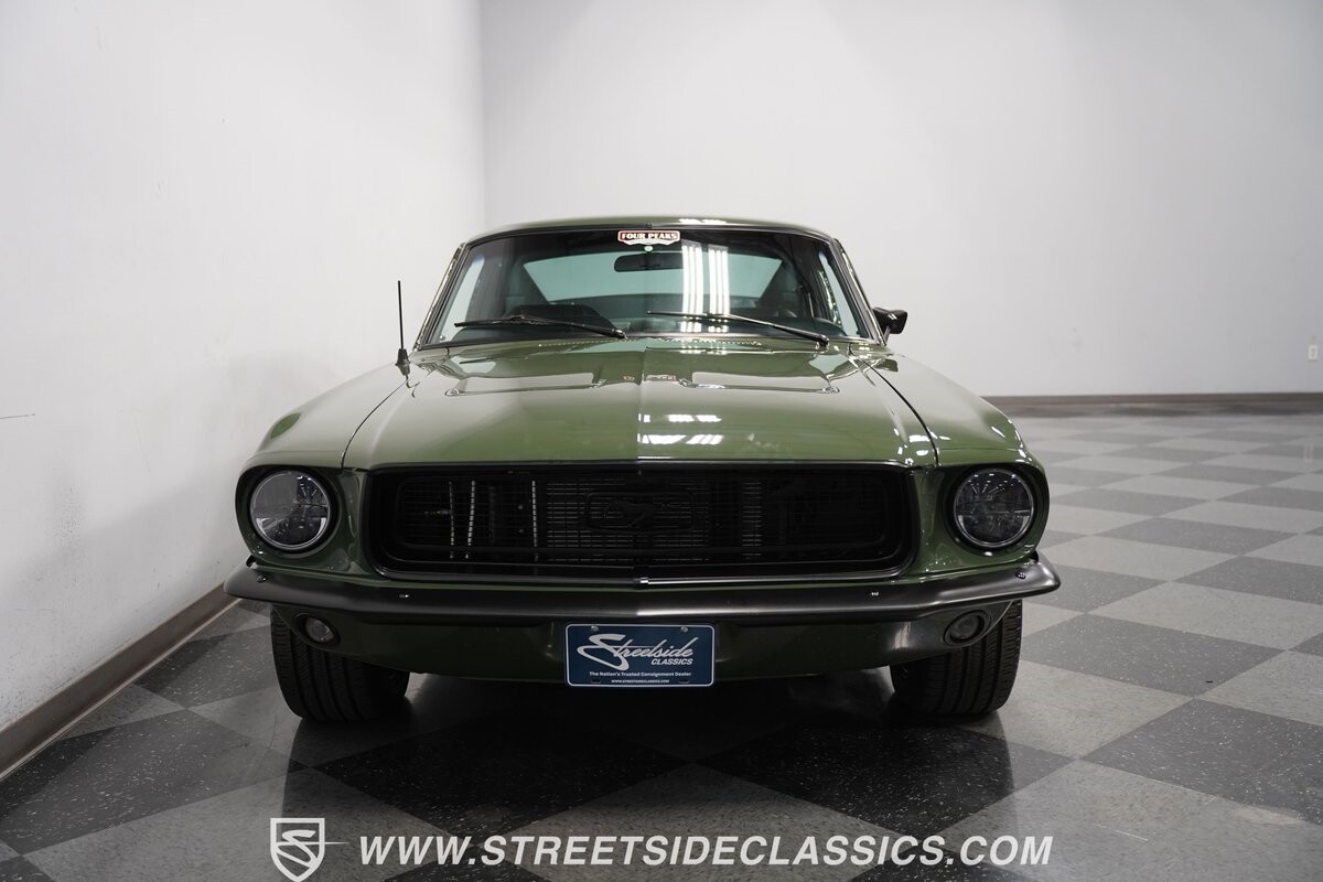 Wrapped in a coat of Army Green that whispers of covert operations and stealth maneuvers, this 1968 Ford Mustang Fastback Restomod is no ordinary beast on the road. Its transformation into a restomod masterpiece is marked by a comprehensive repaint, enhancing its aggressive stance. Staggered American Racing wheels, 17" at the front and 18" at the rear, clad in 245/45R17 and 305/35/ZR18 tires, respectively, hint at the power and poise contained within. Blacked-out chrome trim and a bespoke Mustang logo gas cap add to its mystique, while custom fog lights lurking beneath the bumper ready this Mustang for any mission, day or night.