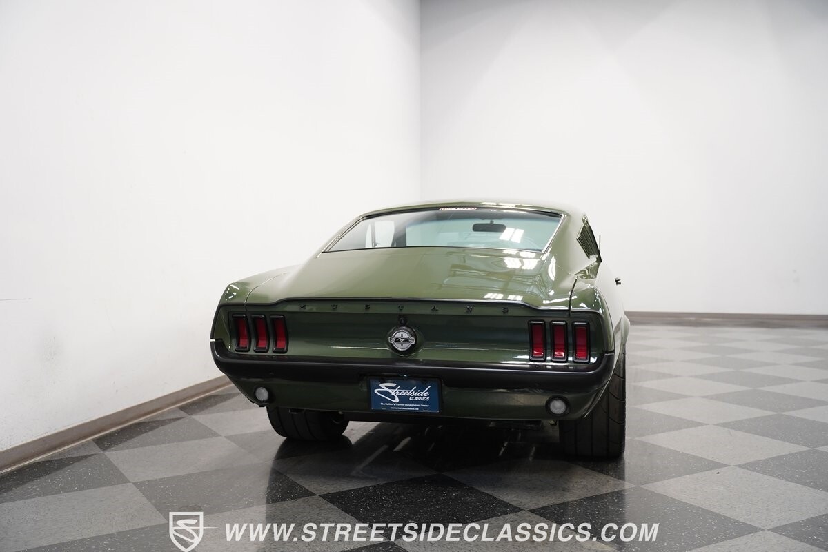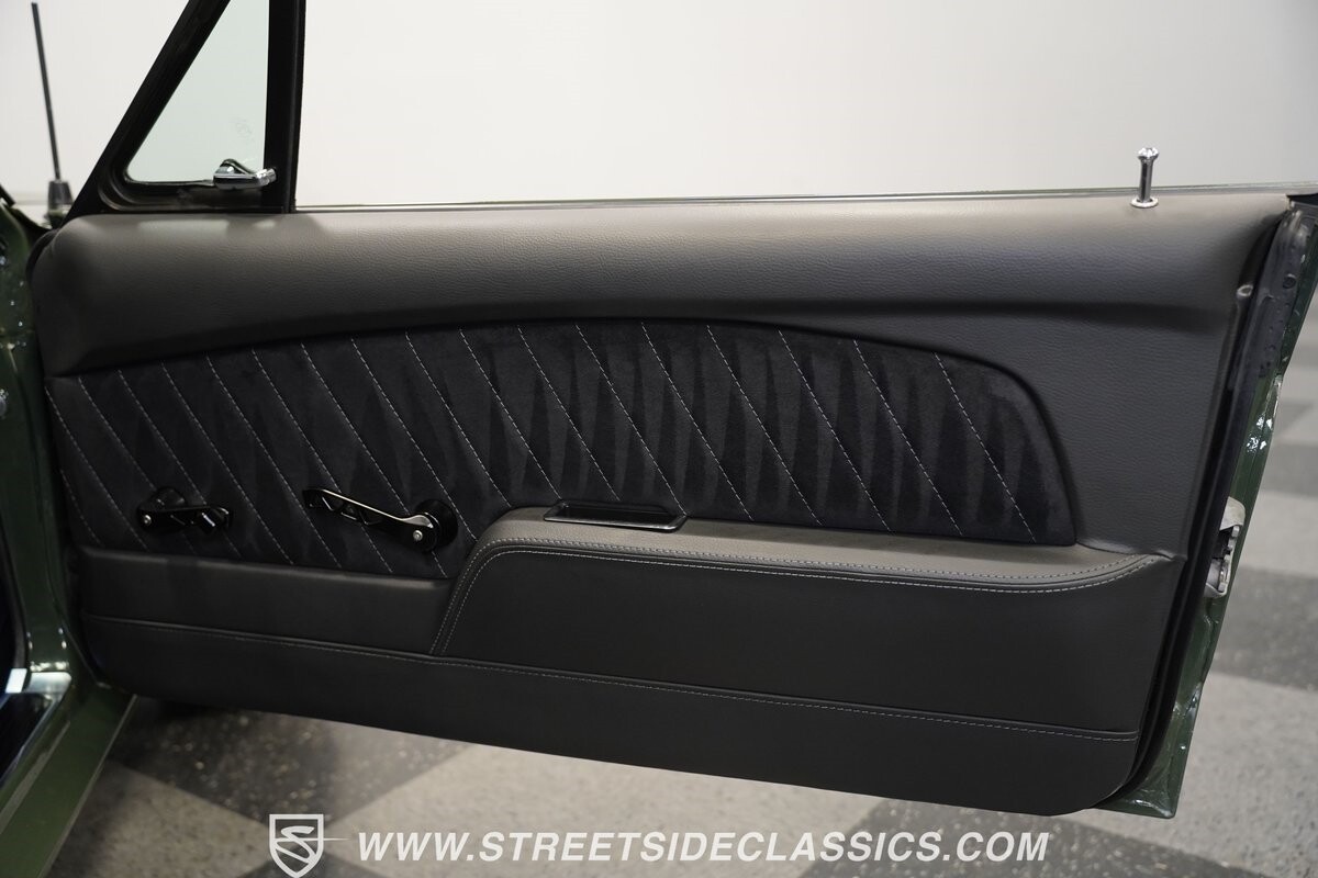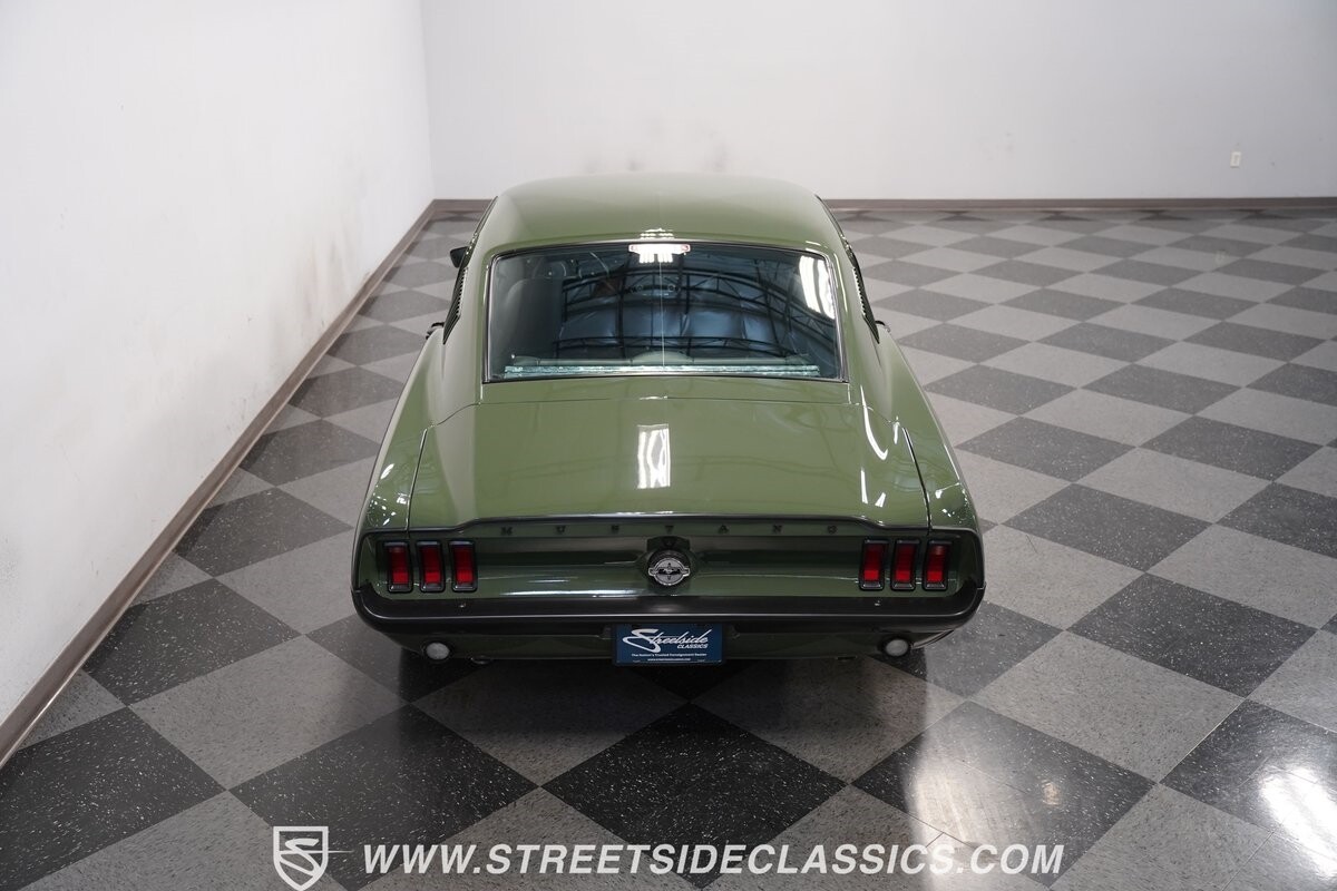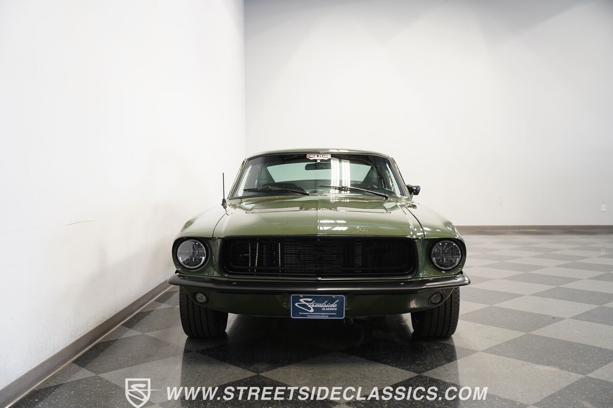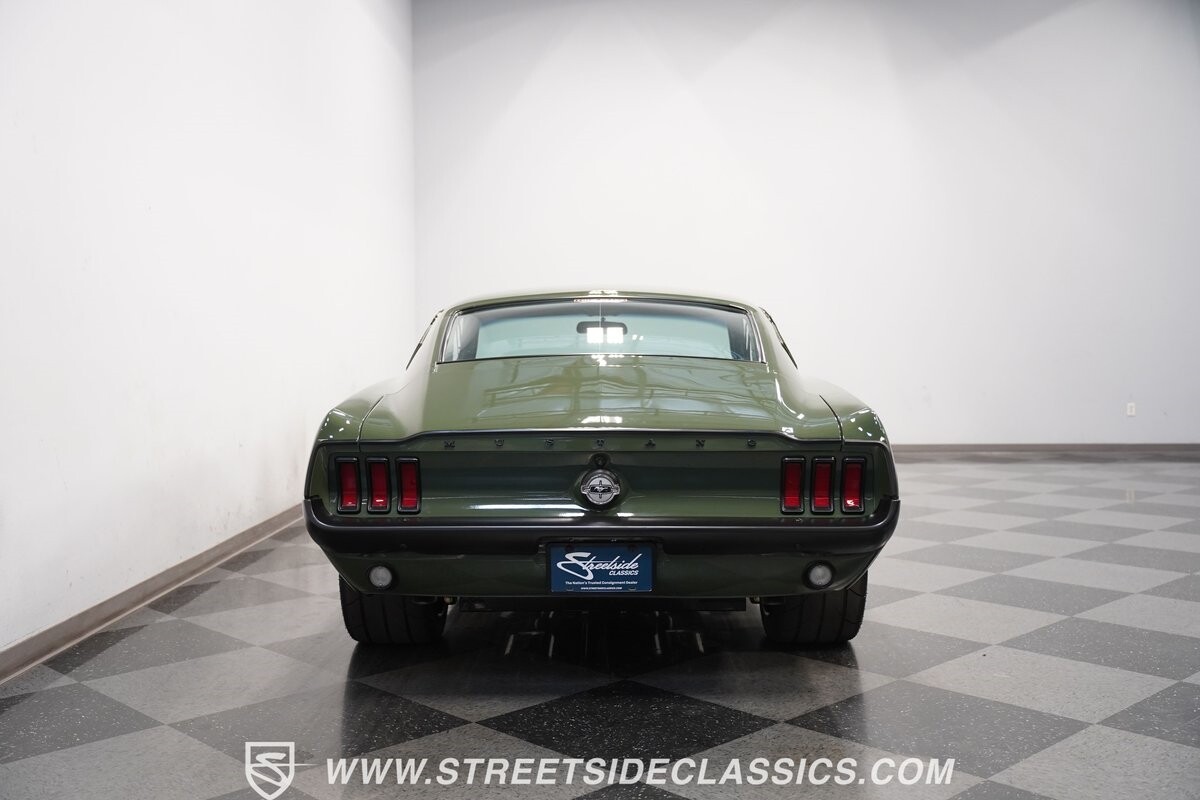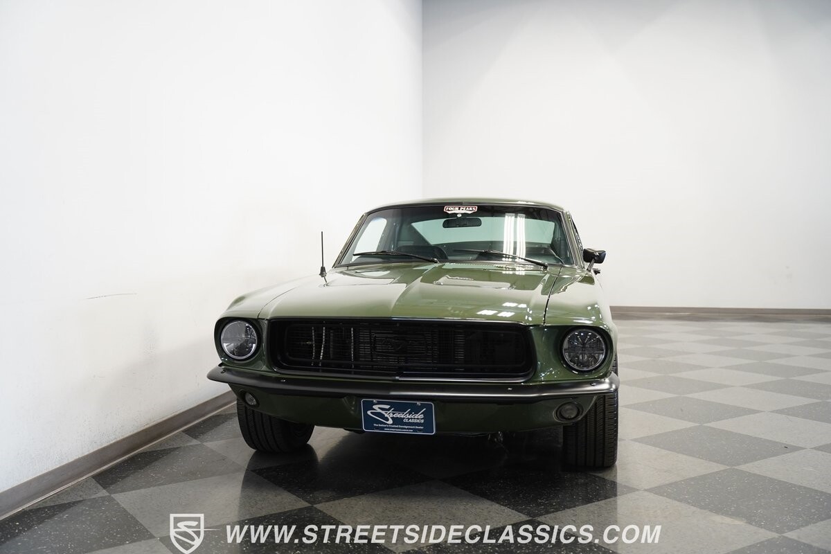 Wrapped in a coat of Army Green that whispers of covert operations and stealth maneuvers, this 1968 Ford Mustang Fastback Restomod is no ordinary beast on the road. Its transformation into a restomod masterpiece is marked by a comprehensive repaint, enhancing its aggressive stance. Staggered American Racing wheels, 17" at the front and 18" at the rear, clad in 245/45R17 and 305/35/ZR18 tires, respectively, hint at the power and poise contained within. Blacked-out chrome trim and a bespoke Mustang logo gas cap add to its mystique, while custom fog lights lurking beneath the bumper ready this Mustang for any mission, day or night.