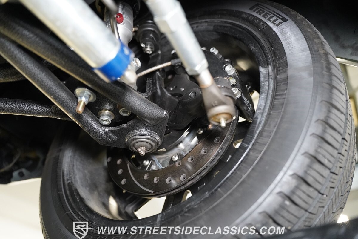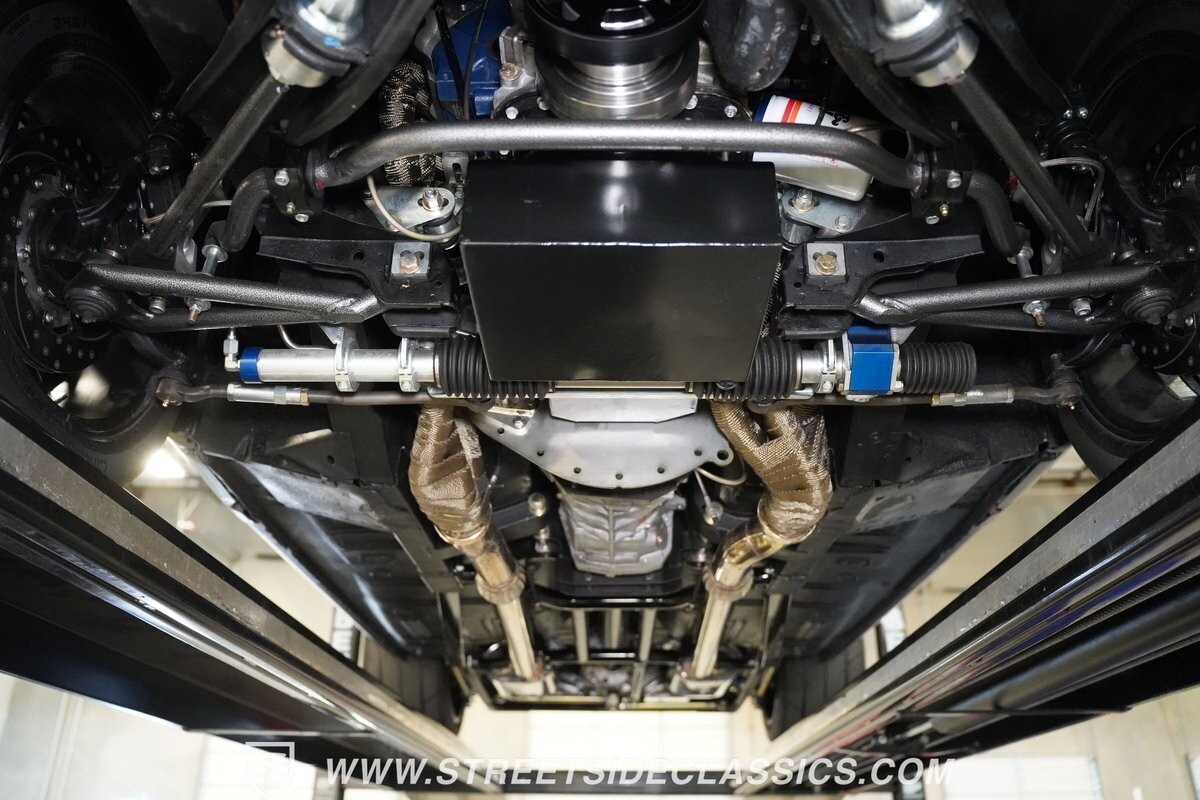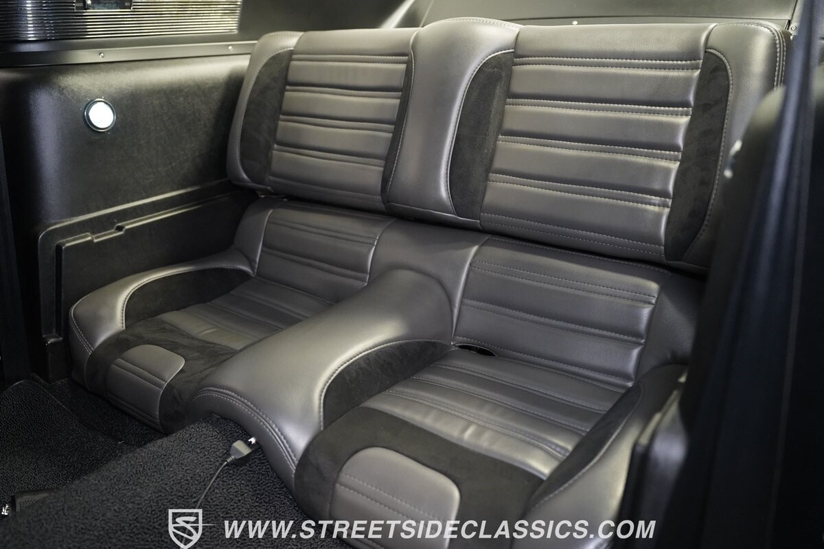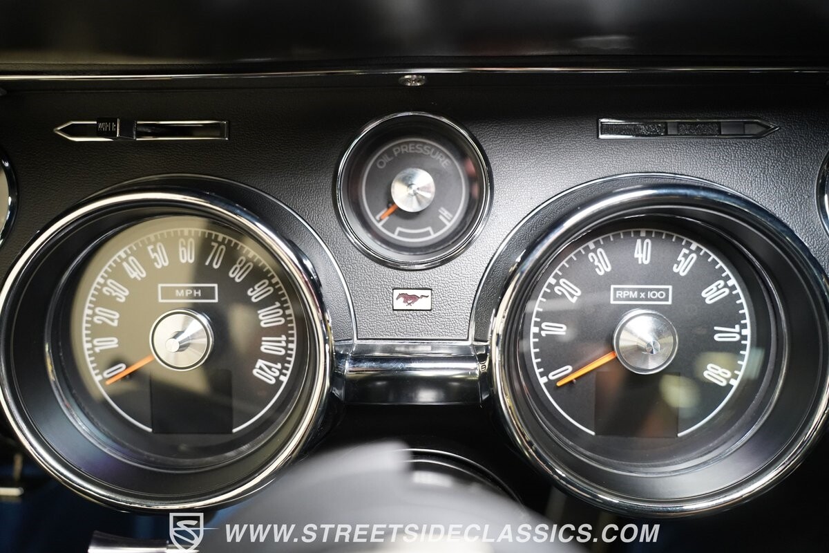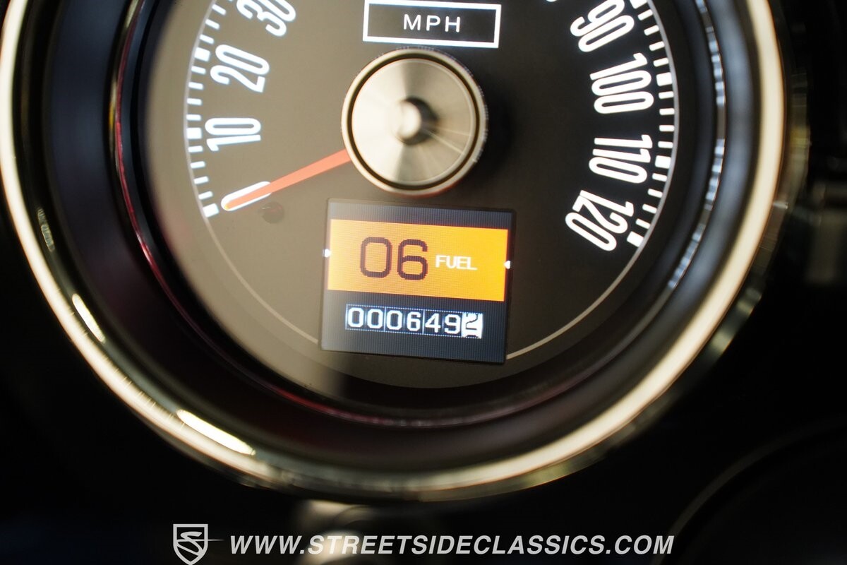 Inside, this Mustang offers a black interior elevated by TMI seats and door panels, seamlessly integrated with Dakota Digital gauges. The microsuede headliner and custom overhead console with map lights inject a touch of modern luxury into the vintage thrill. A Willwood electronic parking brake and an S1 Sequential shifter are poised for action, complemented by a retro-style AM/FM/AUX stereo that sets the soundtrack for your adventures, all underscored by the dash's impeccable condition.