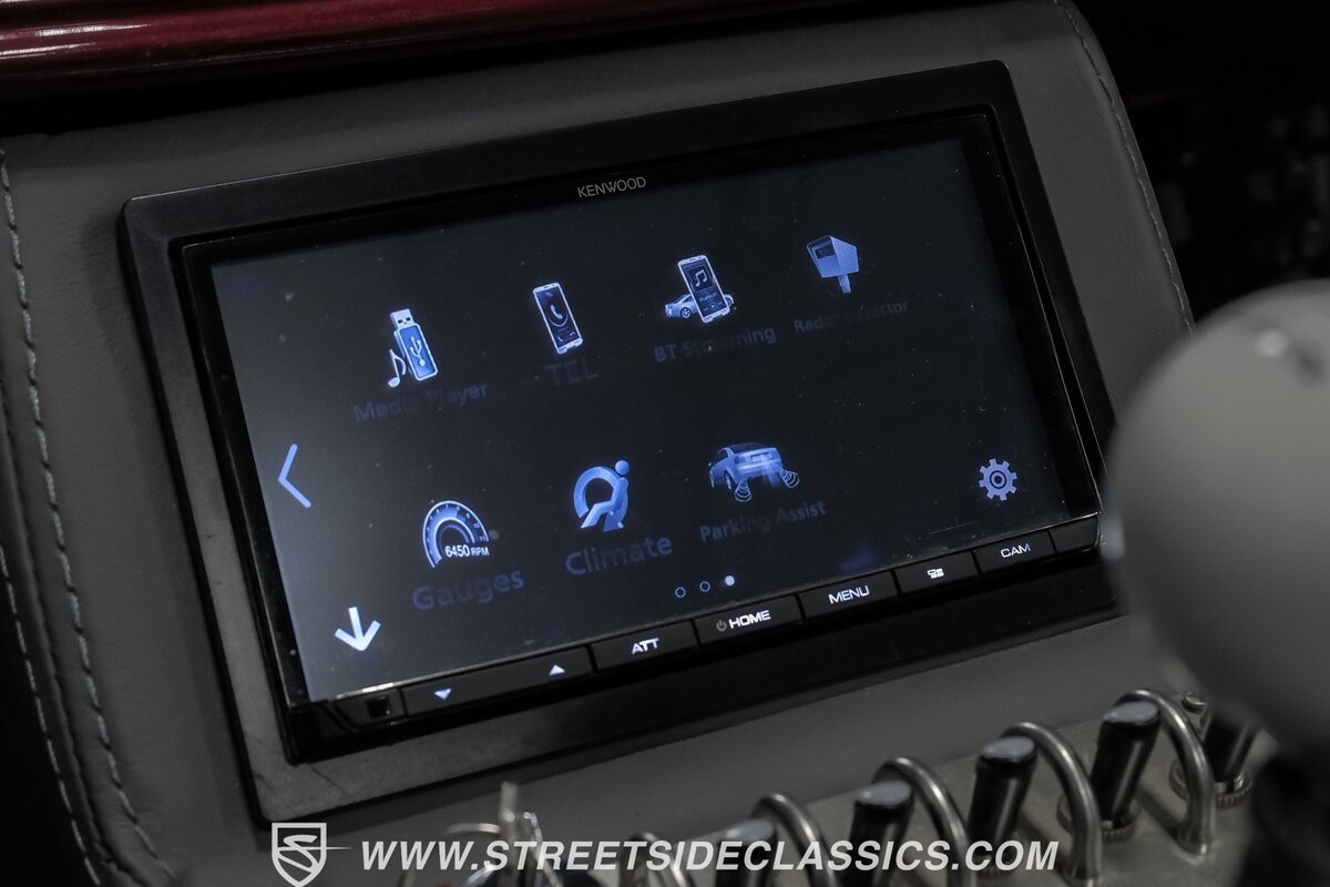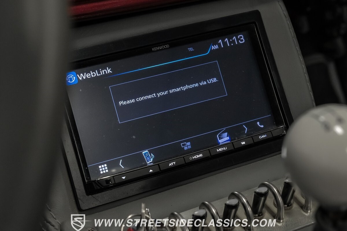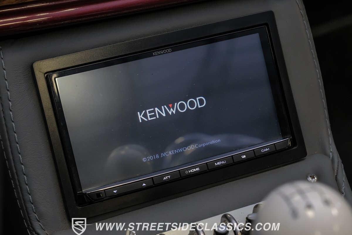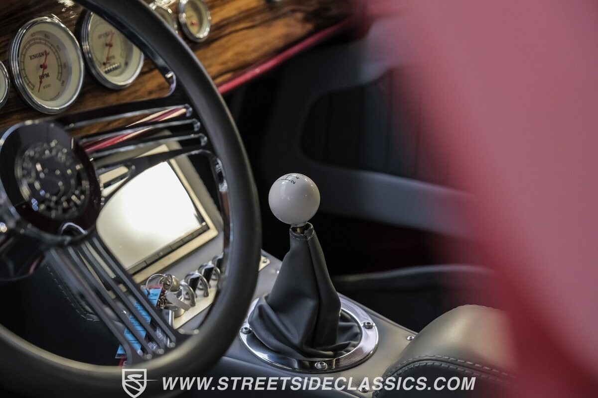 Inside, the gray Mercedes-Benz leather interior whispers luxury and bespoke craftsmanship. The custom-built woodgrain dash, adorned with classic-style gauges from Classic Instruments, and a custom center console effortlessly bridge modernity and classic charm. The tilt column, FFR custom steering wheel, electric power steering, and a backup camera provide effortless control and modern convenience. Bucket seats promise a snug embrace, while a double-din Kenwood stereo ensures the soundtrack to your drives will be as refined as the upholstery surrounding you.