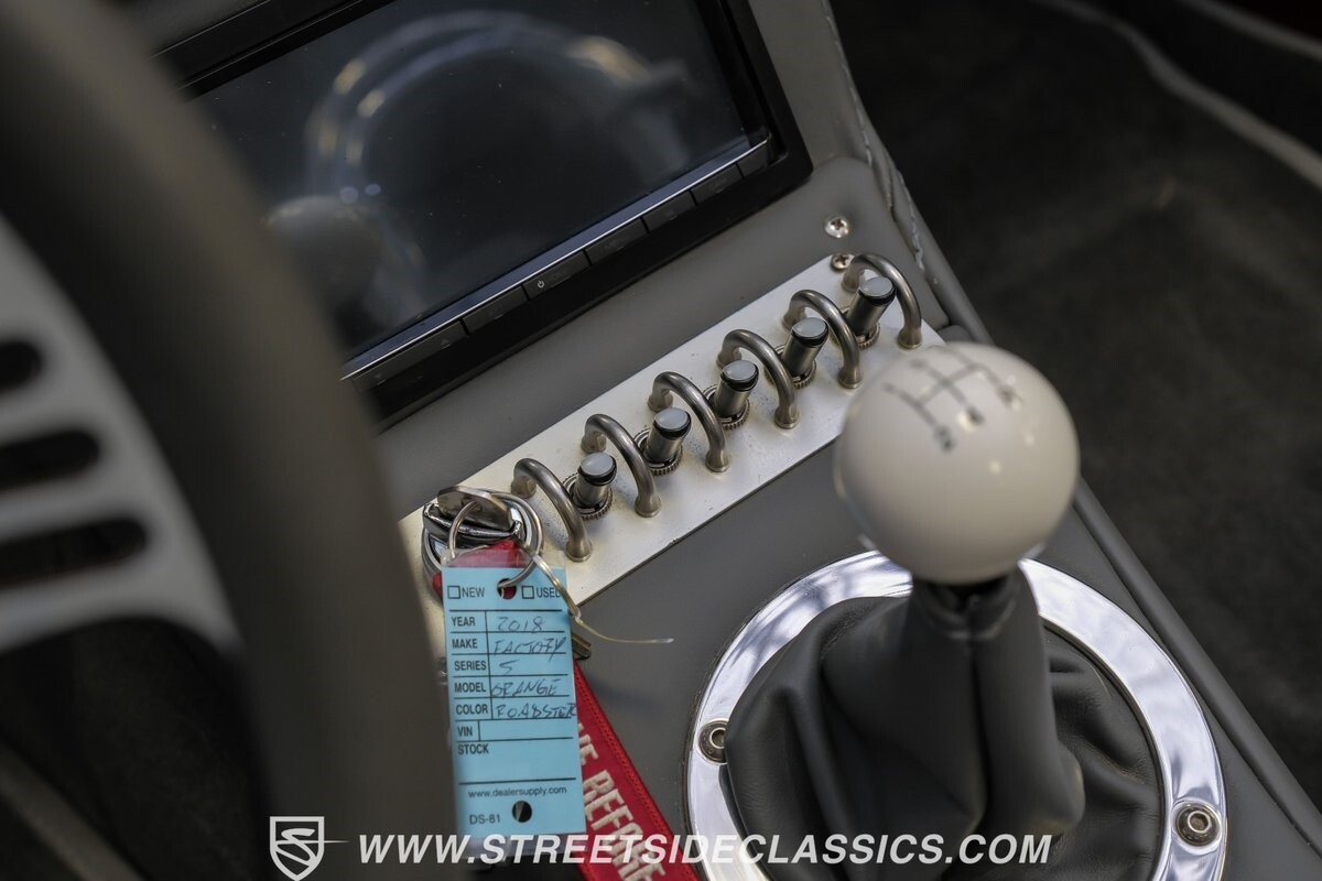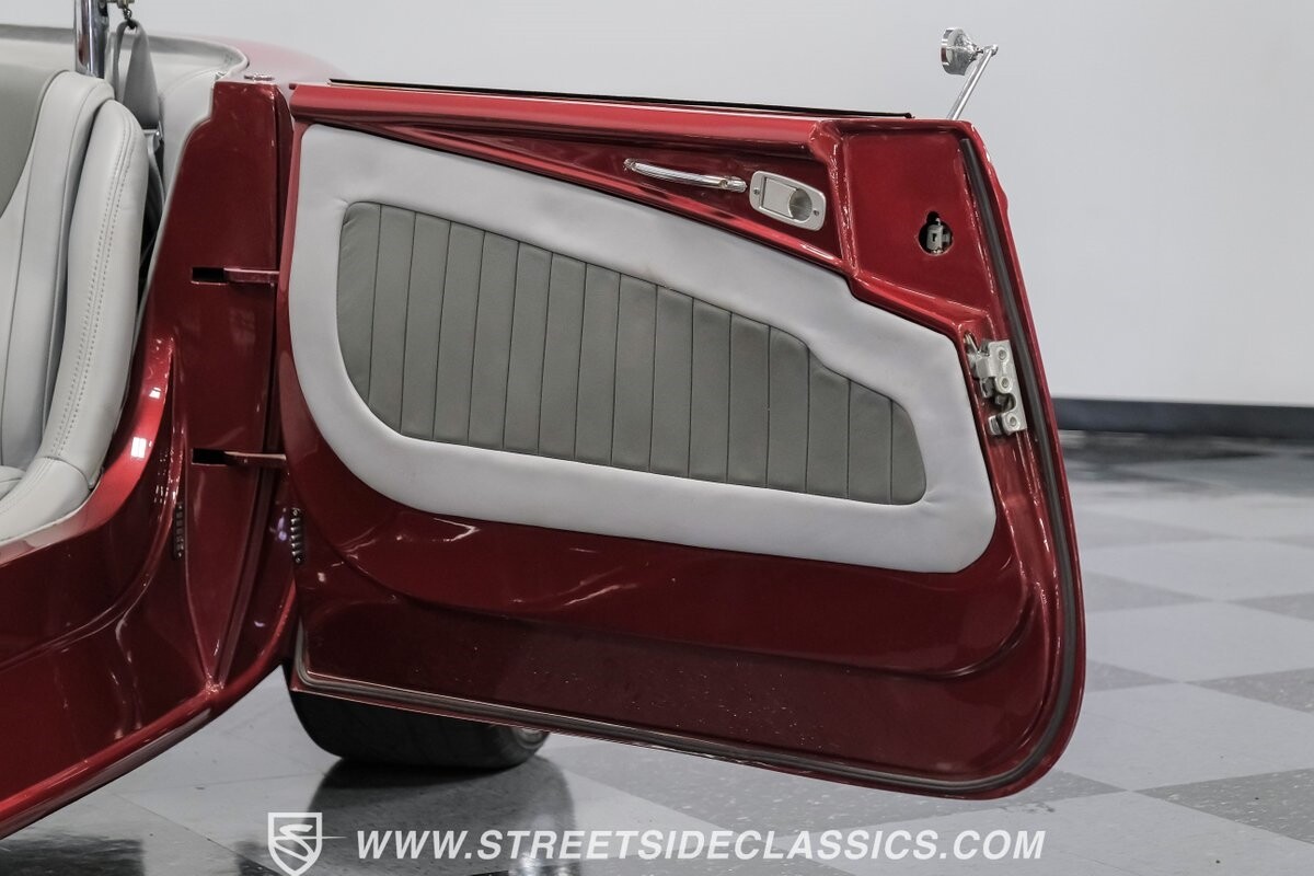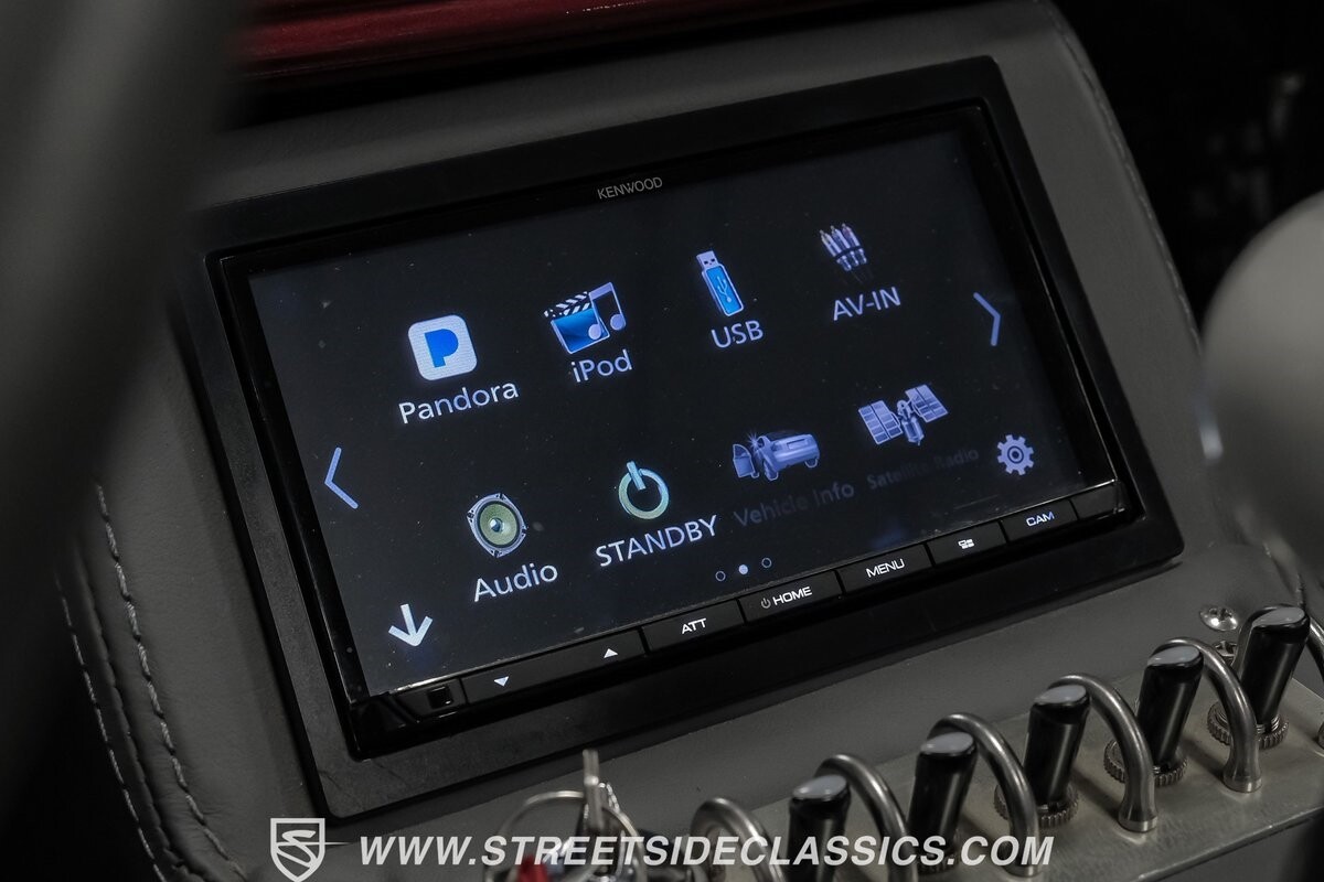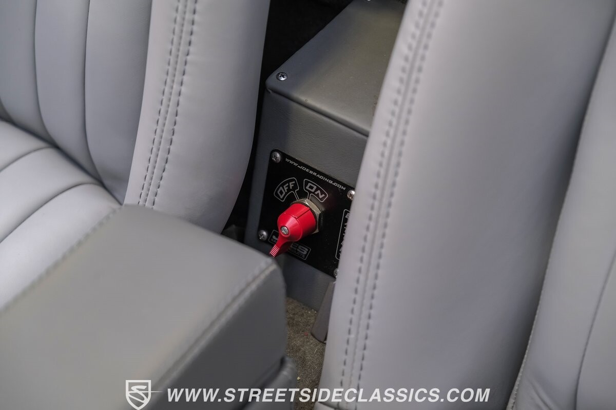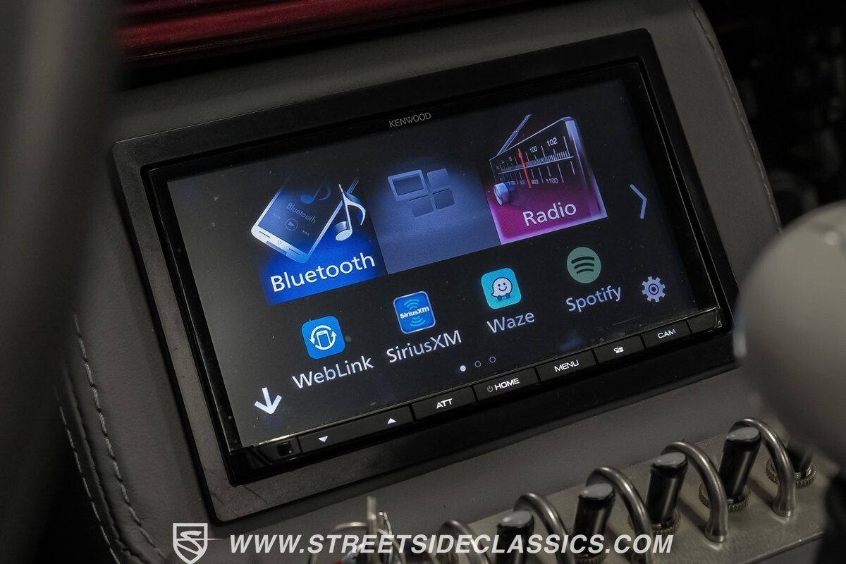 Inside, the gray Mercedes-Benz leather interior whispers luxury and bespoke craftsmanship. The custom-built woodgrain dash, adorned with classic-style gauges from Classic Instruments, and a custom center console effortlessly bridge modernity and classic charm. The tilt column, FFR custom steering wheel, electric power steering, and a backup camera provide effortless control and modern convenience. Bucket seats promise a snug embrace, while a double-din Kenwood stereo ensures the soundtrack to your drives will be as refined as the upholstery surrounding you.