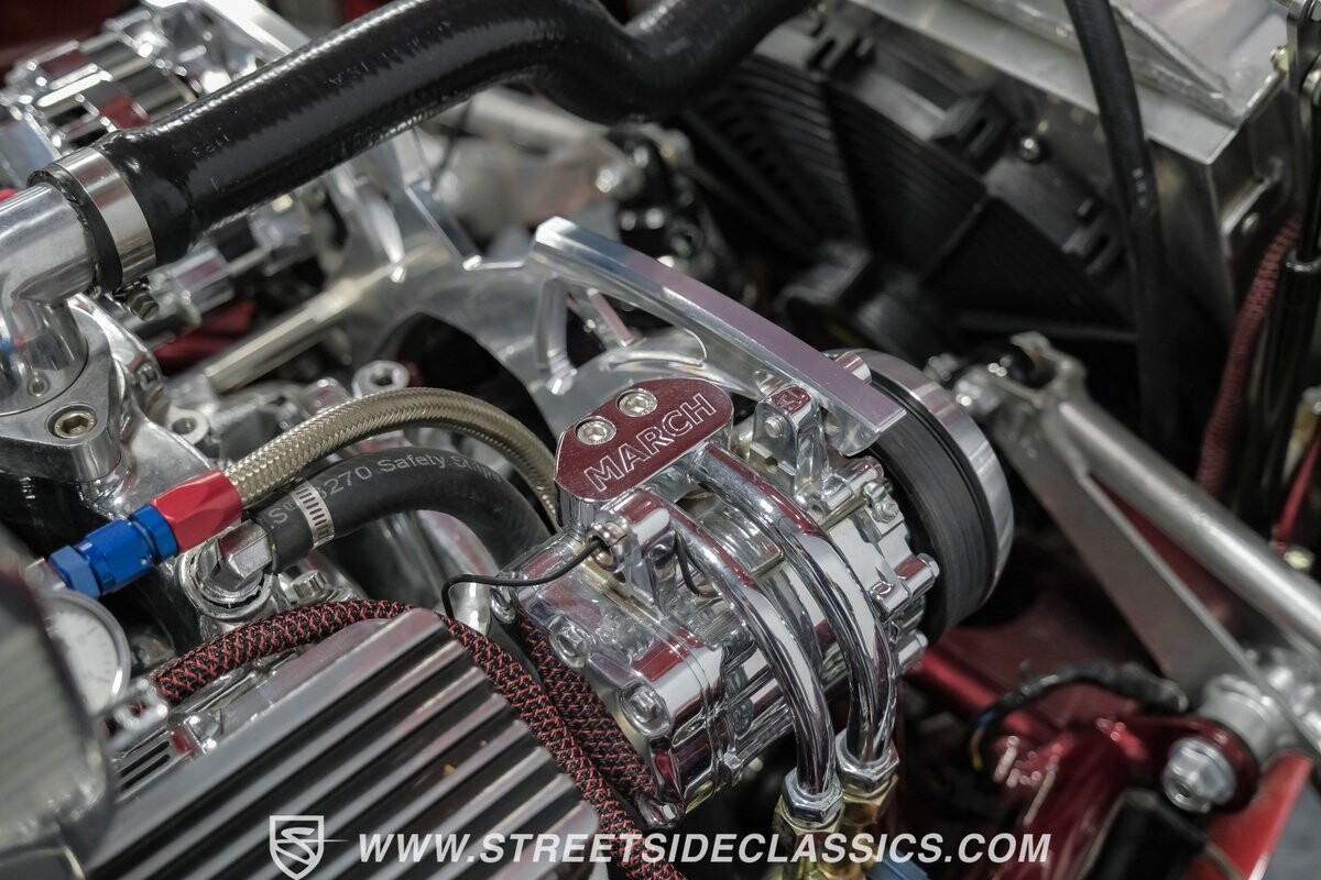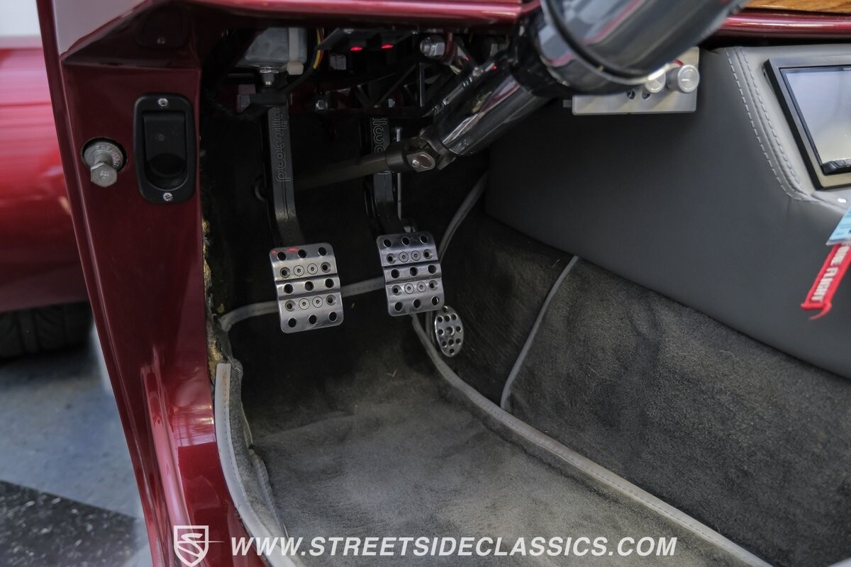 Underneath its sculpted exterior lies a heart that demands attention. A Blueprint 383 Stroker V8 engine, mated to a Tremec 5-speed manual transmission, propels this beauty with unrelenting force. This powerful heart is adorned in chrome and billet accents-from the springs to the air conditioner compressor-marrying performance and aesthetics. An aluminum radiator with an electric fan keeps things cool, while an MSD ignition, Edelbrock intake, and Holley dual-line carburetor ensure potent fuel delivery. Wilwood power disc brakes on all four corners ensure this beast can be tamed with a mere touch, while QA1 shocks and a 4-link rear with coilovers deliver a ride as thrilling as it is smooth.