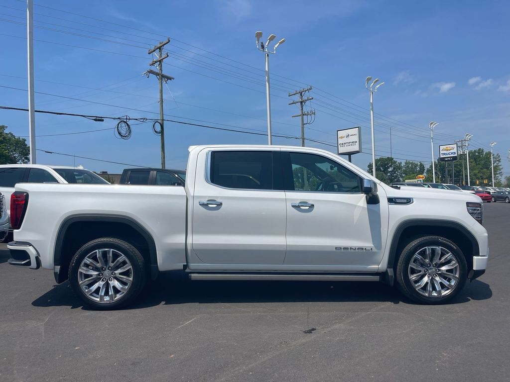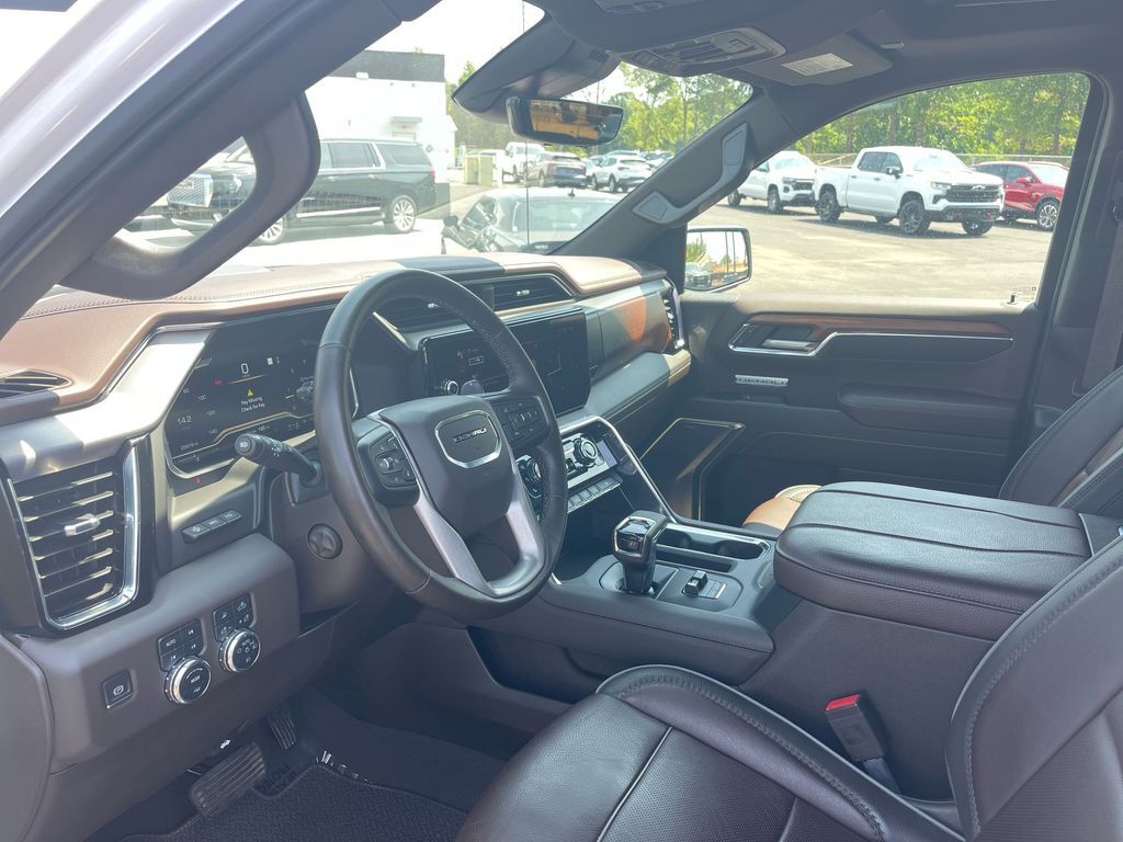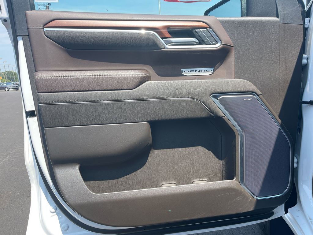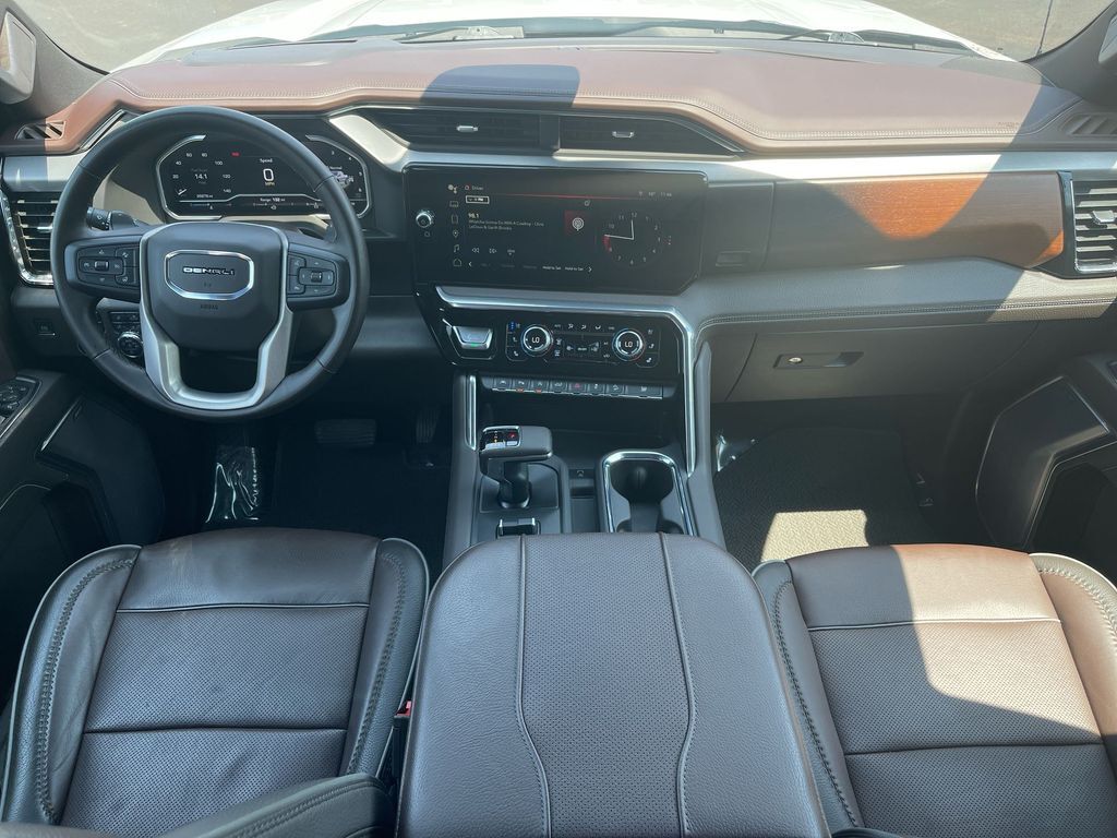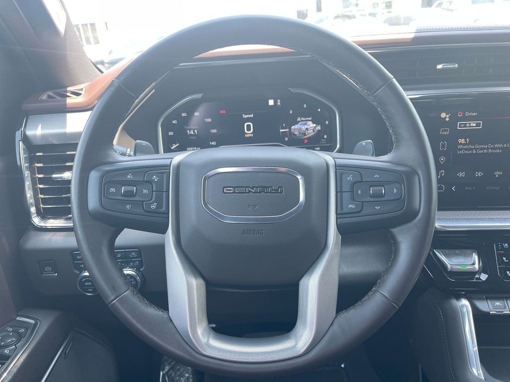 THIS VEHICLE INCLUDES THE FOLLOWING FEATURES AND OPTIONS: Trailering Package (Hitch Guidance), Sierra 1500 Denali Crew Cab 4WD, 10-Way Power Driver Seat Adjuster w/Lumbar, 10-Way Power Passenger Seat Adjuster w/Lumbar, 120-Volt Bed Mounted Power Outlet, 120-Volt Instrument Panel Power Outlet, 170 Amp Alternator, 2 Charge/Data USB Ports Inside Center Console, 2 Type-C Charge-Only Rear USB Ports, 2 USB Ports, 3.23 Rear Axle Ratio, 4-Wheel Disc Brakes, 7 Speakers, ABS brakes, Adaptive suspension, Air Conditioning, Alloy wheels, AM/FM radio, Apple CarPlay/Android Auto, Auto High-beam Headlights, Auto-dimming door mirrors, Auto-dimming Rear-View mirror, Auto-Locking Rear Differential, Automatic Emergency Braking, Automatic temperature control, Auxiliary External Transmission Oil Cooler, Bed View Camera, Brake assist, Buckle to Drive, Bumpers: body-color, Chrome Header w/Signature Denali Chrome Grille, Chrome Recovery Hooks, Chrome Wheel To Wheel Assist Steps, Color-Keyed Carpeting Floor Covering, Compass, Cruise Control, Deep-Tinted Glass, Delay-off headlights, Denali Premium Suspension w/Adaptive Ride Control, Driver door bin, Driver Memory, Driver vanity mirror, Dual front impact airbags, Dual front side impact airbags, Electric Rear-Window Defogger, Electrical Steering Column Lock, Electronic Stability Control, Emergency communication system: OnStar and GMC connected services capable, Floor-Mounted Center Console, Following Distance Indicator, Forge Perforated Leather Seat Trim, Forward Collision Alert, Front anti-roll bar, Front Bucket Seats, Front Center Armrest, Front dual zone A/C, Front fog lights, Front Pedestrian Braking, Front Rainsensing Wipers, Front reading lights, Front wheel independent suspension, Fully automatic headlights, Garage door transmitter, Genuine wood console insert, Genuine wood dashboard insert, Genuine wood door panel insert, GMC Connected Access Capable, HD Surround Vision, Heated 2nd Row Outboard Seats, Heated door mirrors, Heated Driver & Front Outboard Passenger Seating, Heated front seats, Heated rear seats, Heated steering wheel, Heavy-Duty Air Filter, Hill Descent Control, Hitch Guidance w/Hitch View, Illuminated entry, In-Vehicle Trailering App, Integrated Trailer Brake Controller, IntelliBeam Automatic High Beam On/Off, Keyless Open & Start, Lane Keep Assist w/Lane Departure Warning, LED Cargo Area Lighting, Low tire pressure warning, Memory seat, Navigation System, Occupant sensing airbag, OnStar & GMC Connected Services Capable, Outside temperature display, Overhead airbag, Overhead console, Panic alarm, Passenger door bin, Passenger vanity mirror, Perimeter Lighting, Power Door Locks, Power door mirrors, Power driver seat, Power Front Passenger Windows w/Express Up/Down, Power Front Windows w/Driver Express Up/Down, Power passenger seat, Power Rake & Telescoping Steering Column, Power Rear Windows w/Express Down, Power Sliding Rear Window w/Rear Defogger, Power steering, Power windows, Premium audio system: GMC Infotainment System, Premium Bose 7-Speaker Sound System, Push Button Start, Radio data system, Radio: Premium GMC Infotainment Audio System, Rain sensing wipers, Rear Cross Traffic Braking, Rear Pedestrian Detection, Rear reading lights, Rear seat center armrest, Rear step bumper, Rear Wheelhouse Liners, Rear window defroster, Remote keyless entry, Remote Vehicle Starter System, Safety Alert Seat, Security system, SiriusXM w/360L, Speed-sensing steering, Split folding rear seat, Spray-On Pickup Bed Liner w/Denali Logo, Steering Wheel Audio Controls, Steering wheel mounted audio controls, Tachometer, Telescoping steering wheel, Theft Deterrent System (Unauthorized Entry), Tilt steering wheel, Traction control, Trailer Camera Provisions, Trailer Side Blind Zone Alert, Trip computer, Ultrasonic Front & Rear Park Assist, Univers