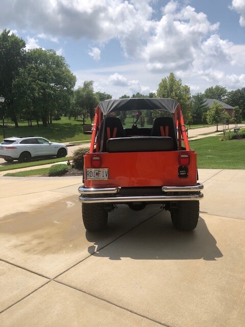 Jeep CJ5 1978. 401 V8. Frame up restoration. Frame coated, fiber glass. Tilt forward hood. Rebuilt engine. 4000 miles. Painted corvette orange. This is a show quality Jeep. Vehicle runs and drives perfectly/ Disc brakes on all 4 wheels, 6 inch lift with Micky Thompson 35x12.5x15 tires and 15x10 wheels. New power steering and tilt wheel. New custom front and rear seats with 4 point seat belts. Serious inquiries only, I know all scams.